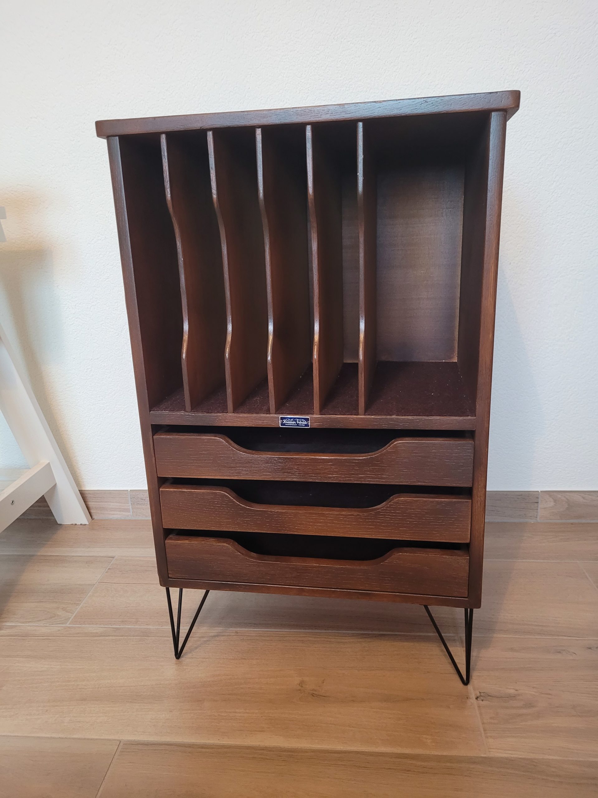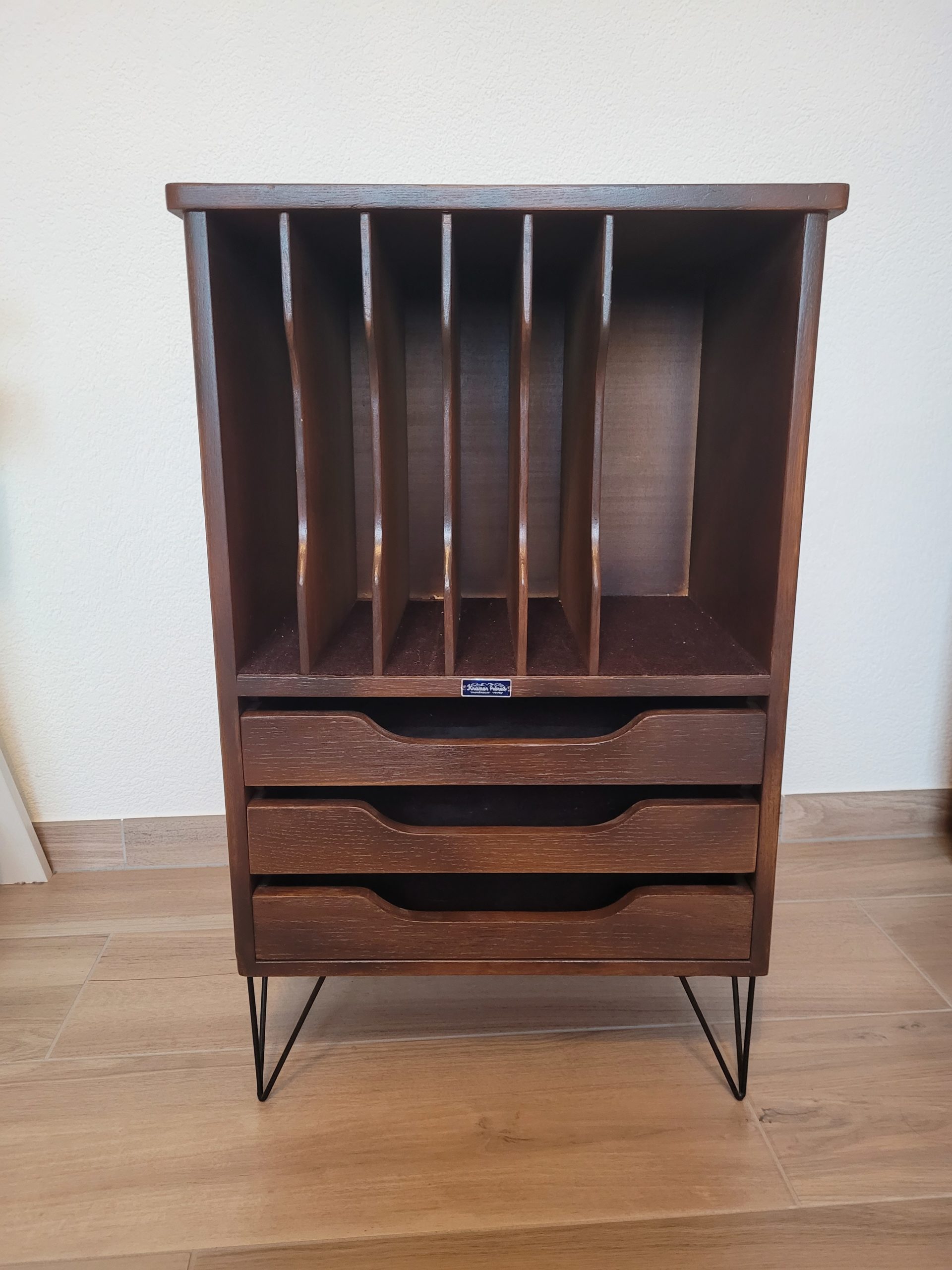 Produit venduPetit meuble idéal pour les disques estampillé Kramer frères, papeterie installée a Montreux début 1900 jusqu’en 2014.