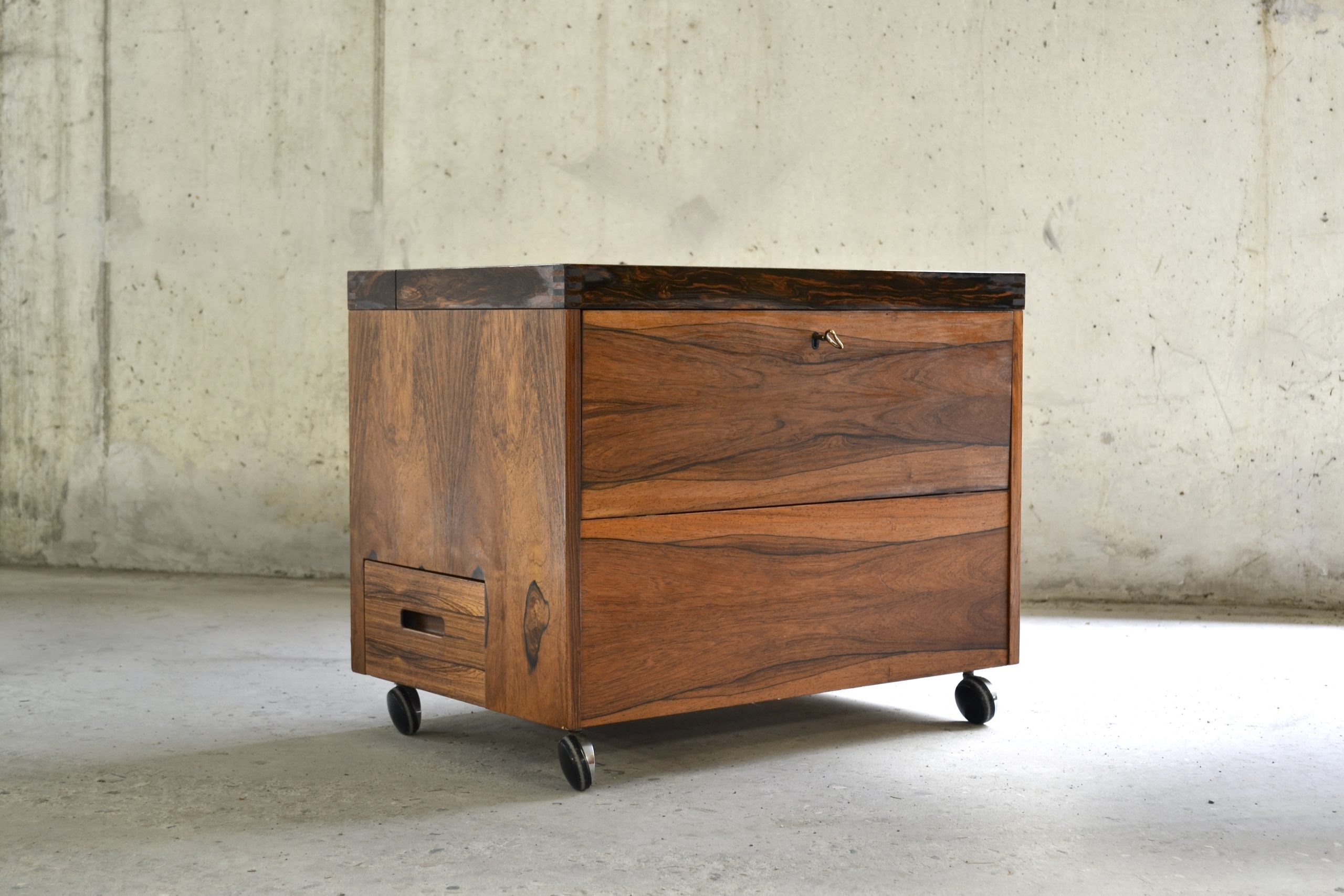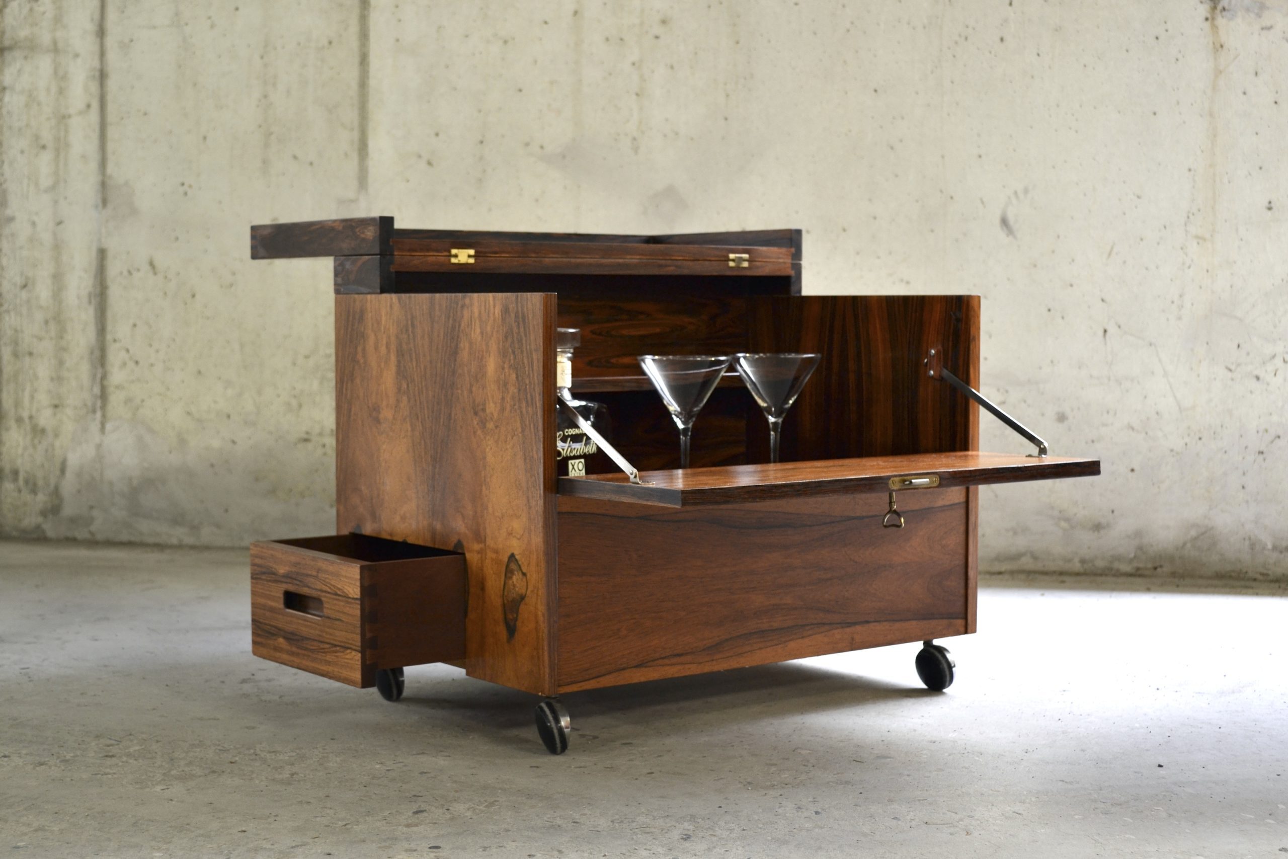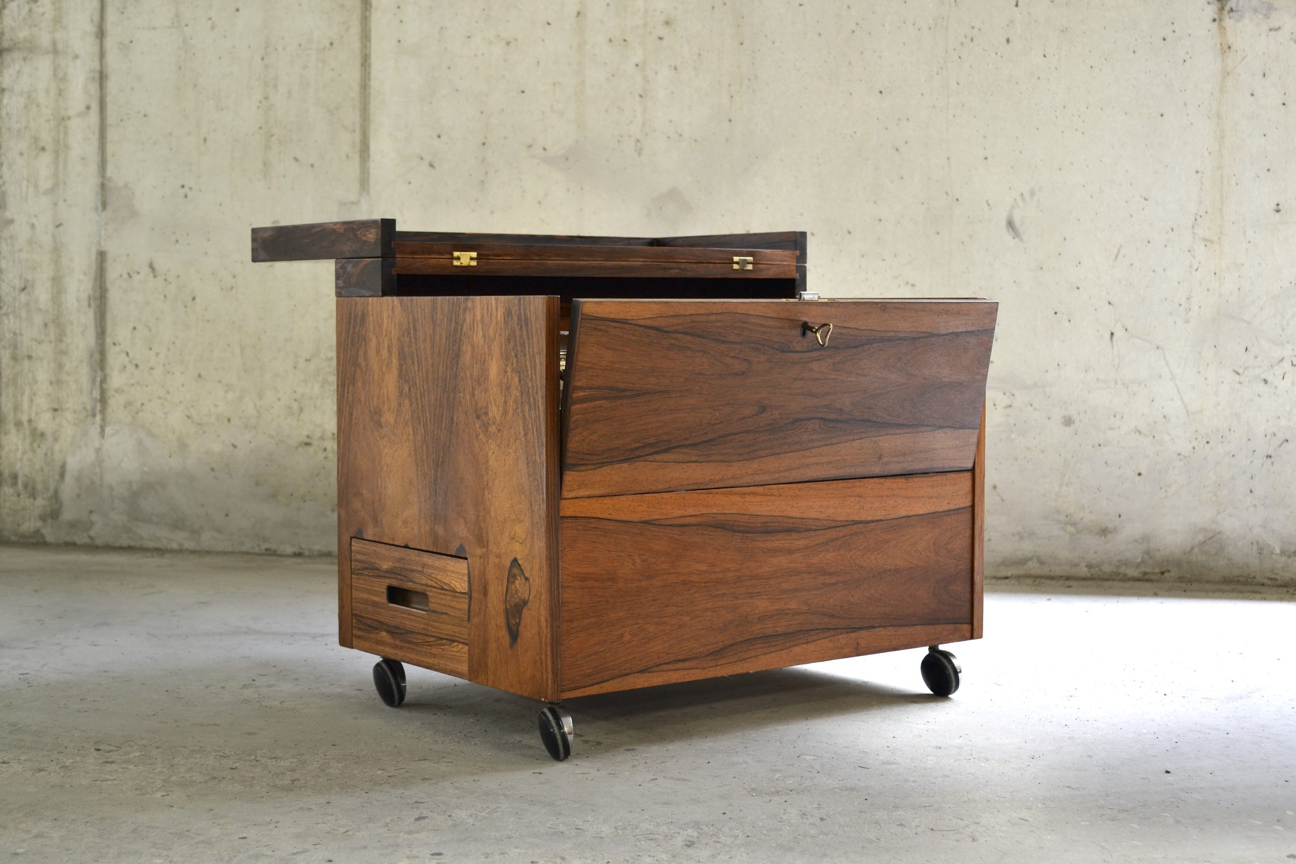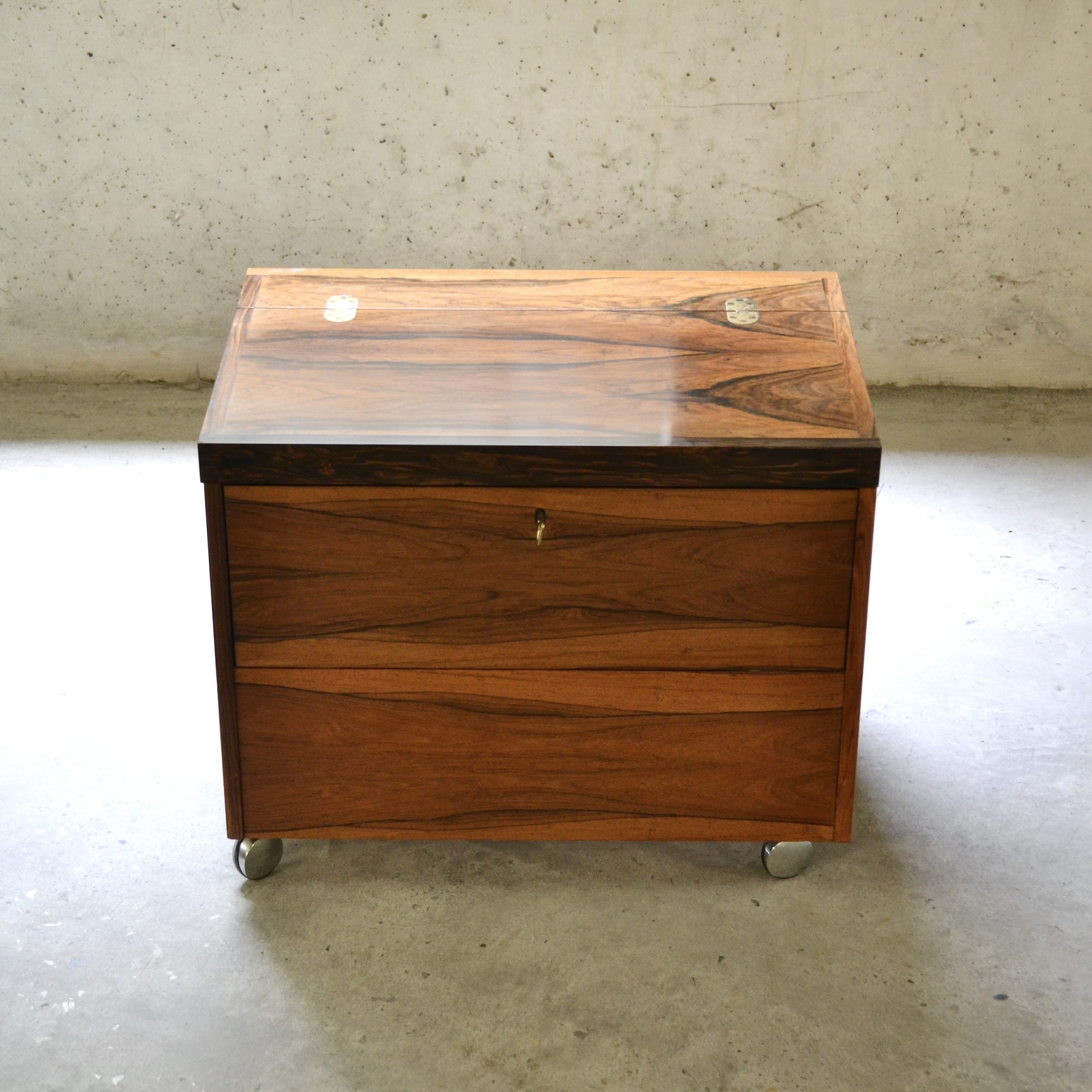 Produit venduDessiné entre la fin des années 60 et le début des années 70 par le designer Torbjørn Afdal, ce petit écrin en palissandre dévoile toute sa splendeur lorsque, une fois sa petite clef tournée, il devient possible de le transformer en un enivrant mini-bar ingénieusement agencé.