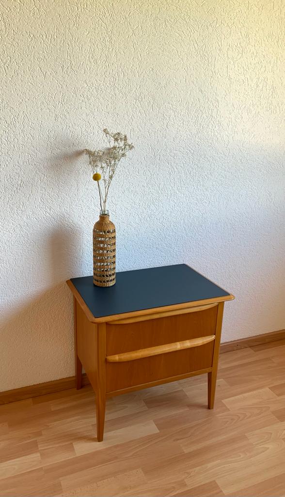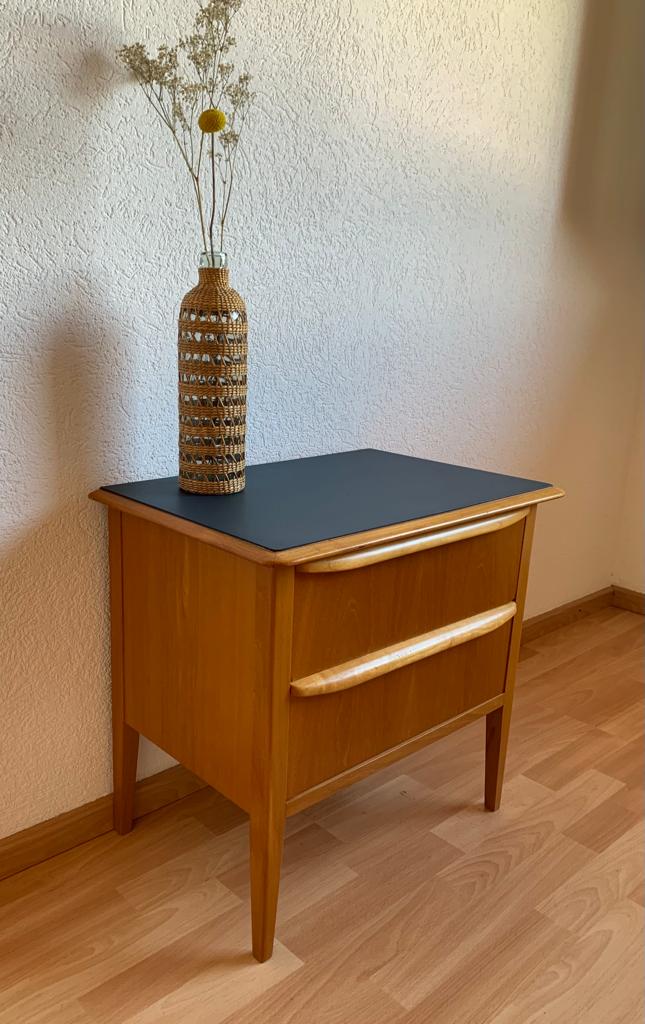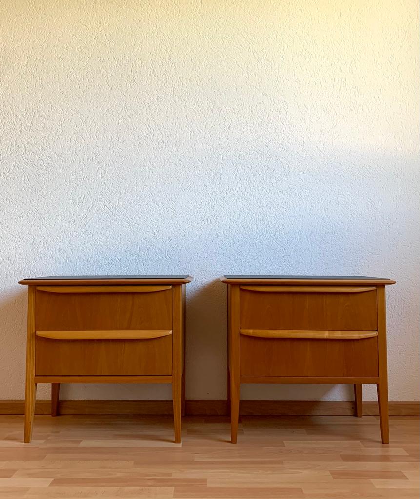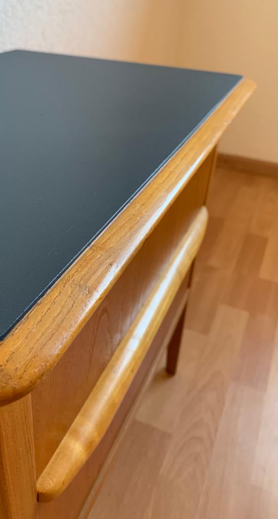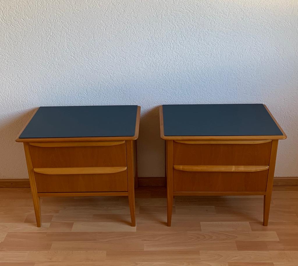 Une des tables comprend deux tiroirs et l’autre un rangement avec porte abattante.