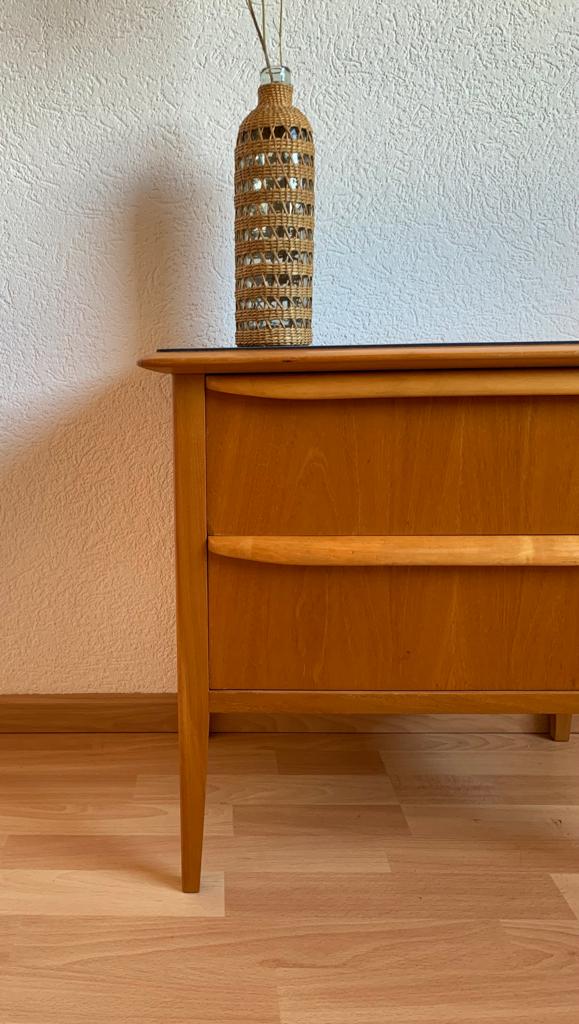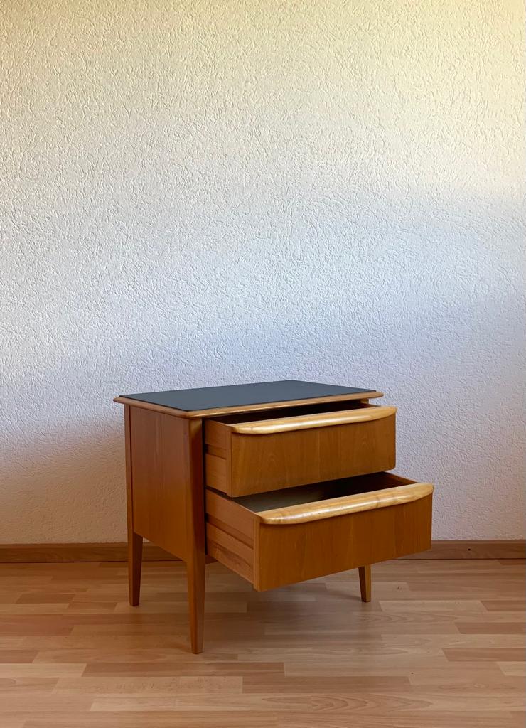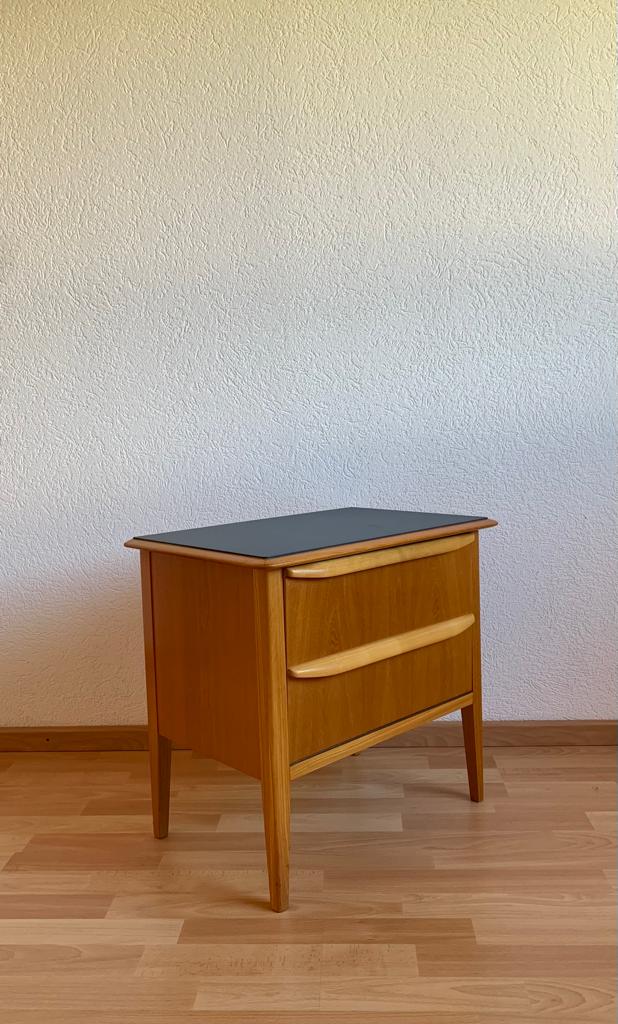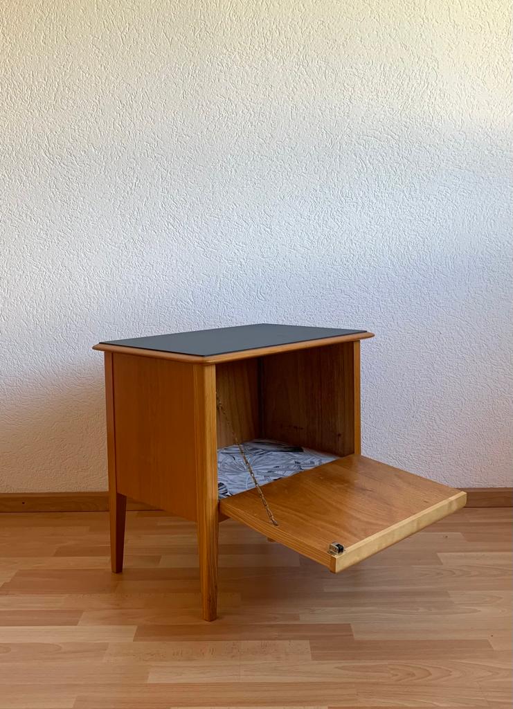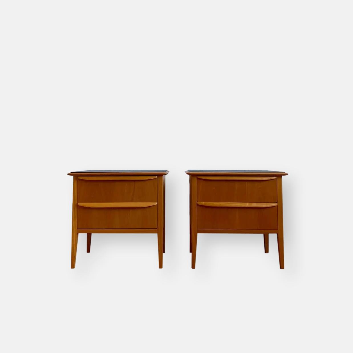 Une des tables comprend deux tiroirs et l’autre un rangement avec porte abattante.