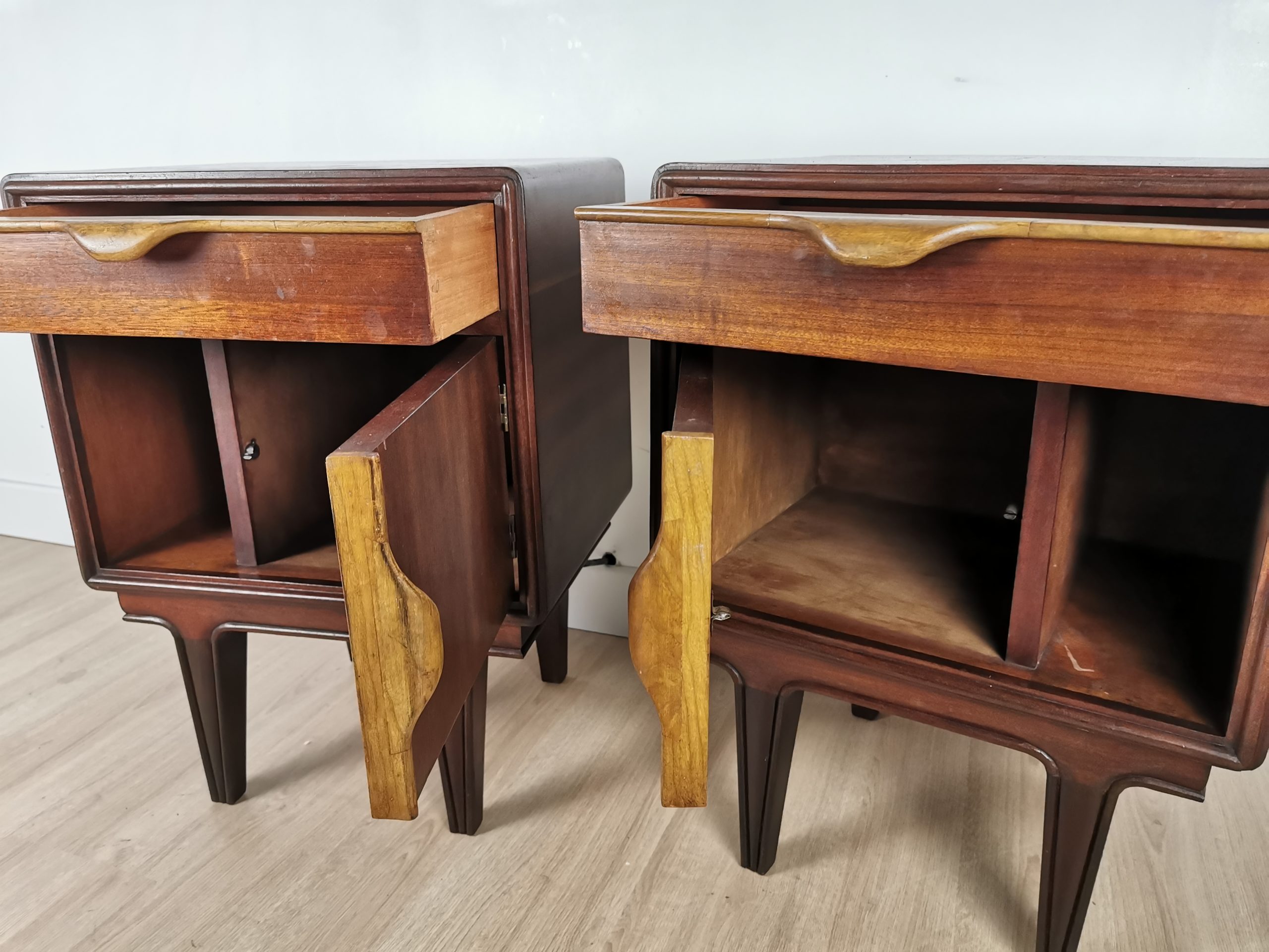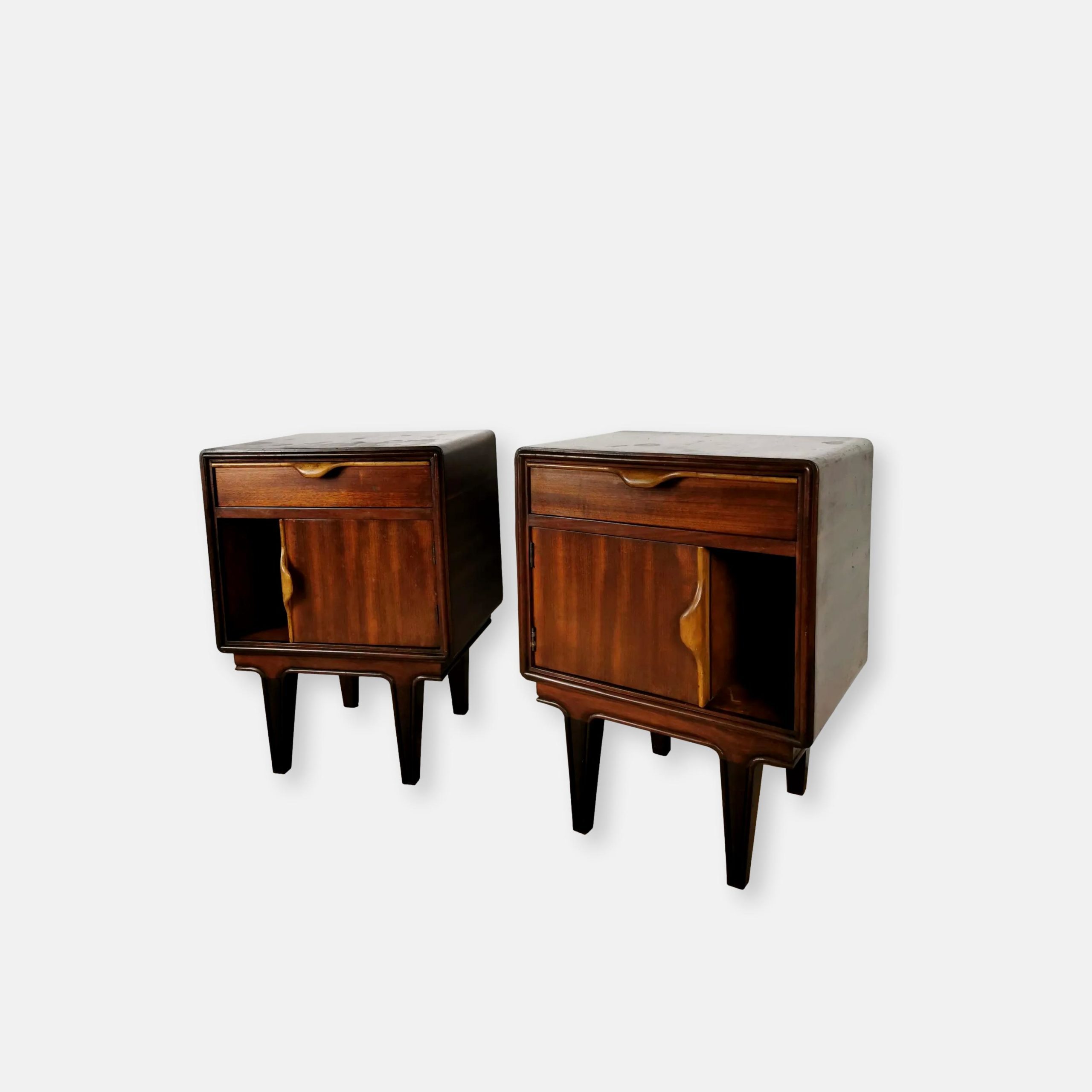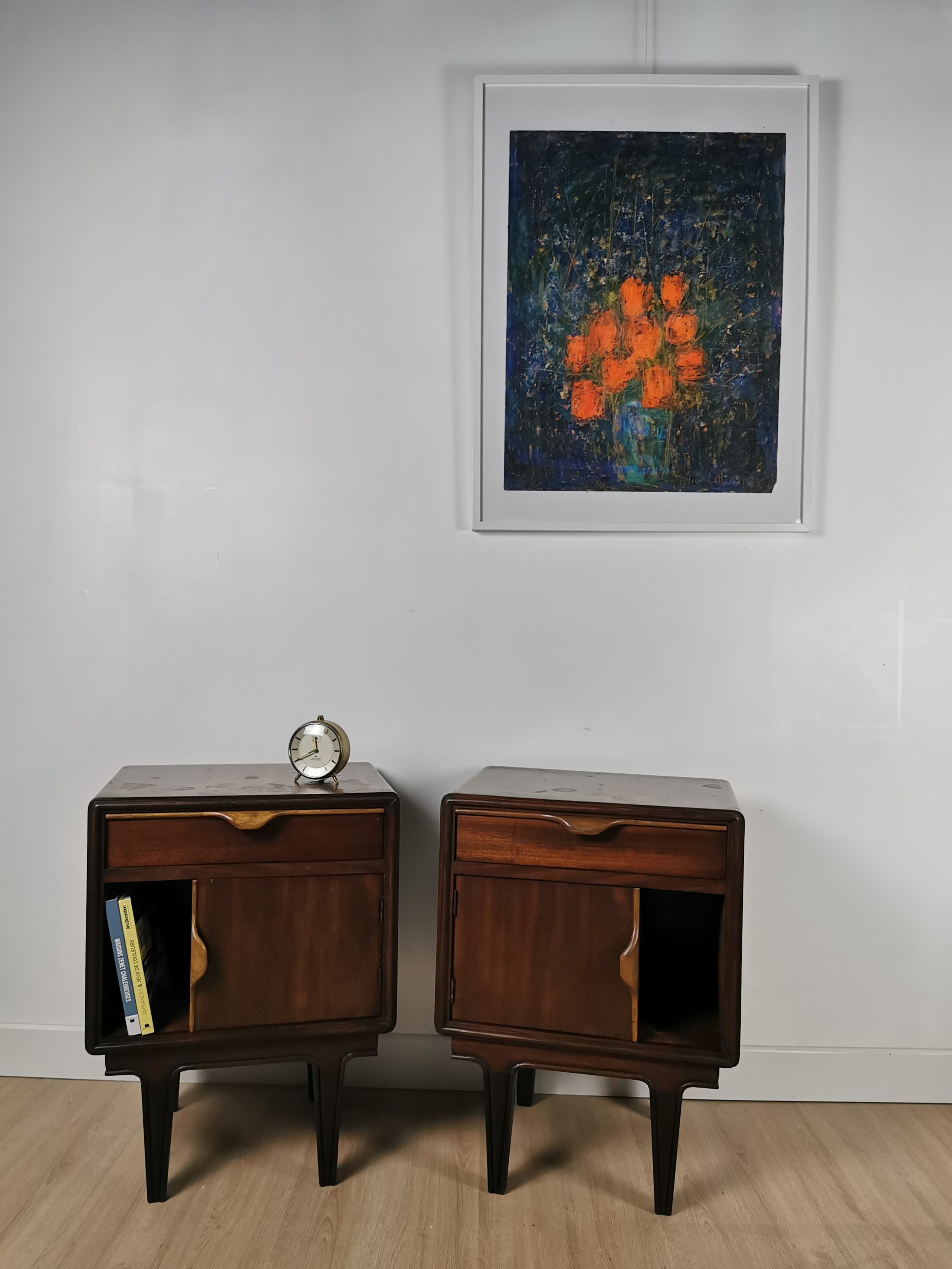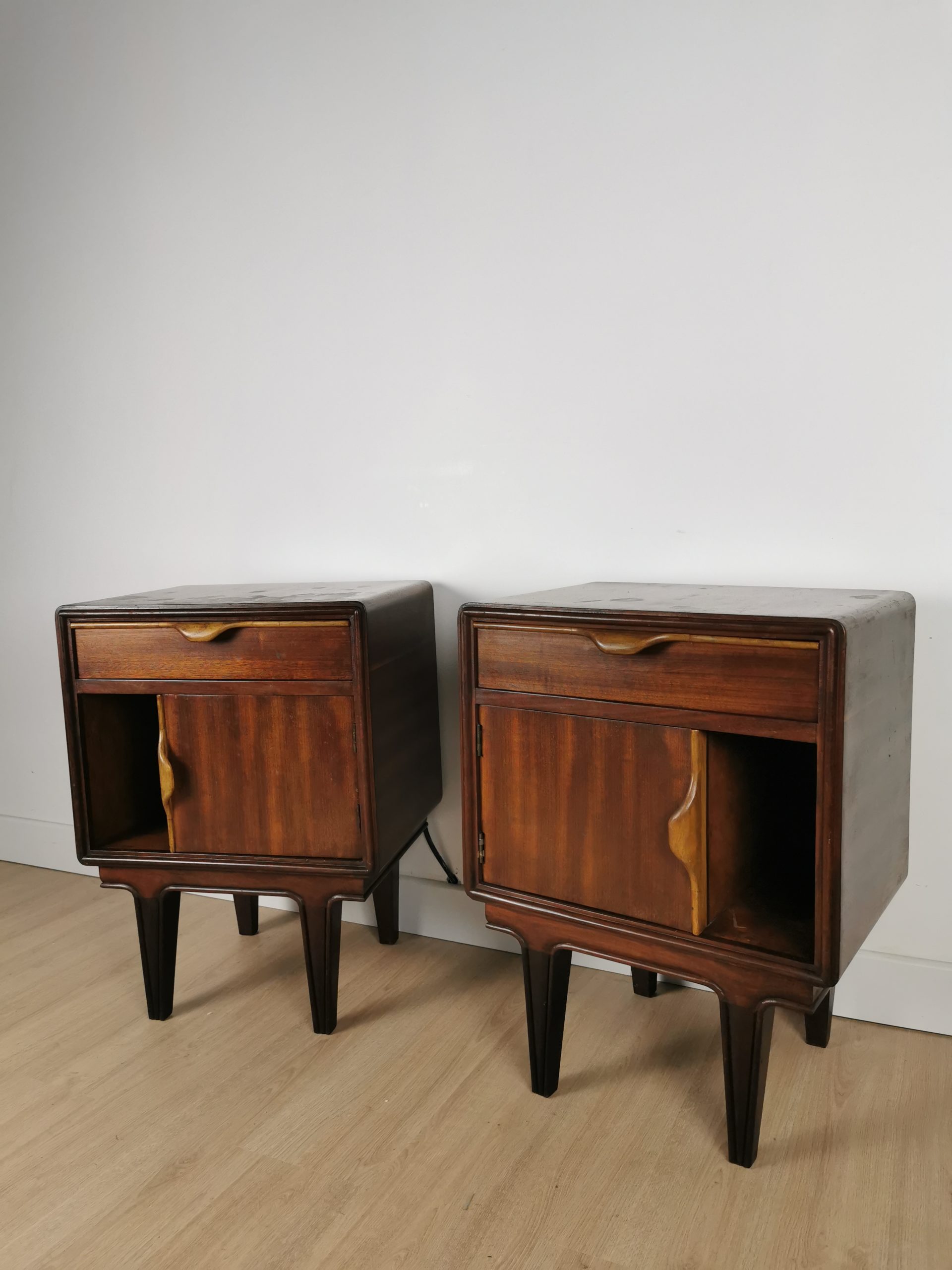 Produit venduPaire de tables de chevet des années 60. Quelques traces du temps mais en bon état général.