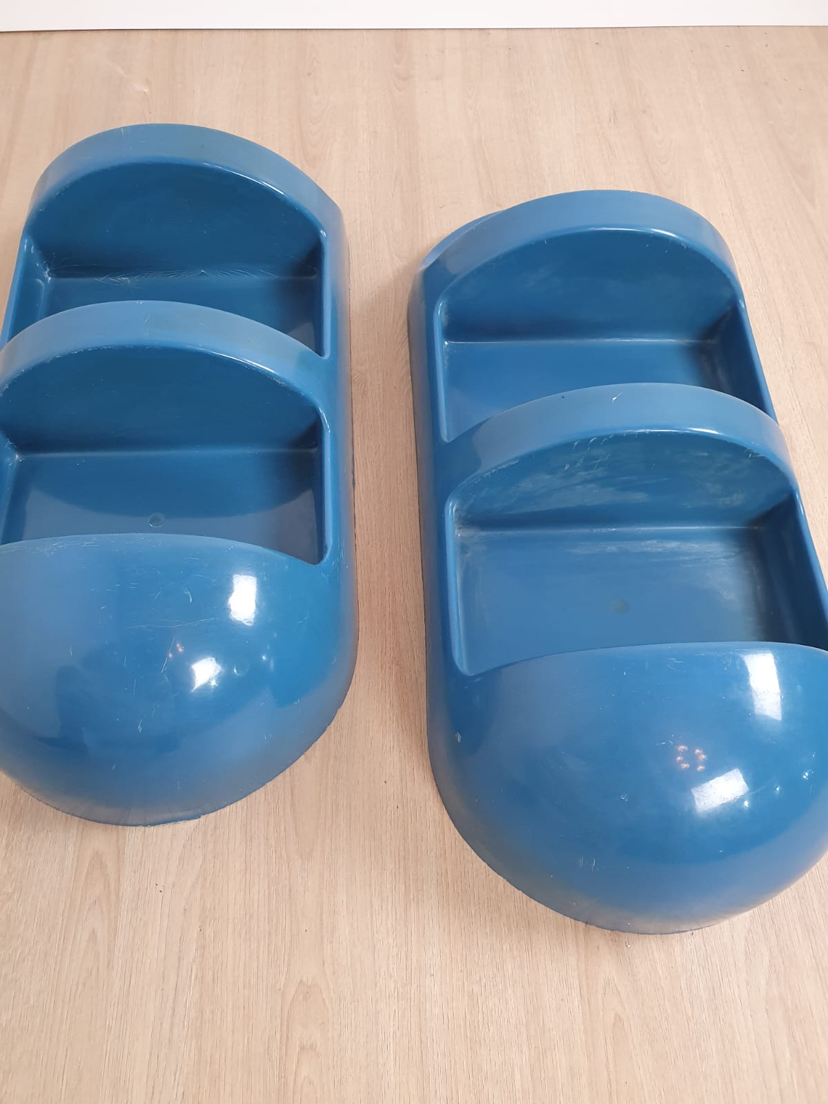Produit venduPaire d’étagères bleues en fibre de verre des années 70, parfait pour une déco Space Age.