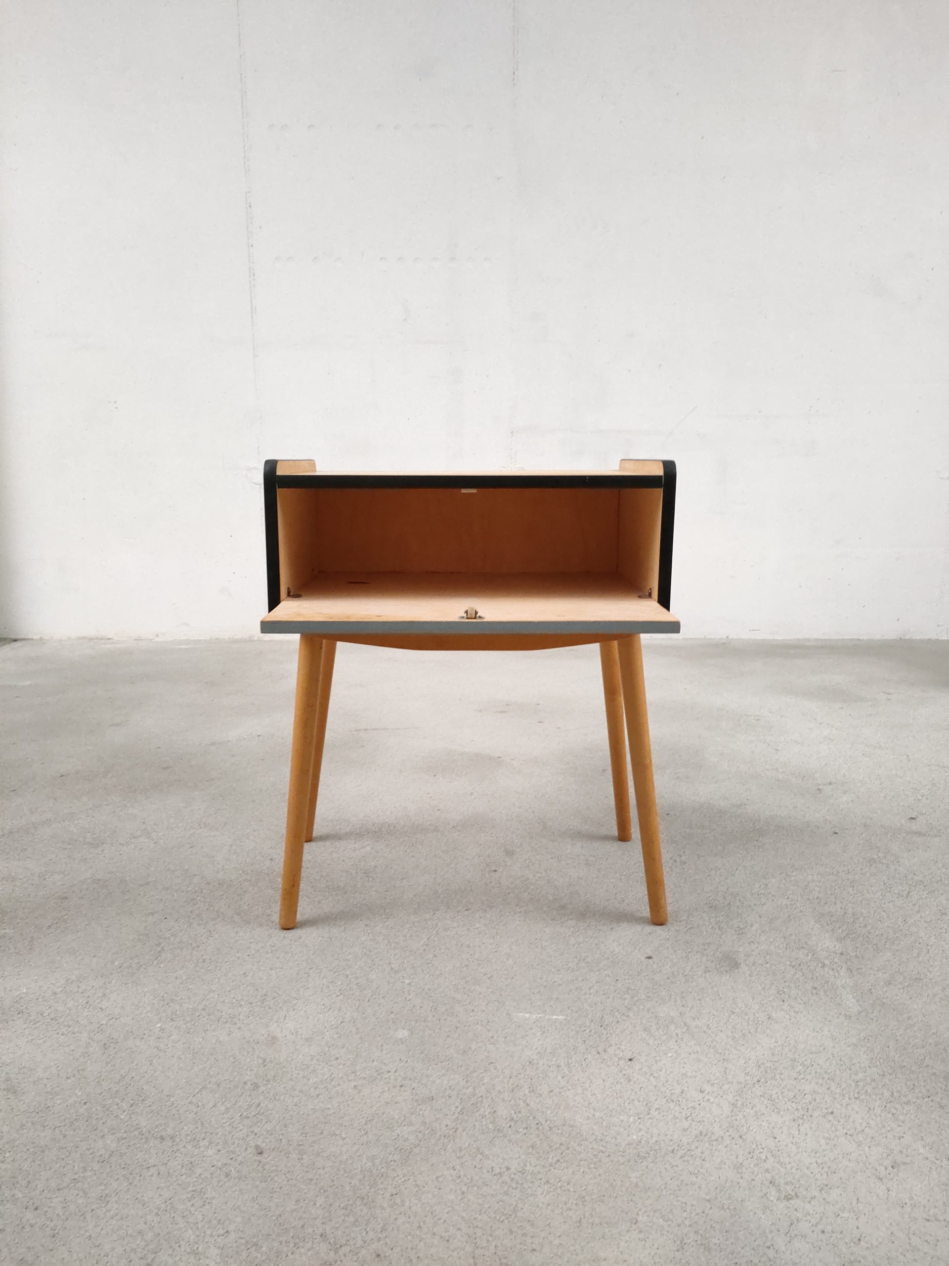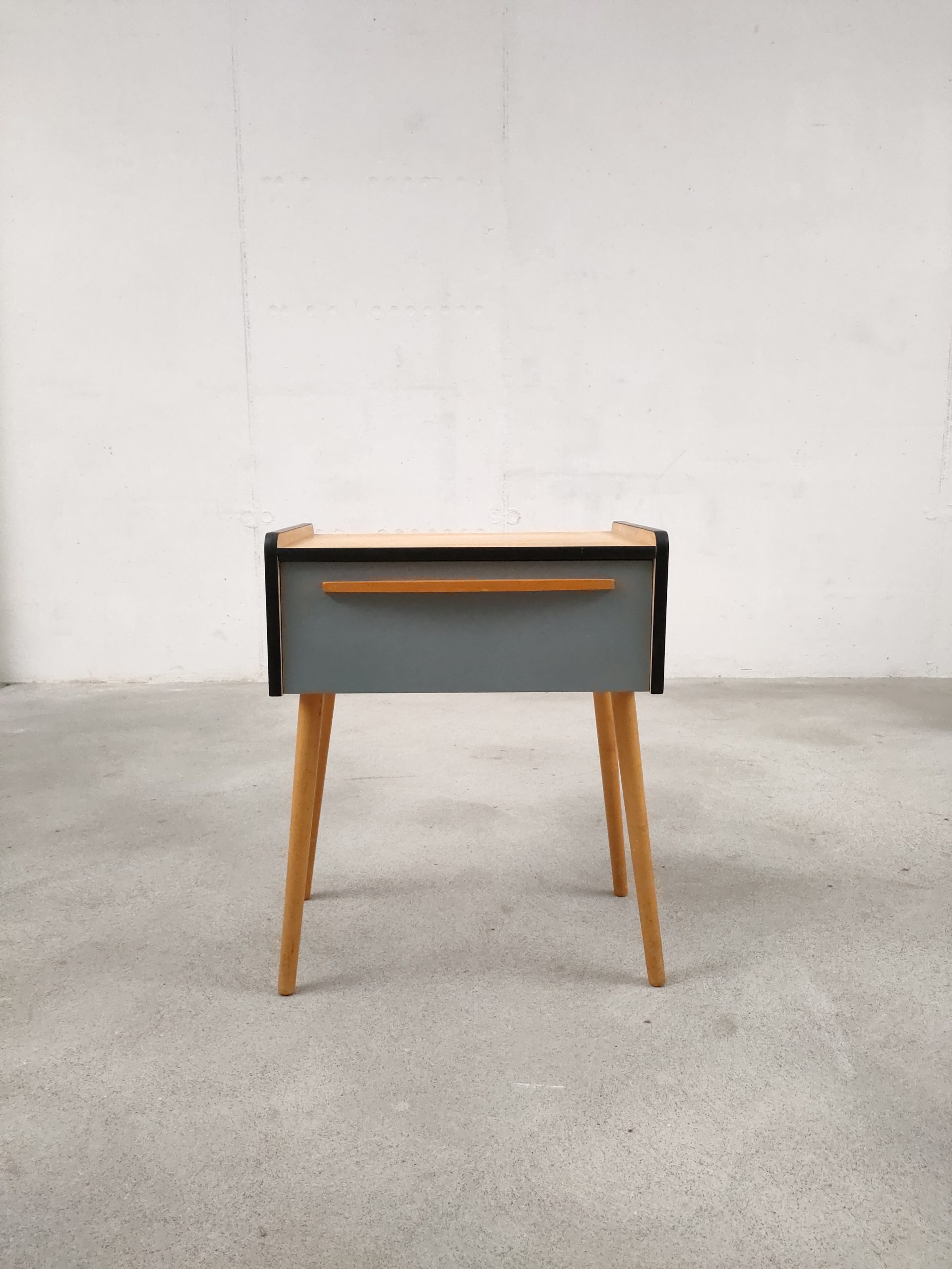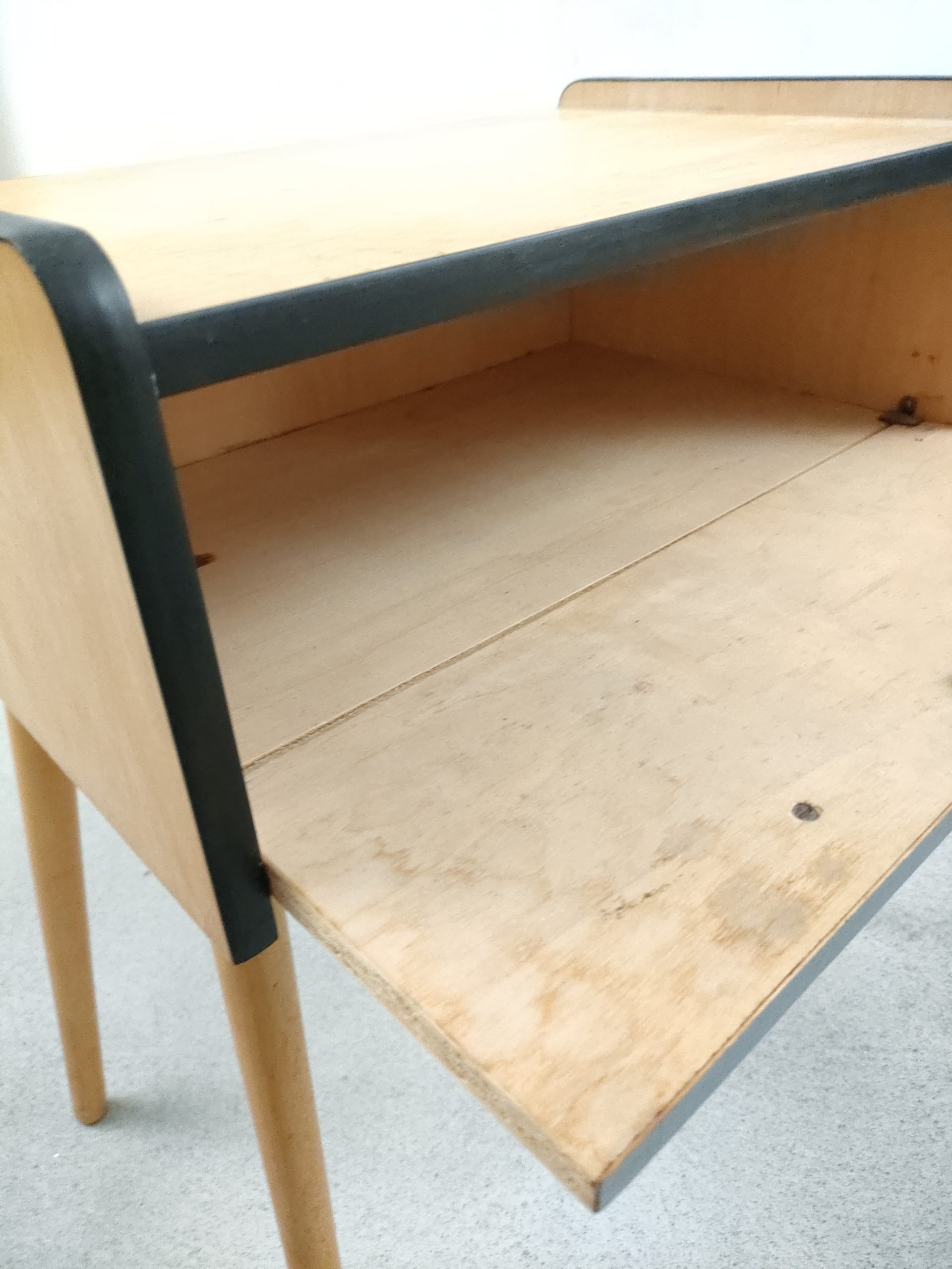Produit venduMignon petit meuble bicolore en bois avec porte bleu clair. Peut être utilisé comme table de nuit, bout de canapé, etc.