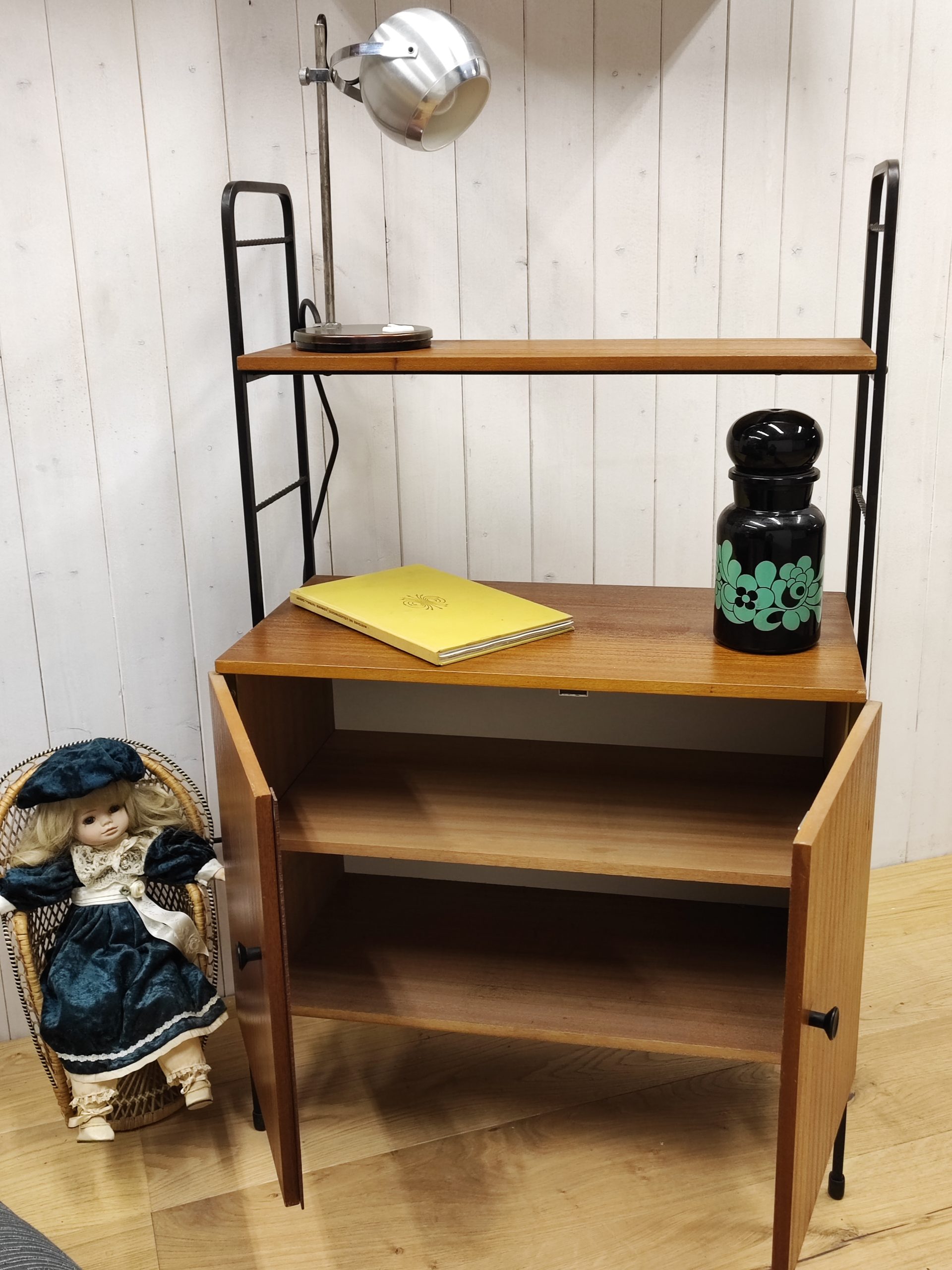 Produit venduTrès joli petit meuble scandinave des années 60. Dans le goût des étagères string et autres. Il est en parfait état.