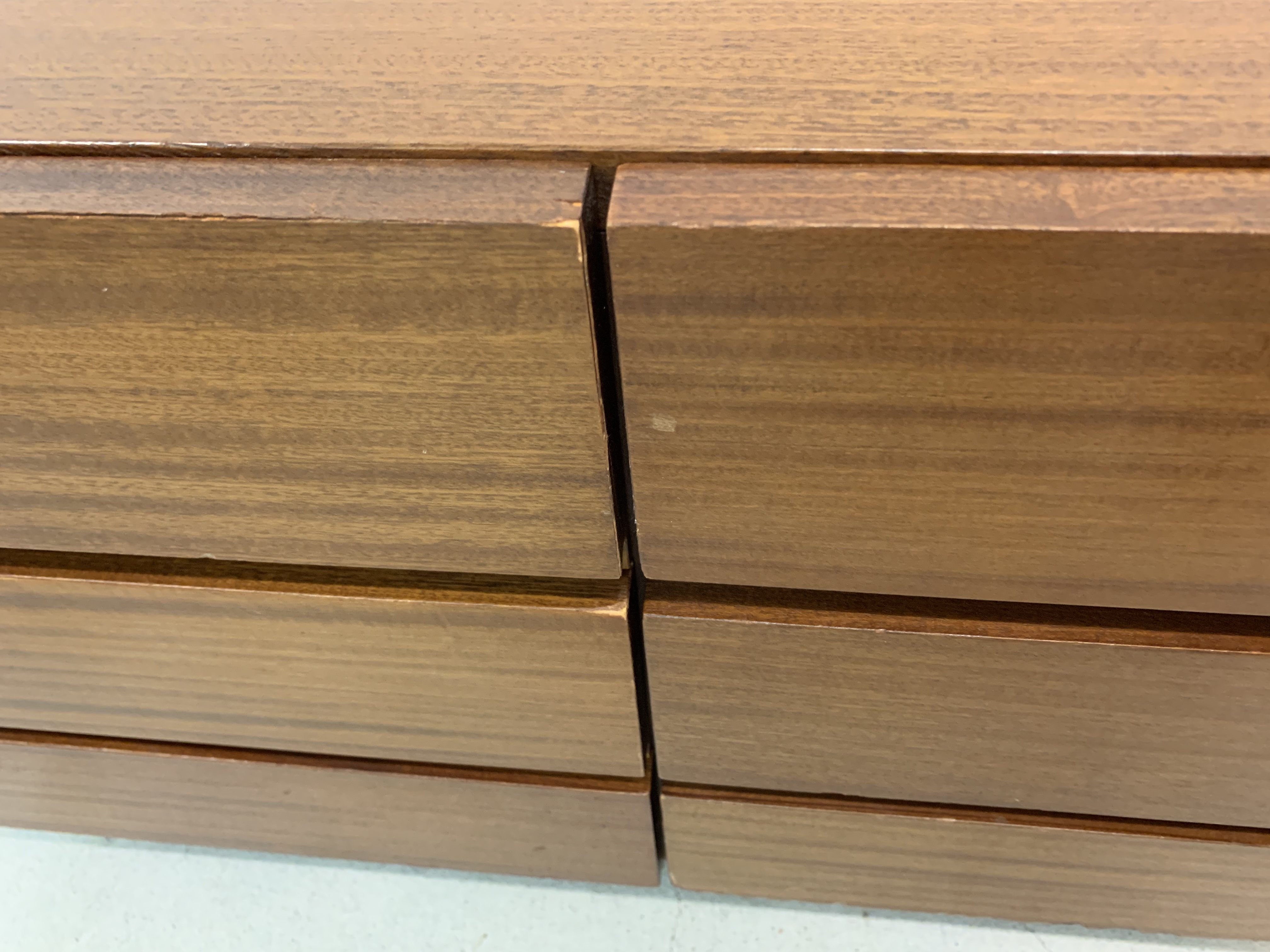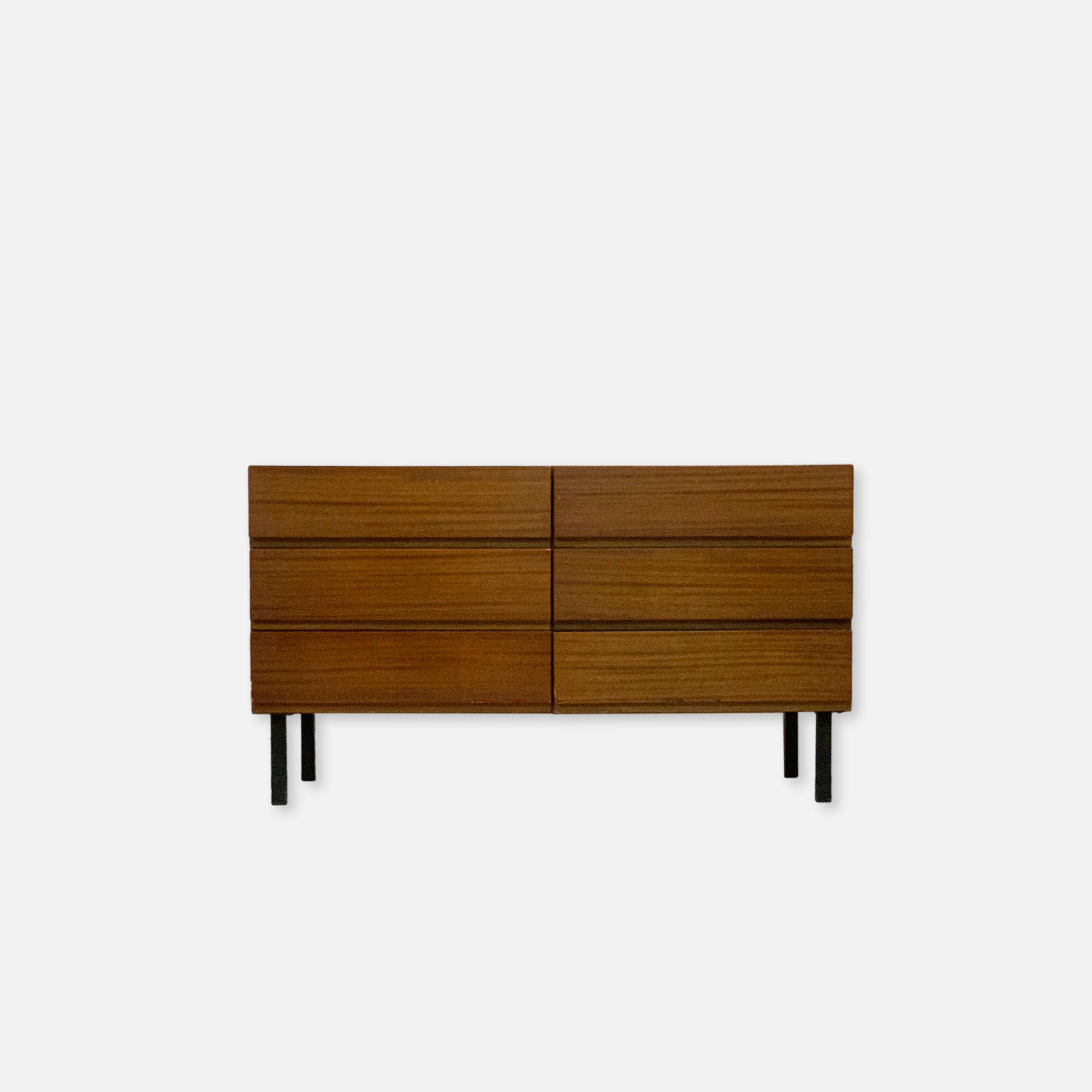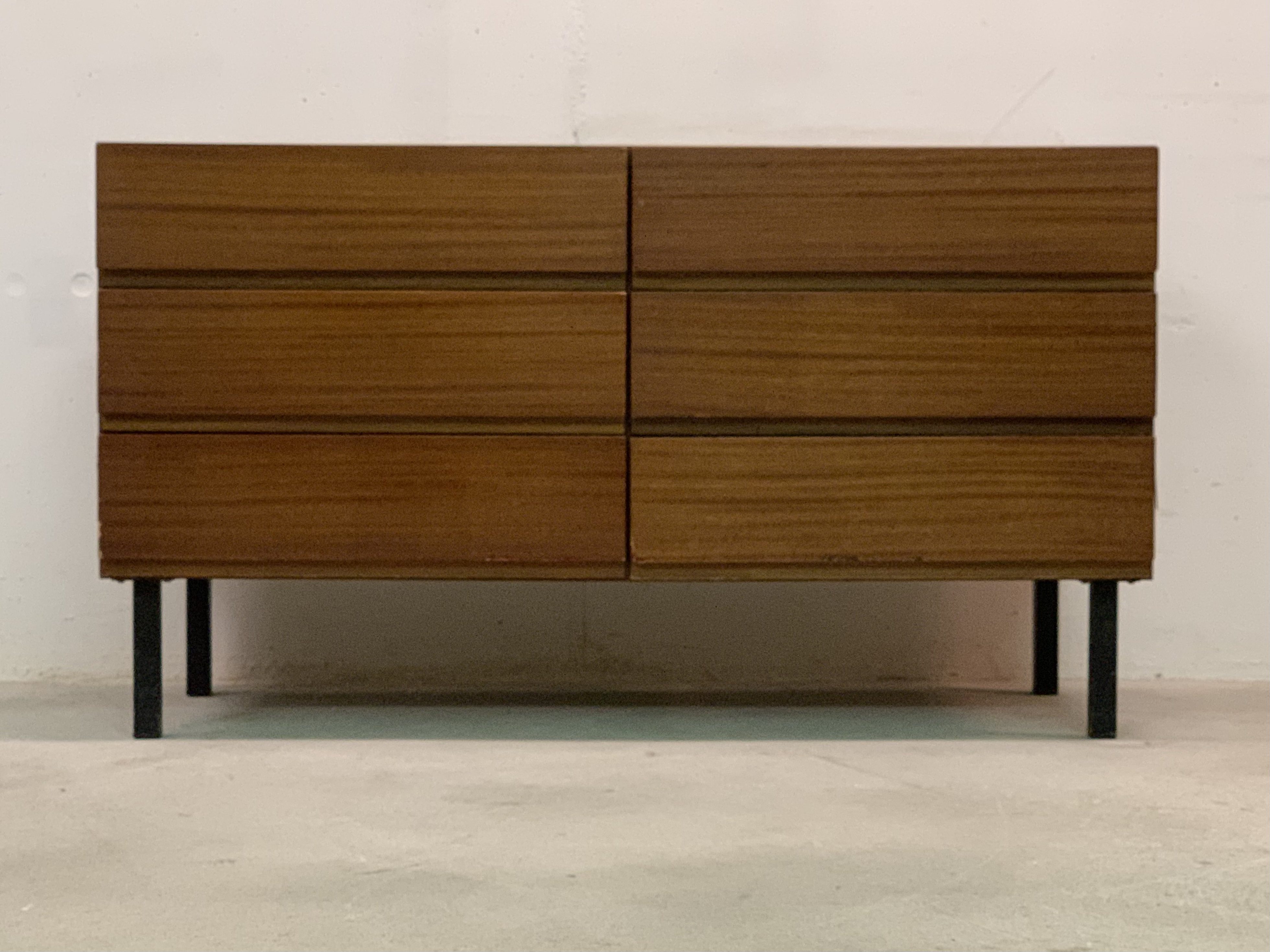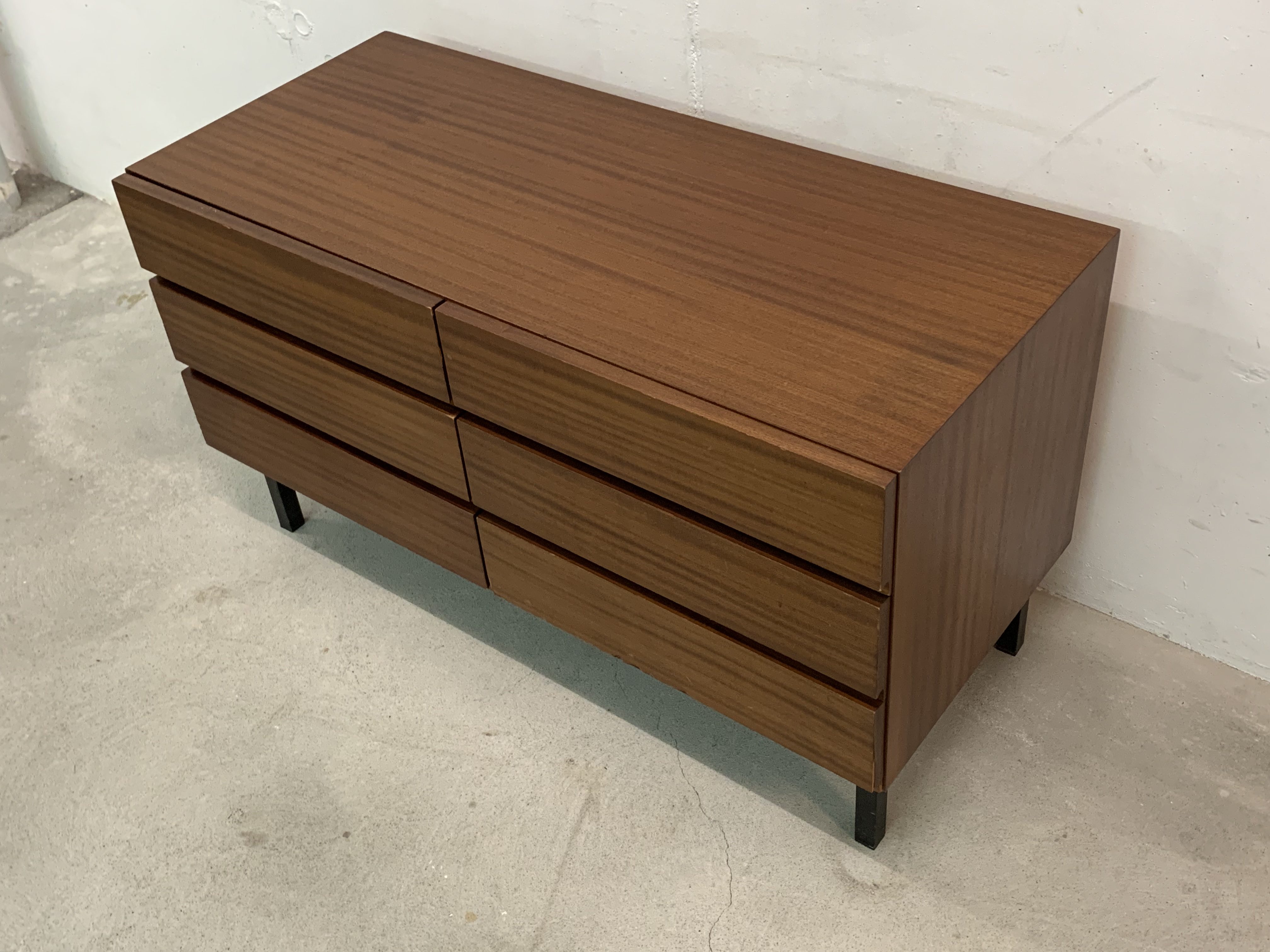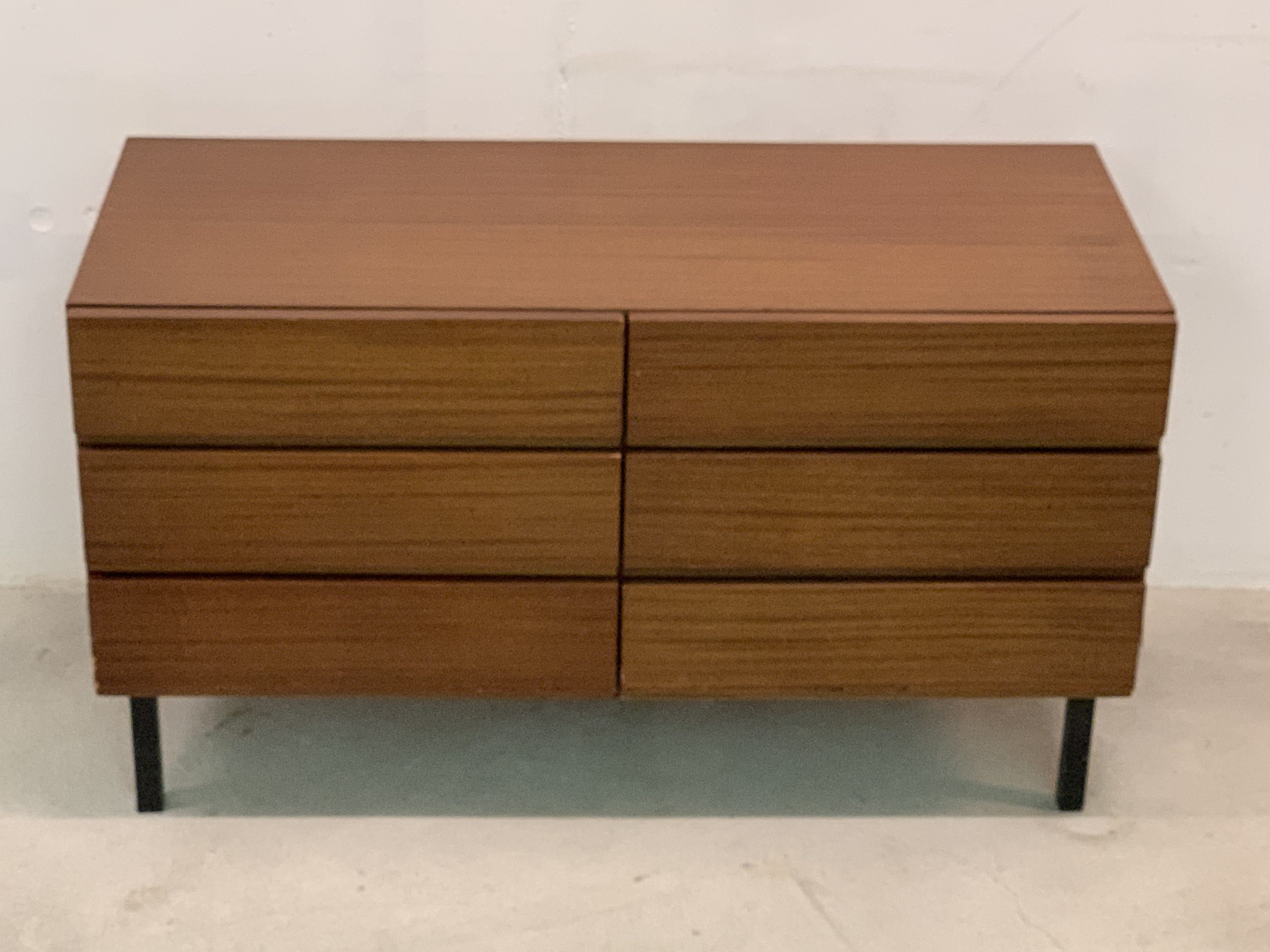 Produit venduPetit sideboard avec 6 tiroirs. Le meuble fait partie d’un ensemble (visible sur la dernière photo) mais est vendu séparément.