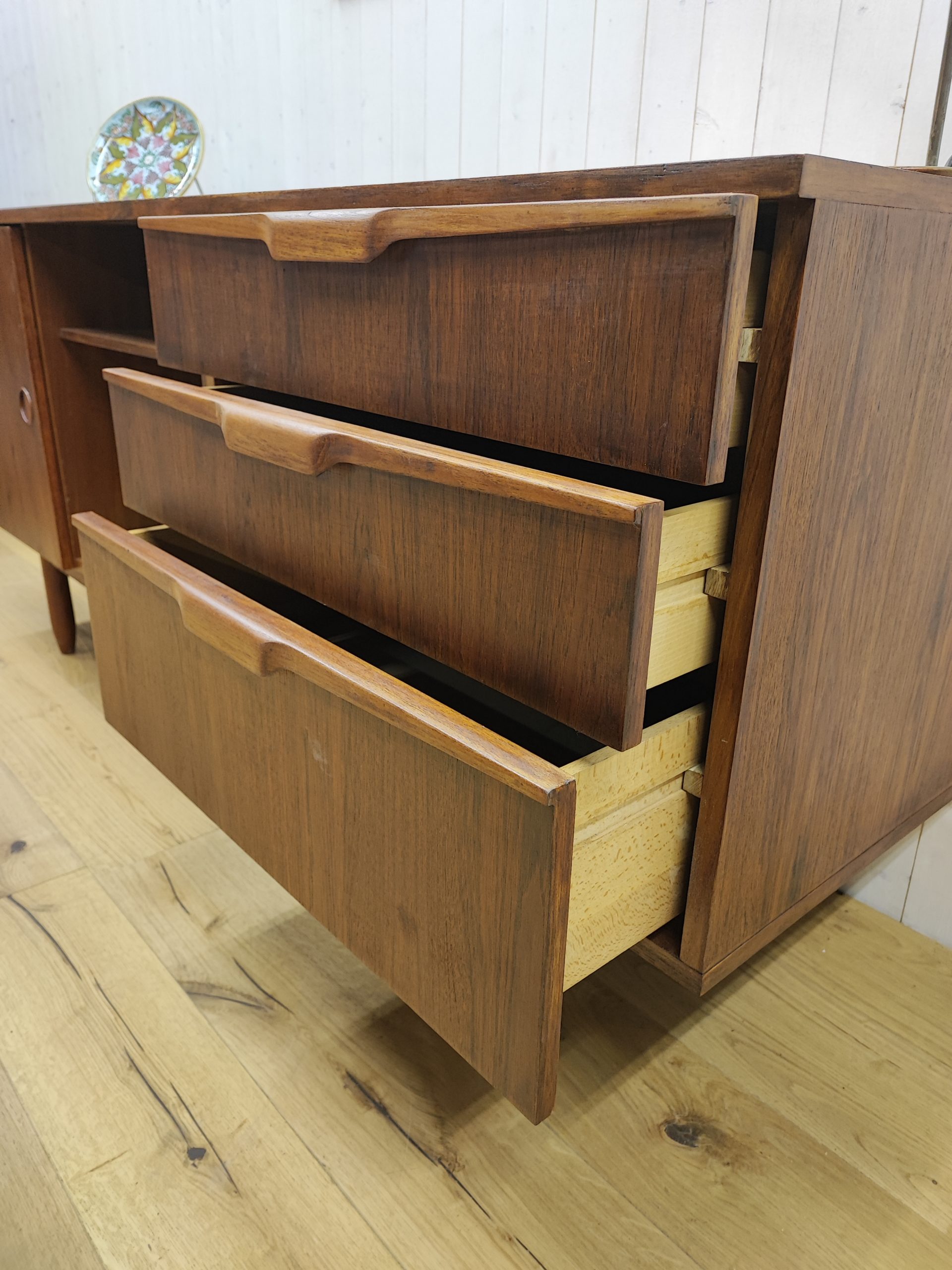 Produit venduJolie enfilade / commode / sideboard scandinave des années 60 en teck et en bon état. Une petite réparation sur le plateau mais qui ne se voit que très légèrement (voir photo en gros plan).
