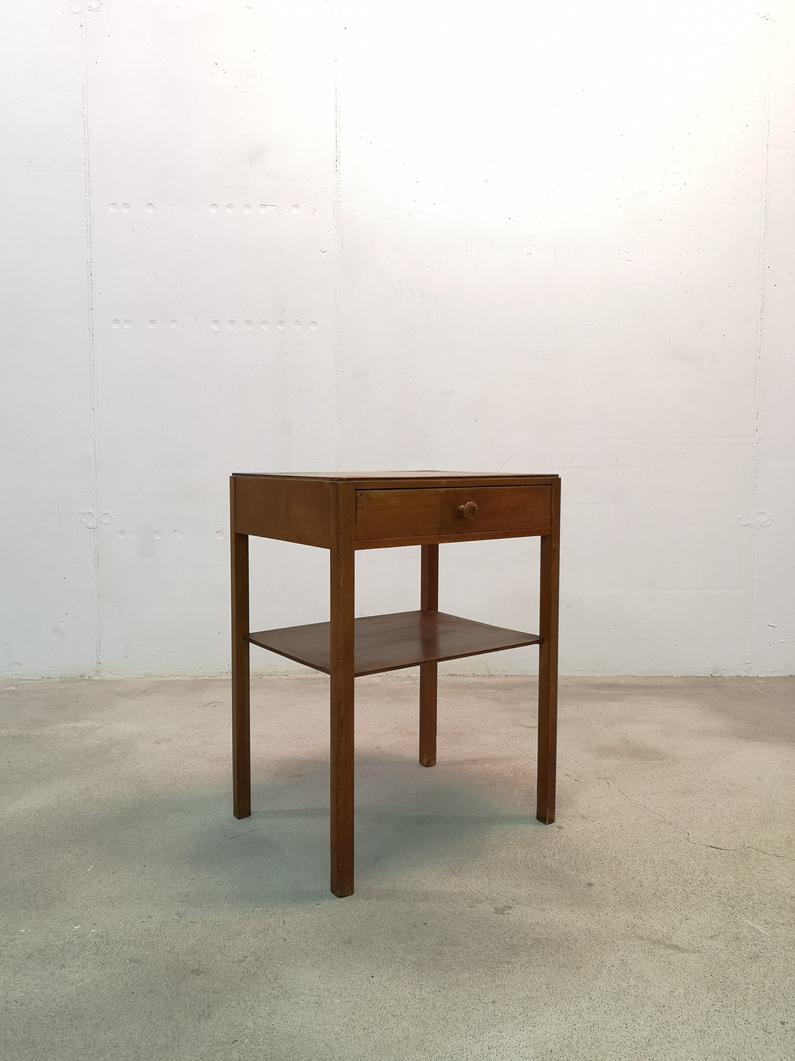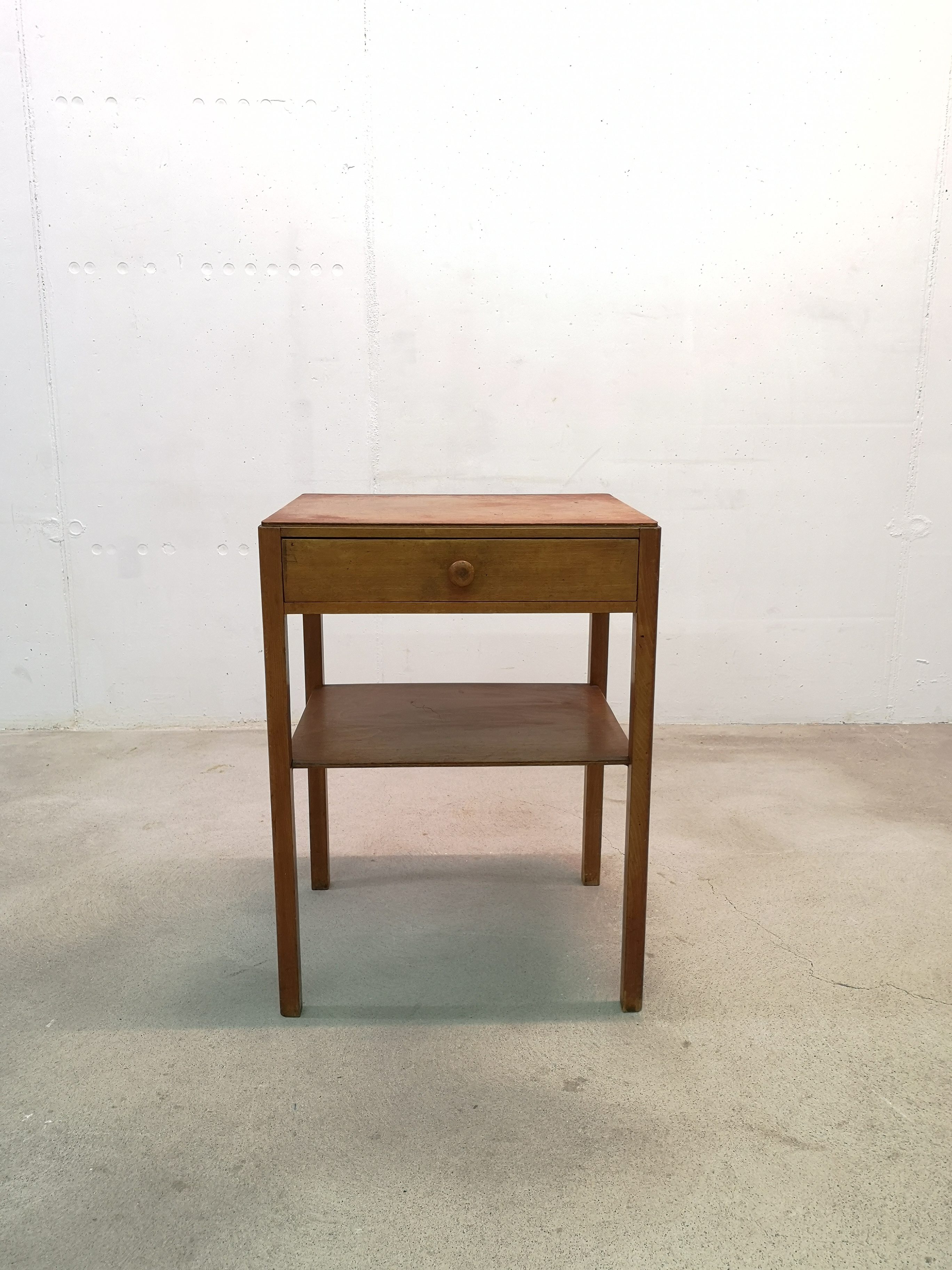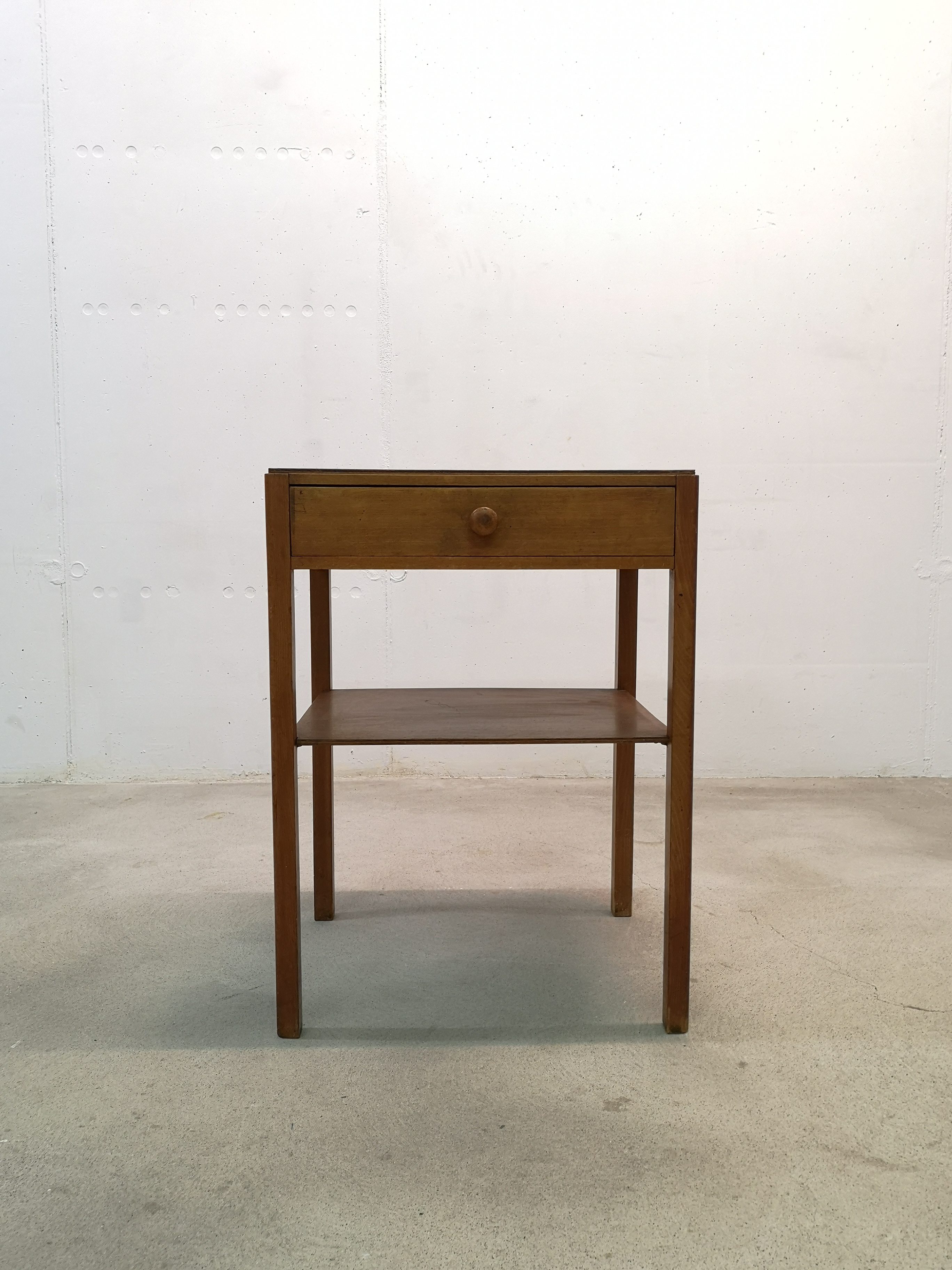 Produit venduTable d’appoint de la marque Pago en bois avec tiroir et étagère.
