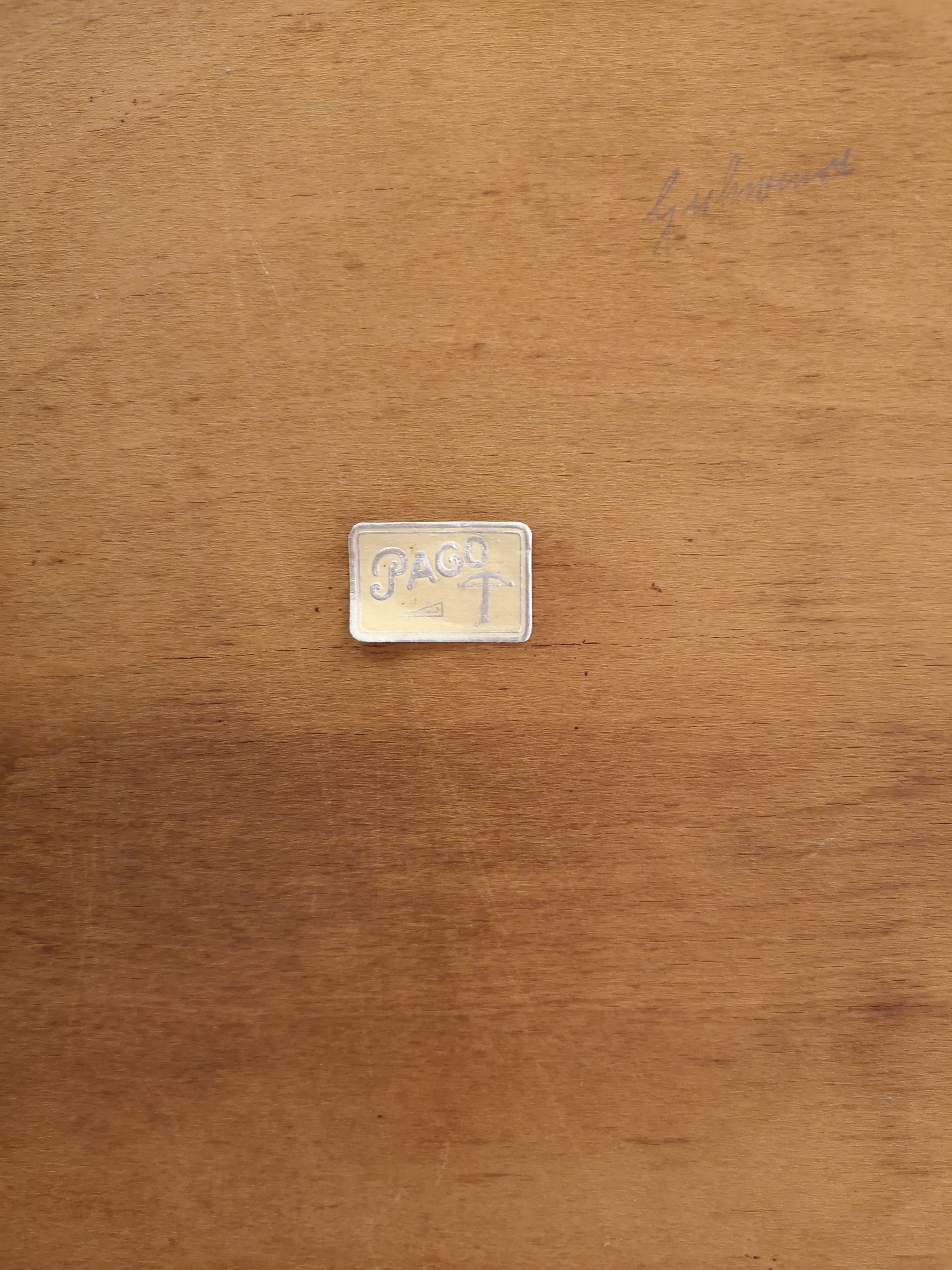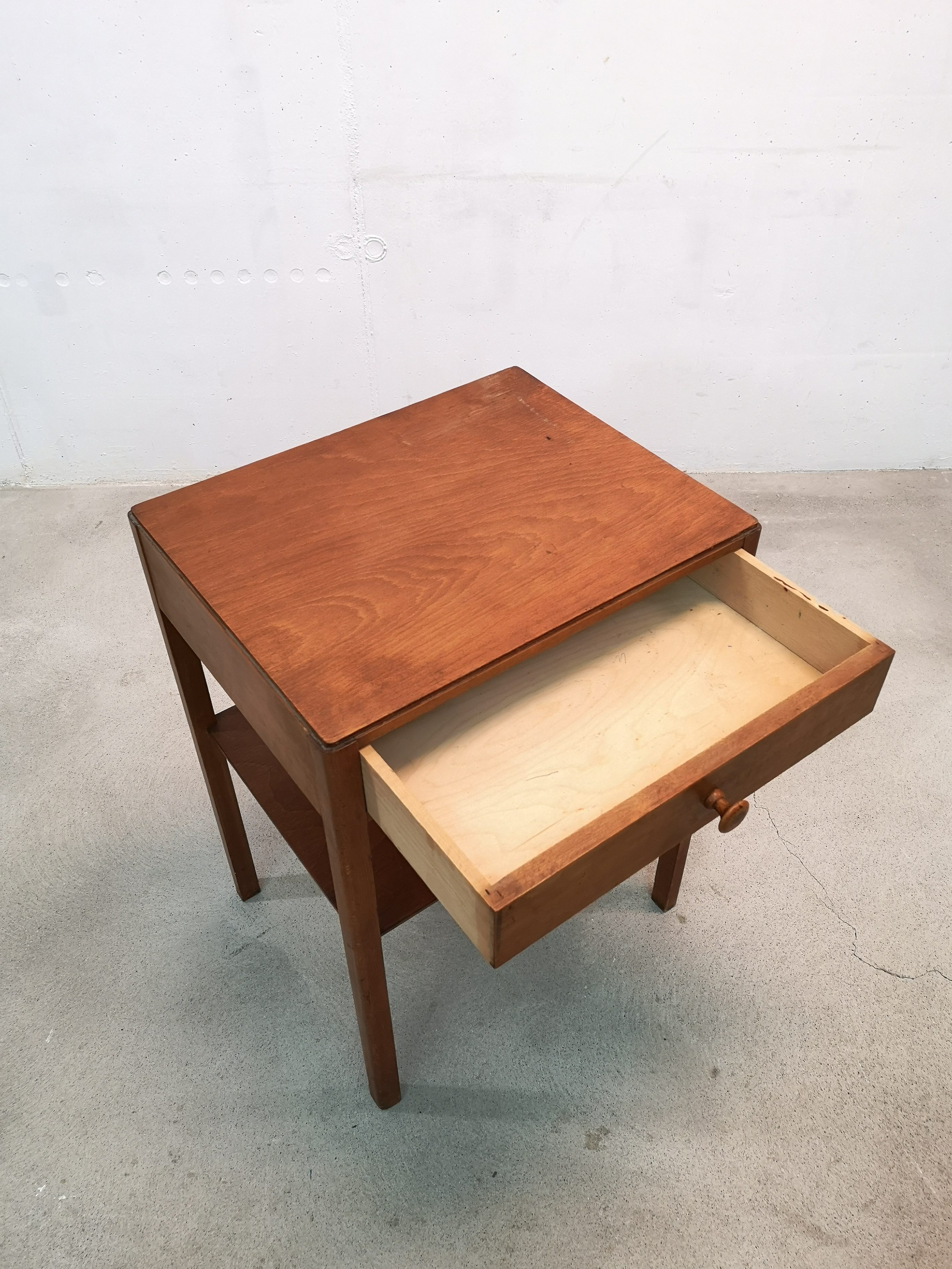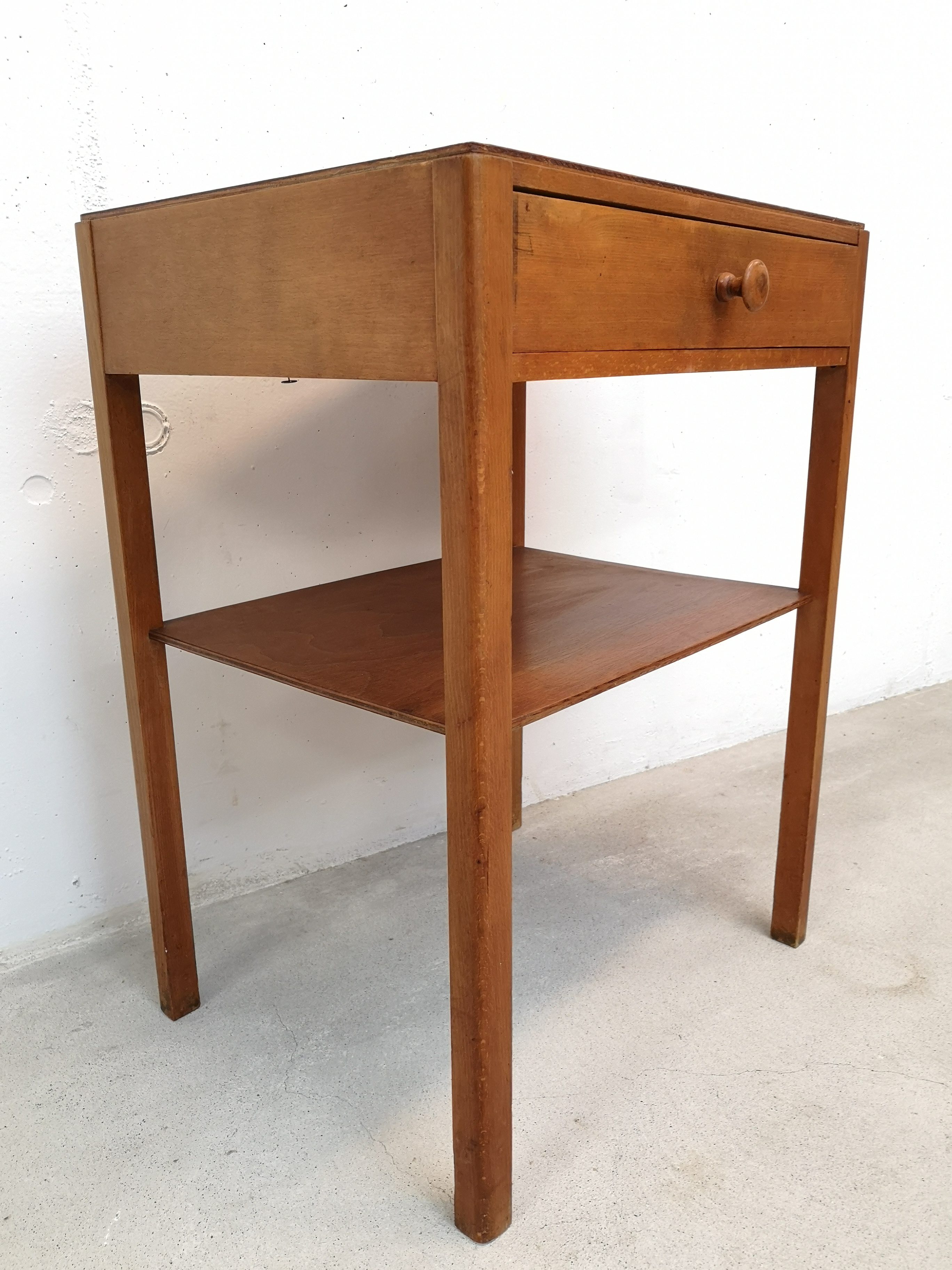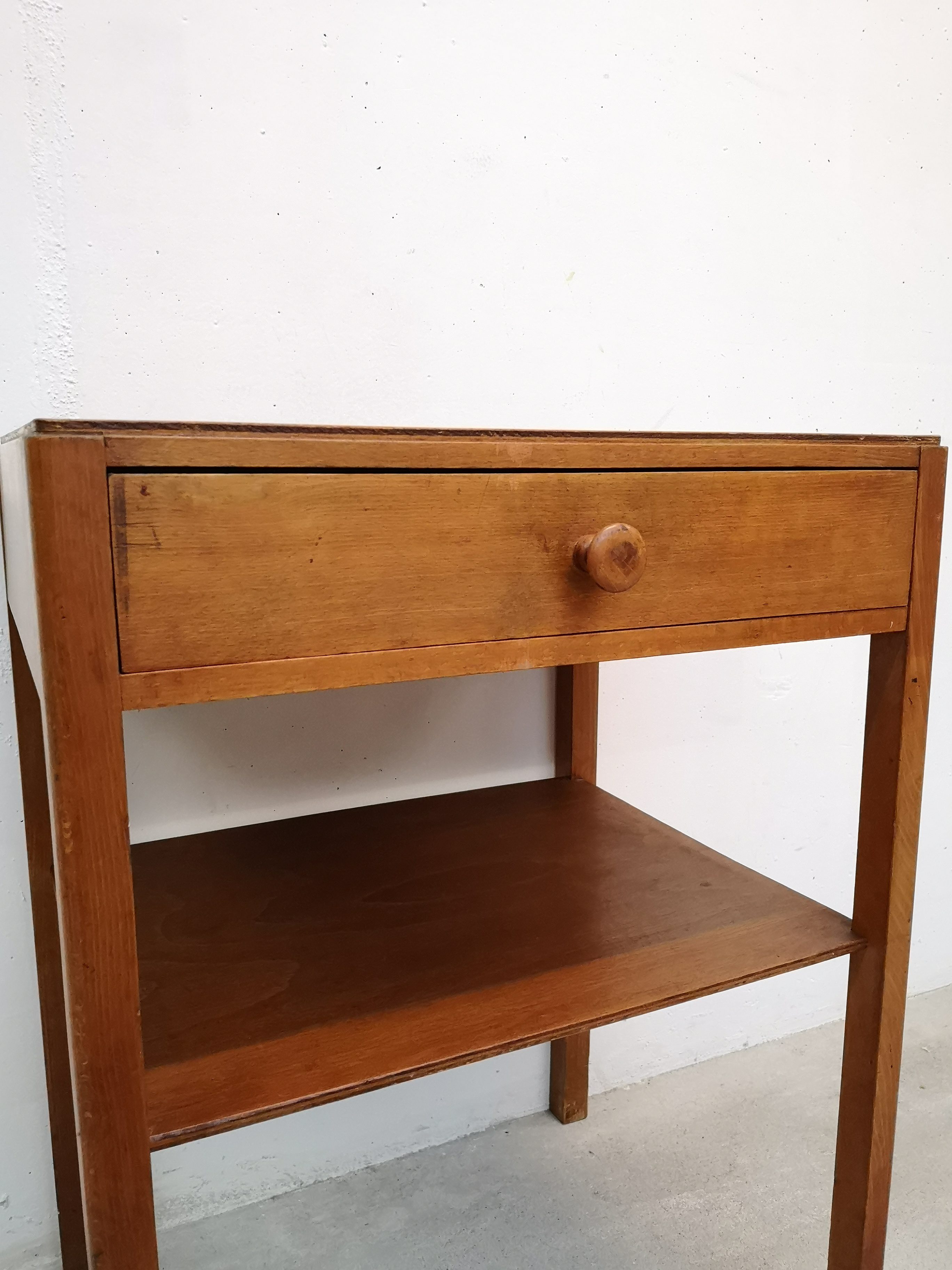 Produit venduTable d’appoint de la marque Pago en bois avec tiroir et étagère.