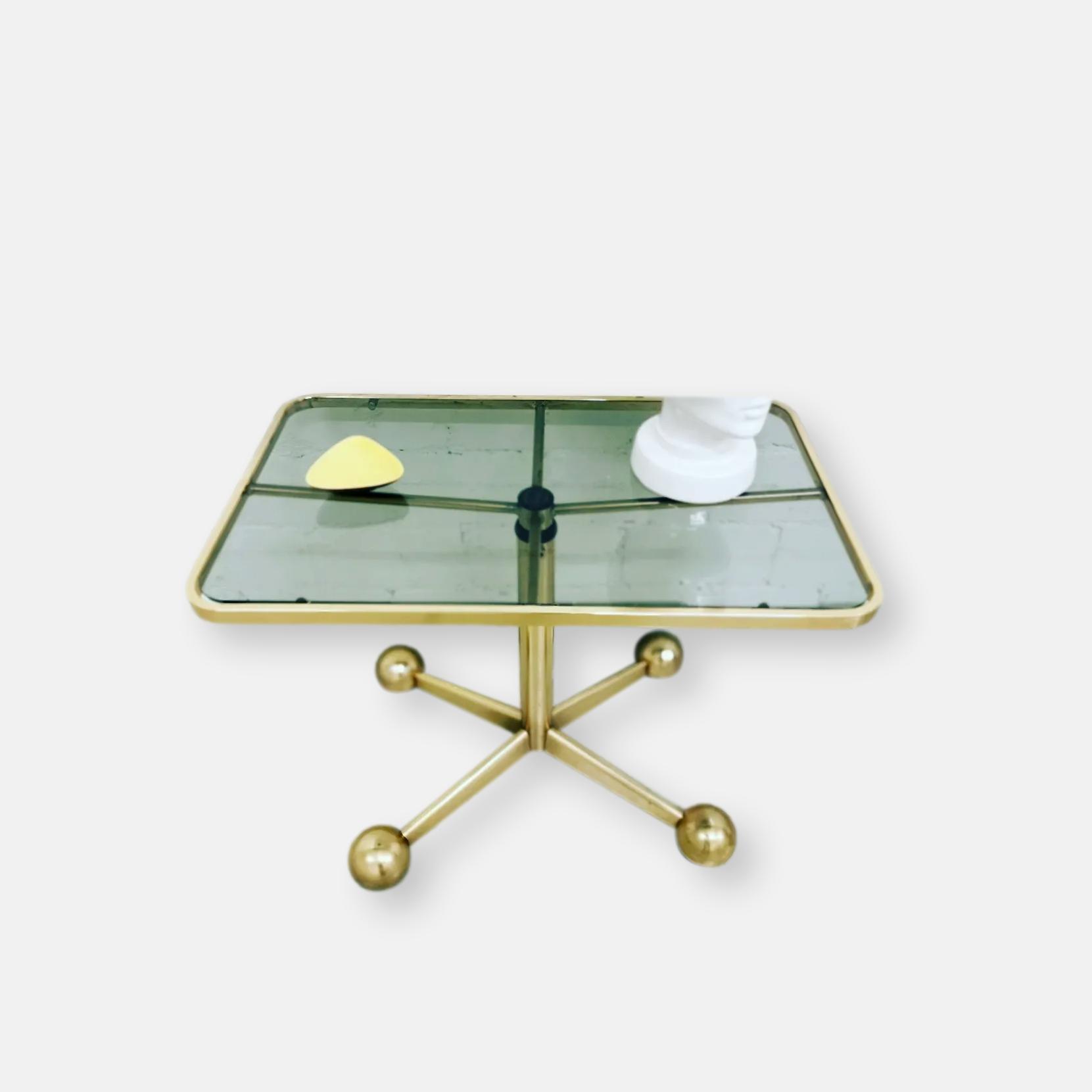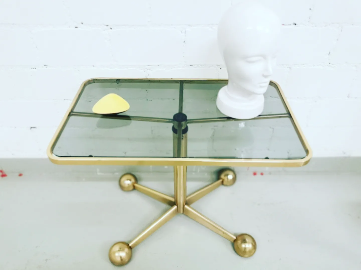 Desingklassiker Allegri Parma Sidetable aus Messing und wunderschönes Design. Füsse sind typisches Merkmale des Designer mit verdunkeltes Glas. Höhenverstellbar. Gebrauchsspuren gemäss Bilder ansonsten in einem guten Zustand.