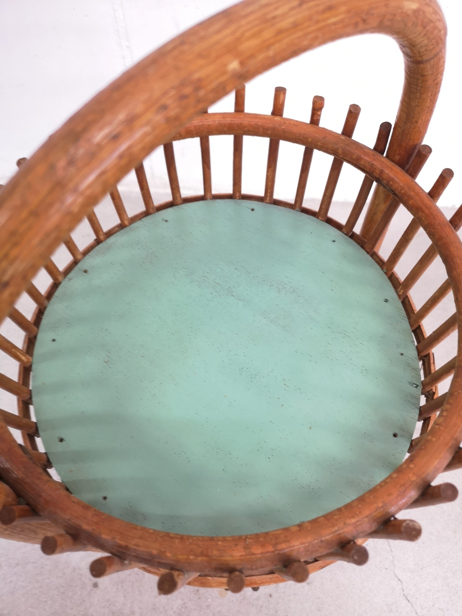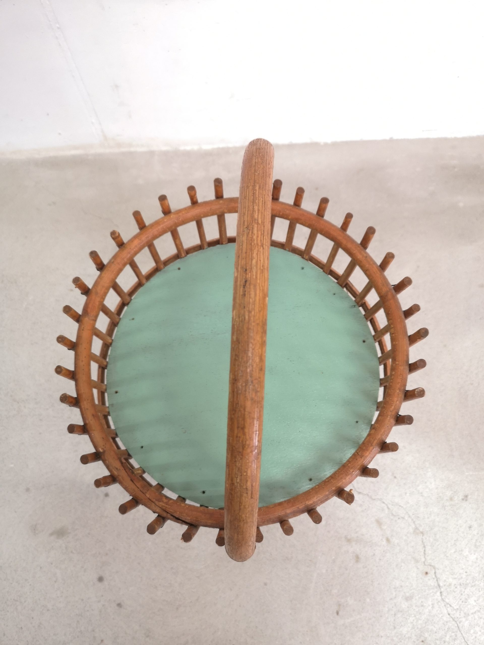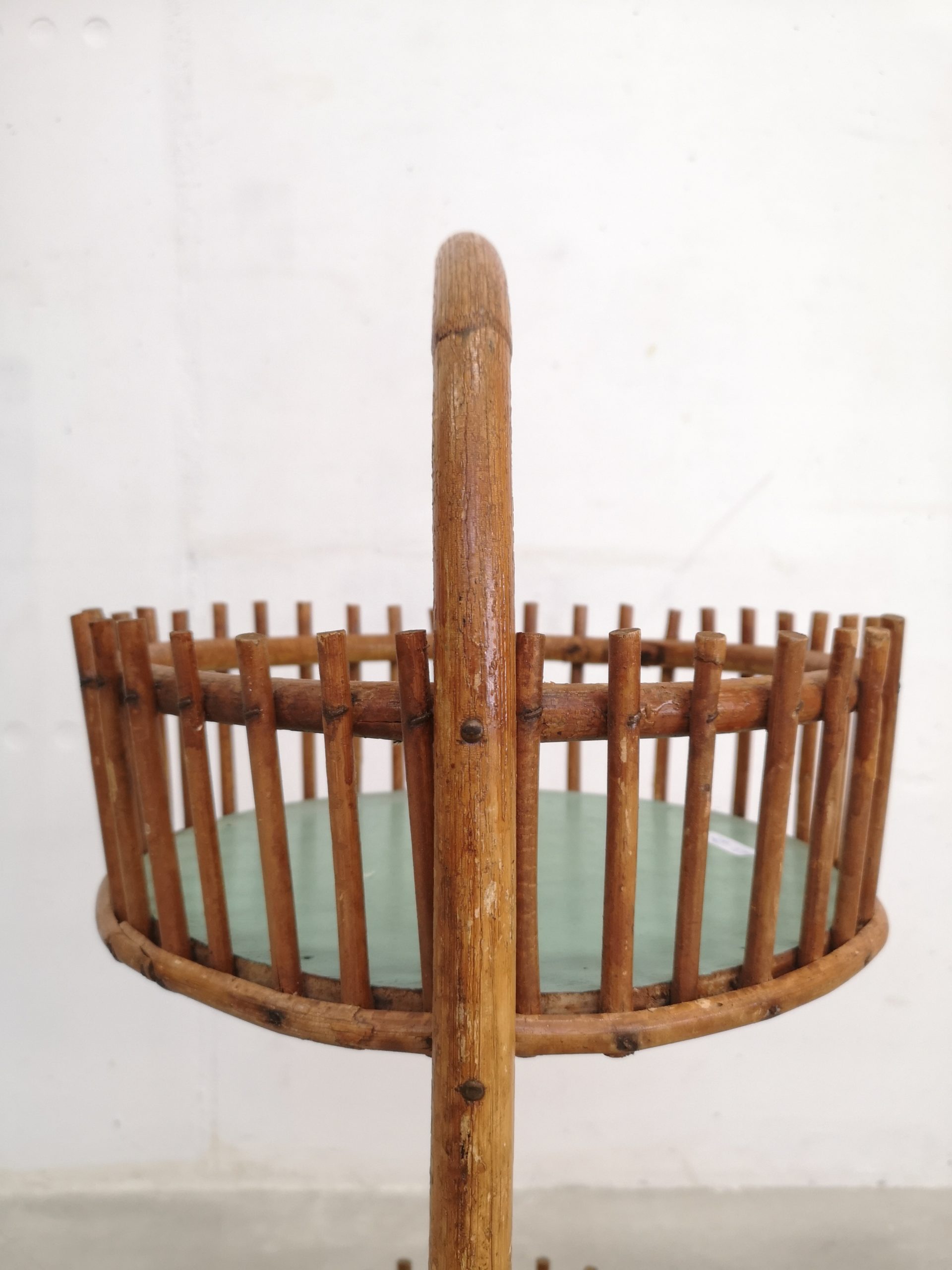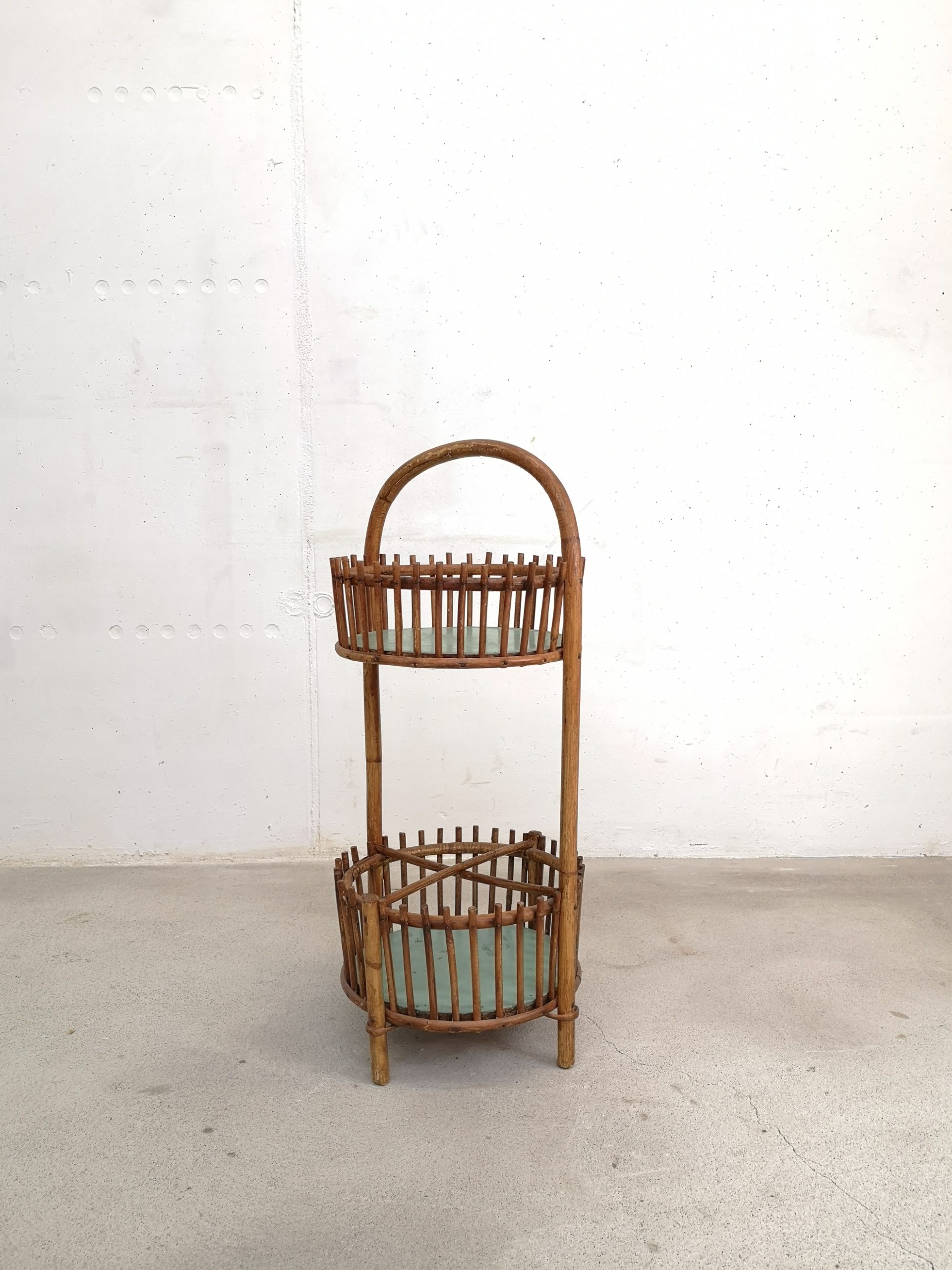 Produit venduBar en rotin doté d’une anse pour le transport et de 2 espaces pour ranger les verres (partie supérieure) et les bouteilles (partie inférieure). Sont présentes quelques traces du temps et d’utilisation visibles sur les photos. Stable et fonctionnel.