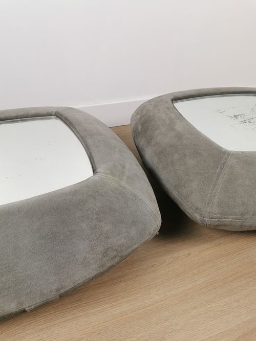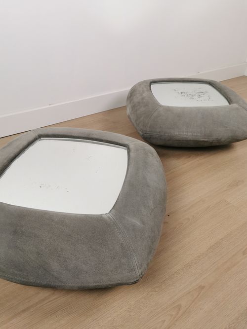 Produit venduPaire de tables basses ou de bouts de canapé en velours des années 70