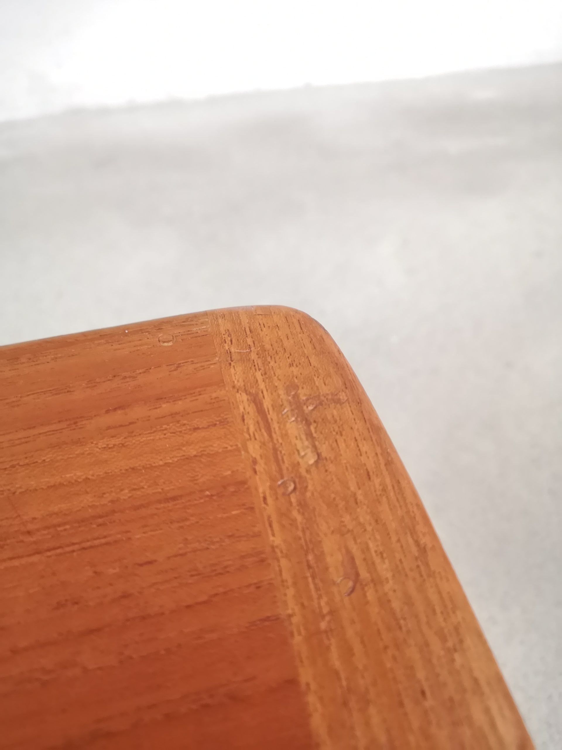 Produit venduPetite table d’appoint en bois de teck. Des traces et des signes sont presents sur le bois (voir photos). La table d’appoint est stable et solide et très élégante.
