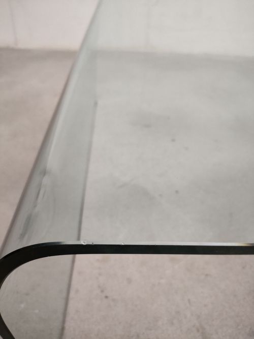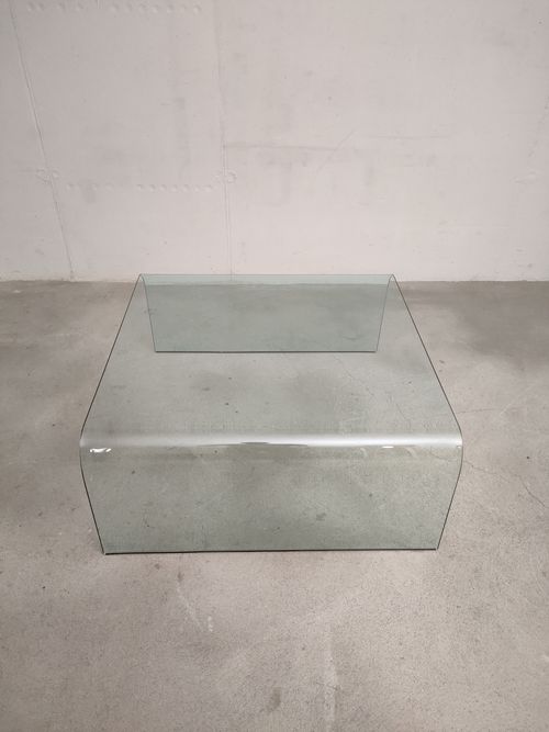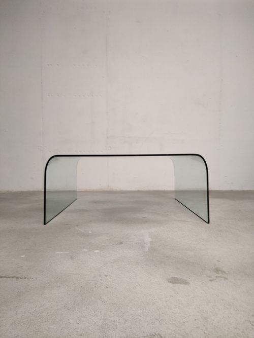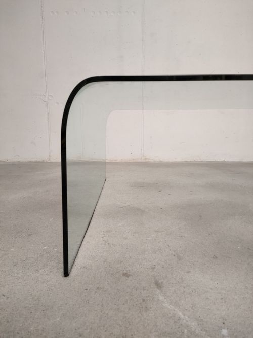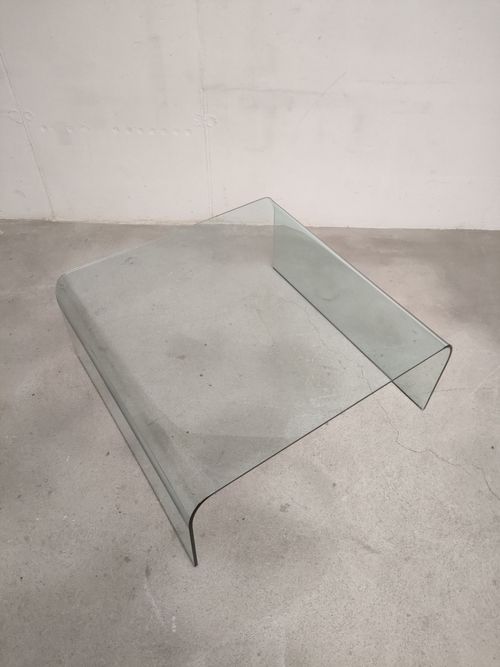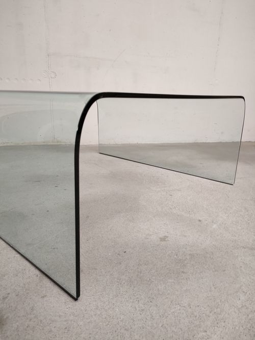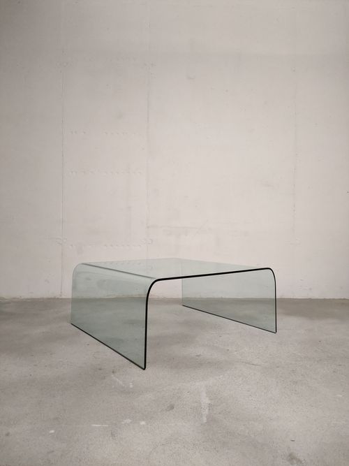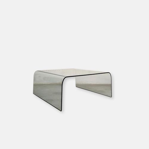 Produit venduTable basse italienne en verre courbé dessinée par Angelo Cortesi pour Fiam.