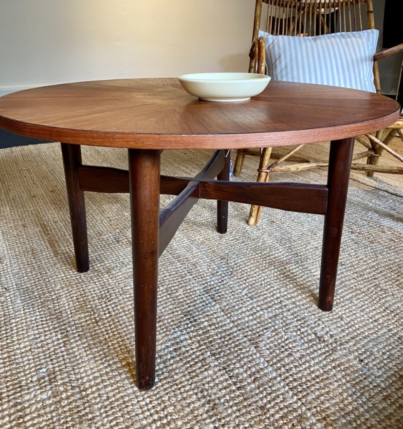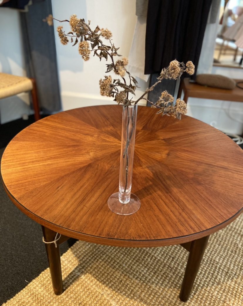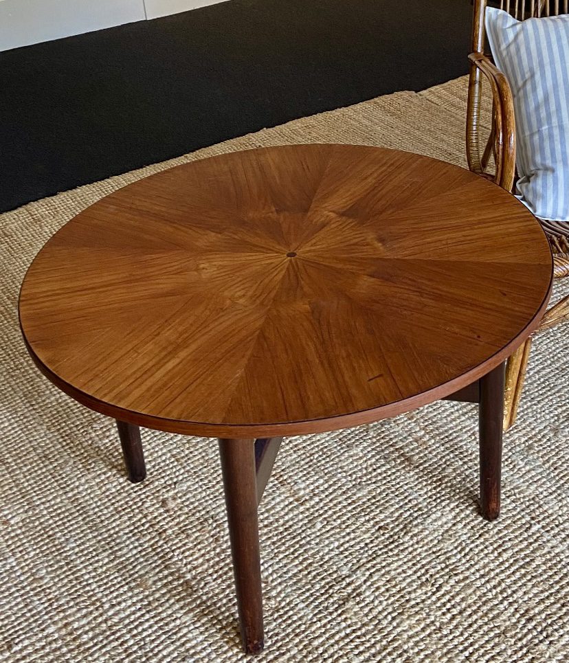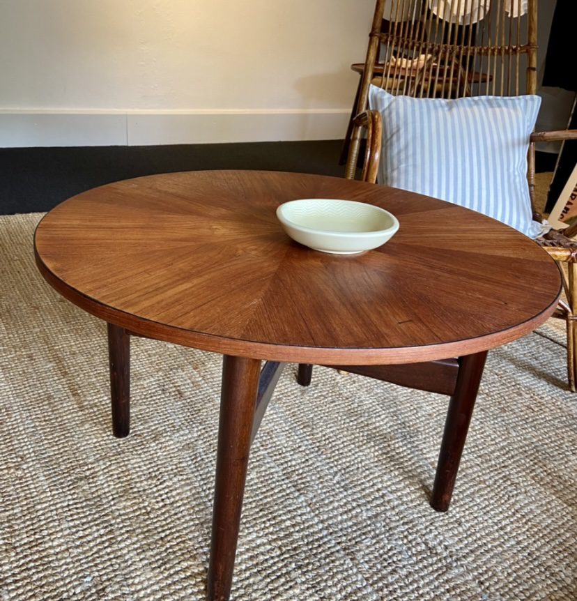 Produit venduJolie table basse, danoise, ronde, en teck, vintage.