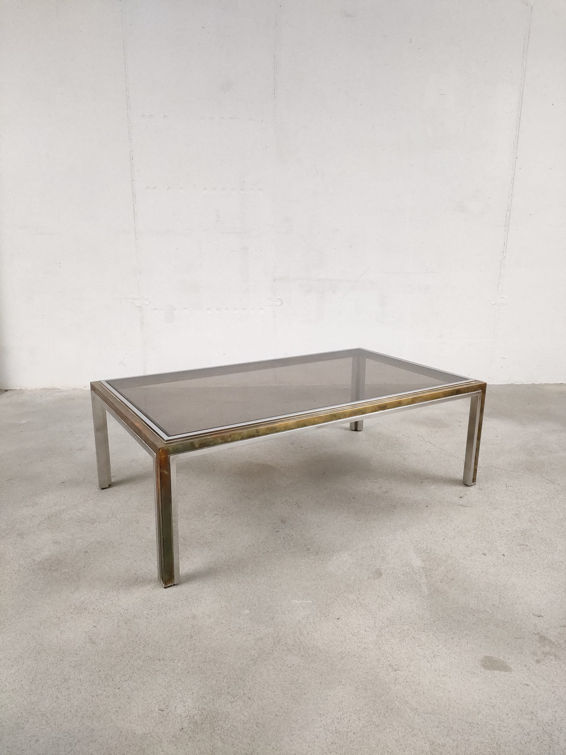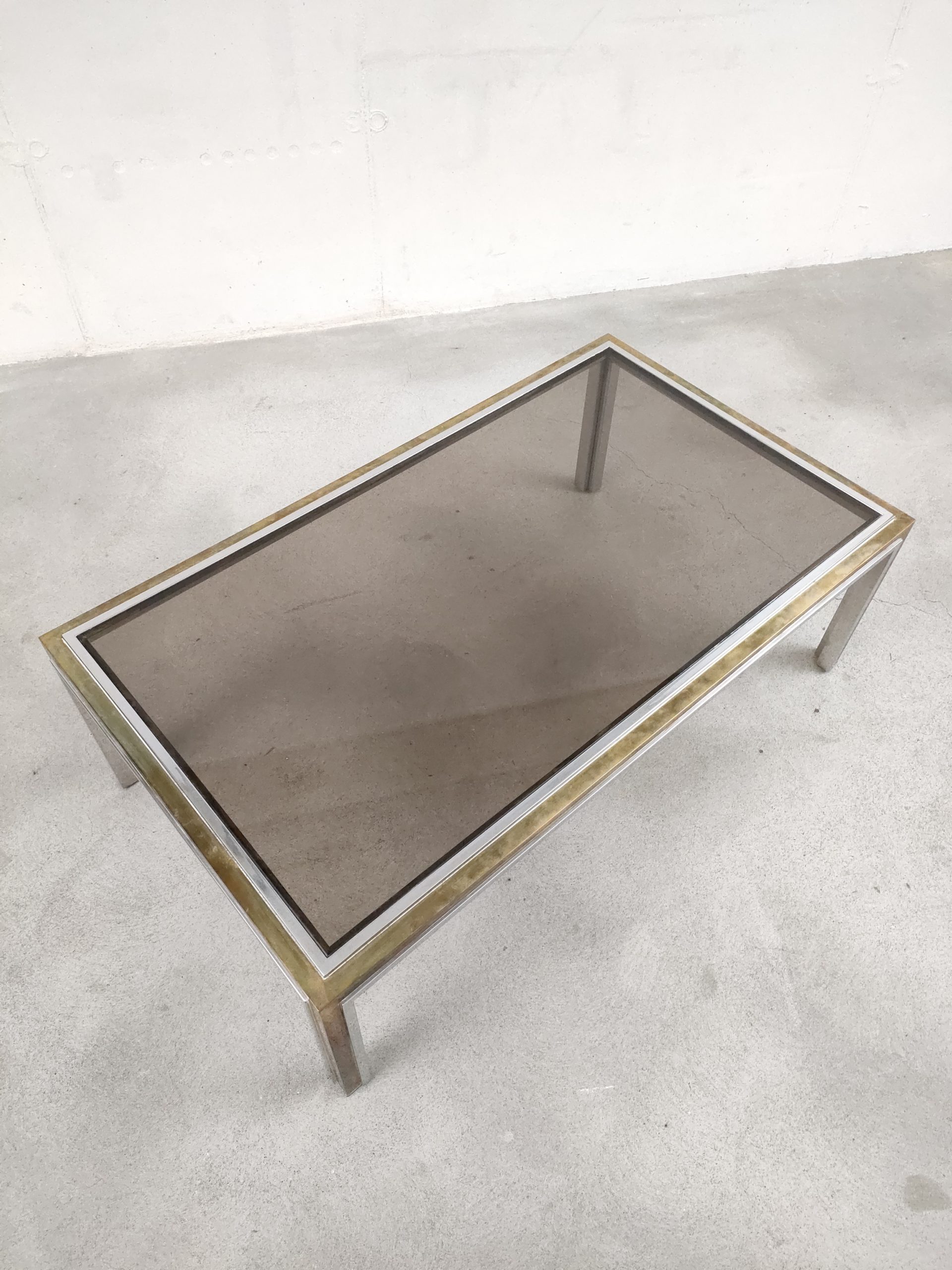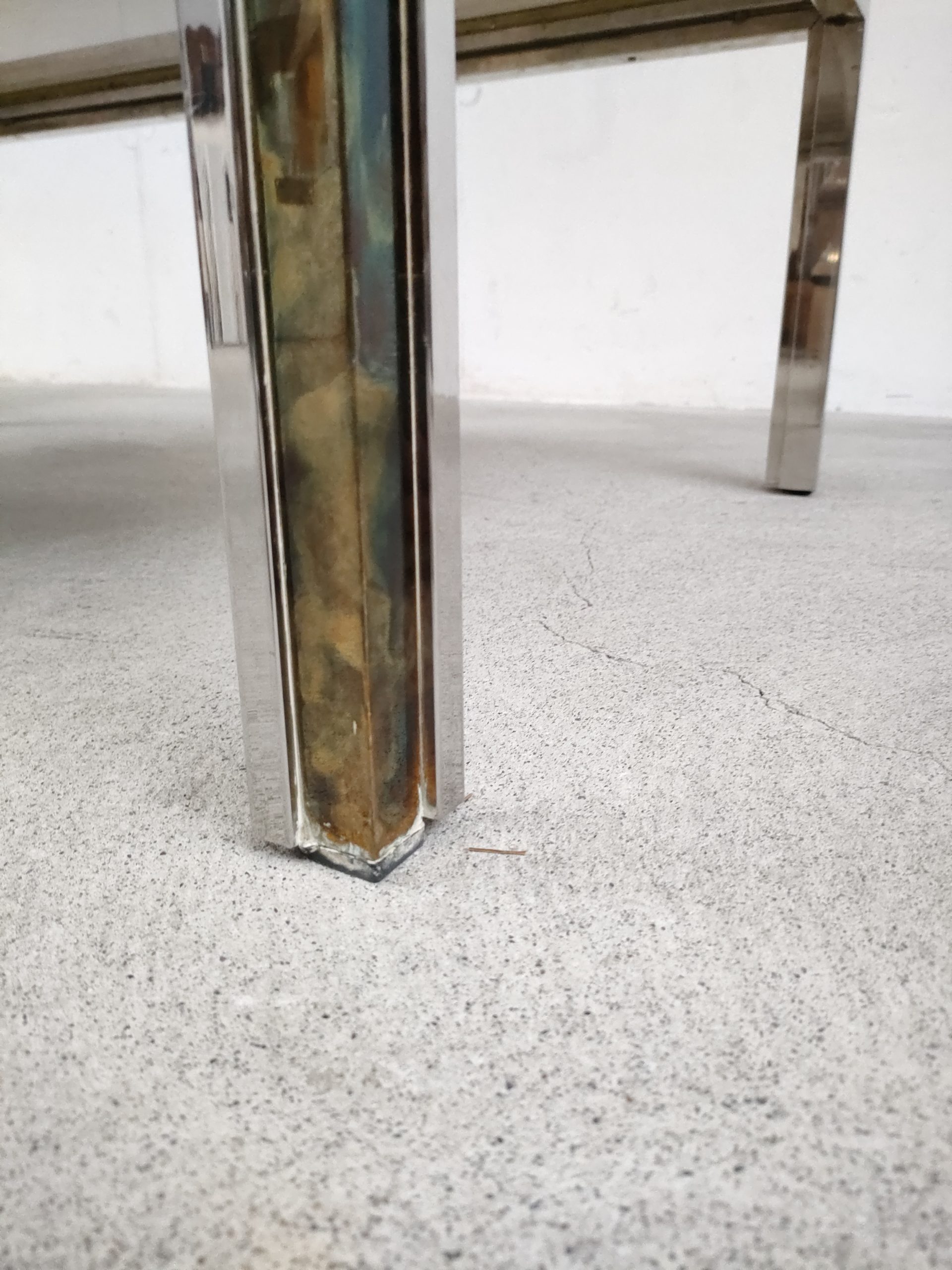 Produit venduTable basse attribué à Romeo Rega avec plateau en verre et structure en métal et chrome.