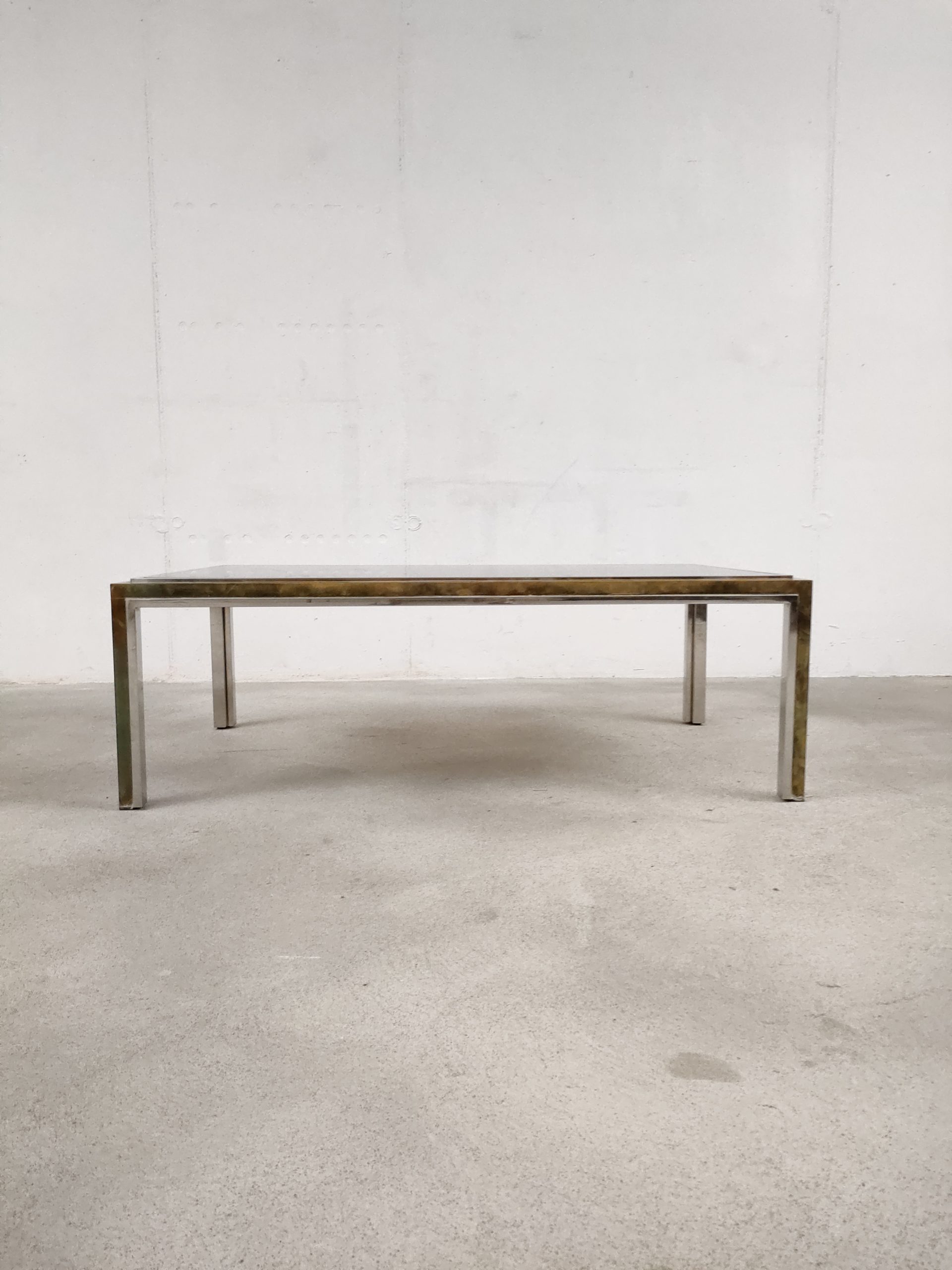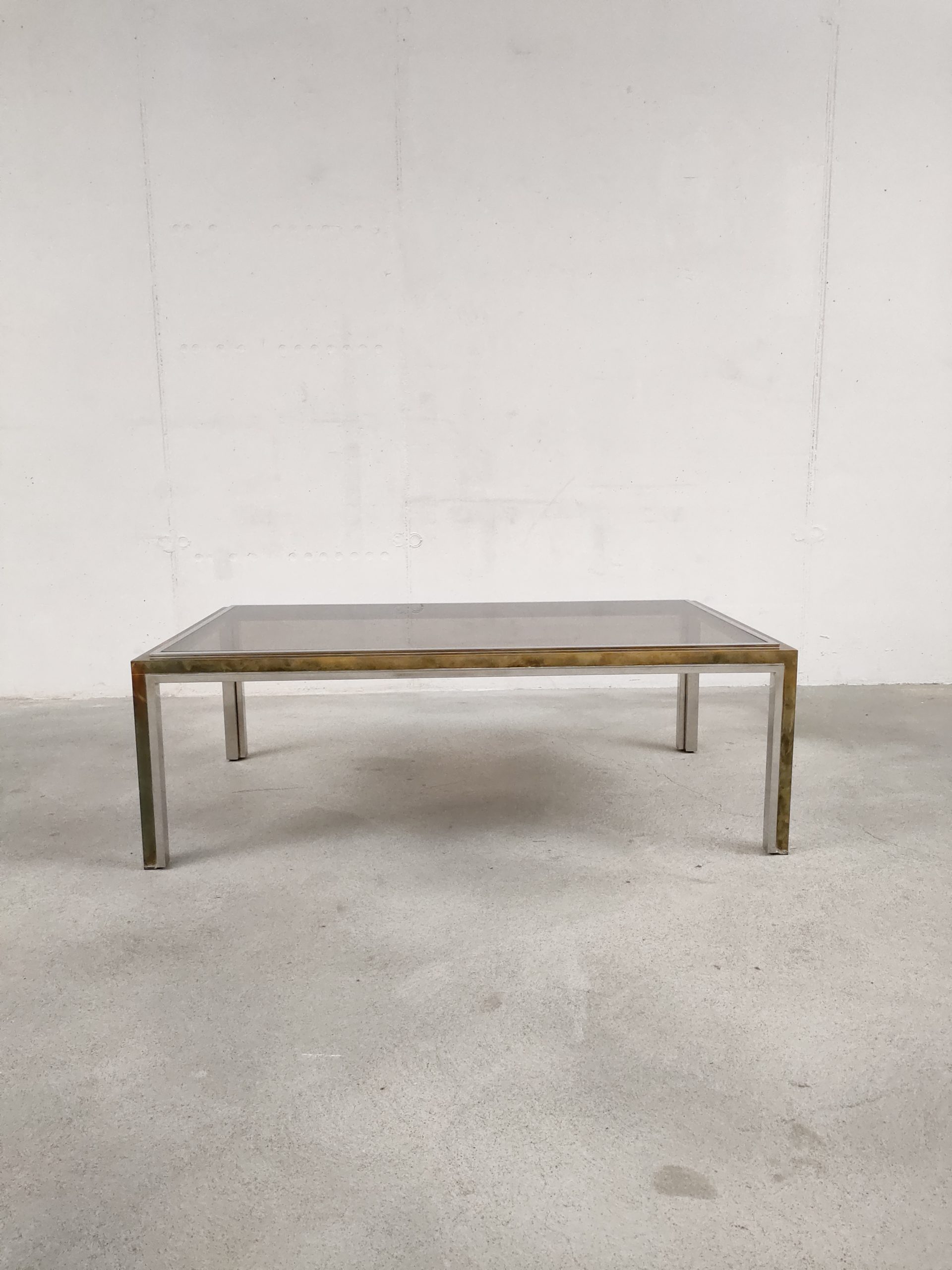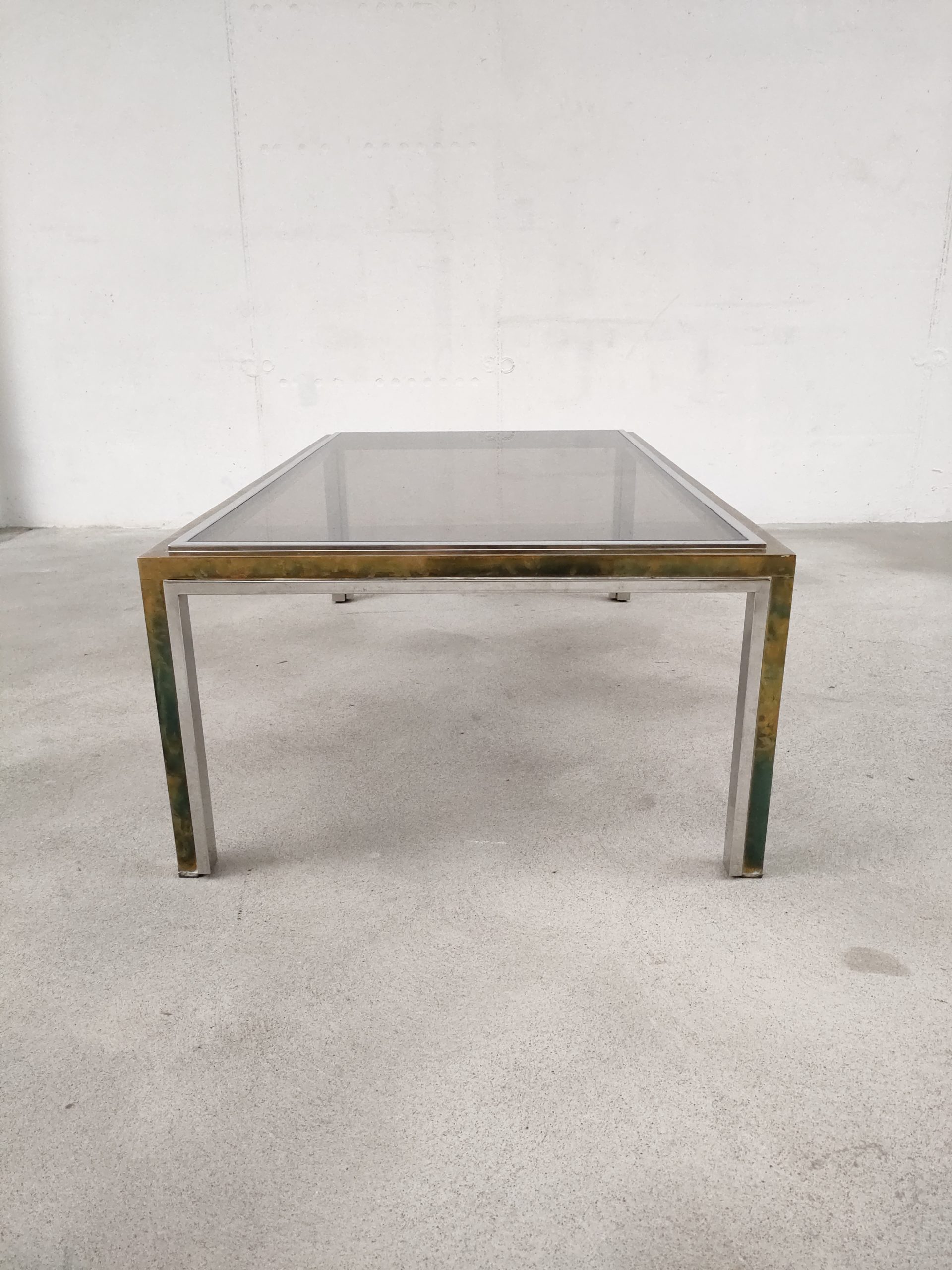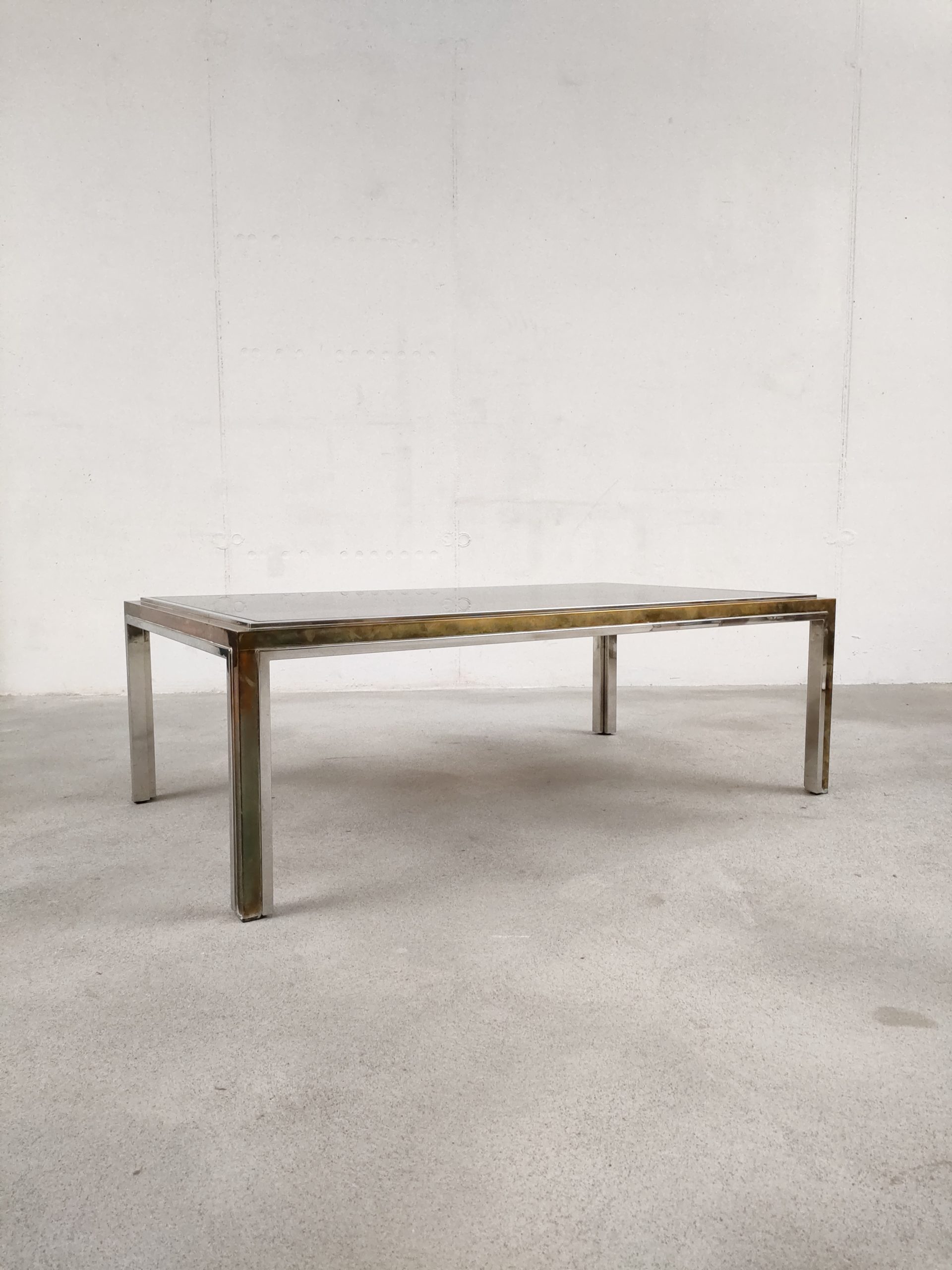 Produit venduTable basse attribué à Romeo Rega avec plateau en verre et structure en métal et chrome.