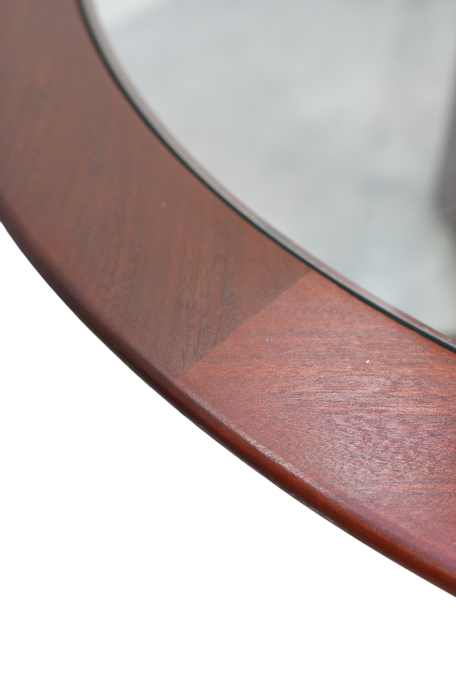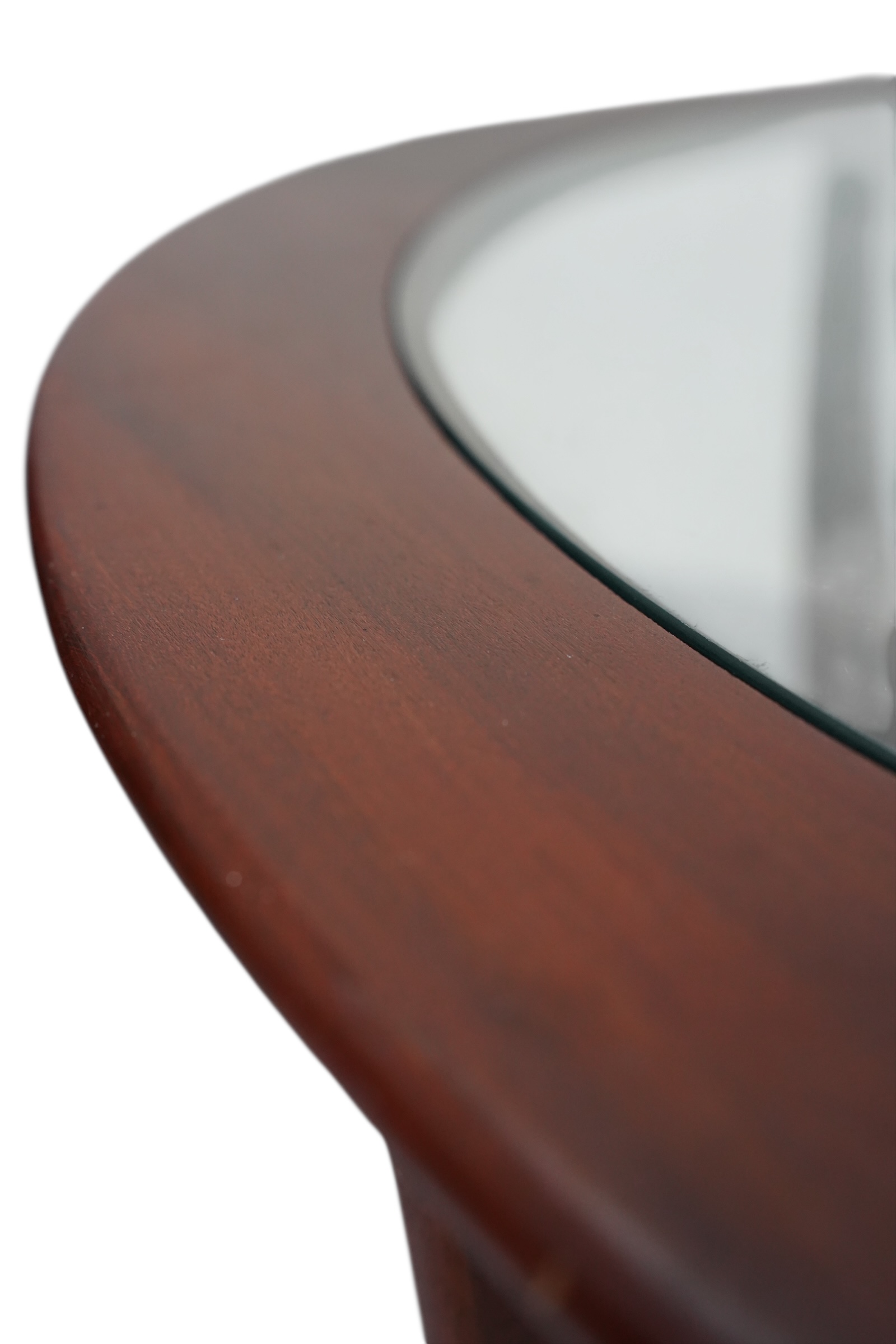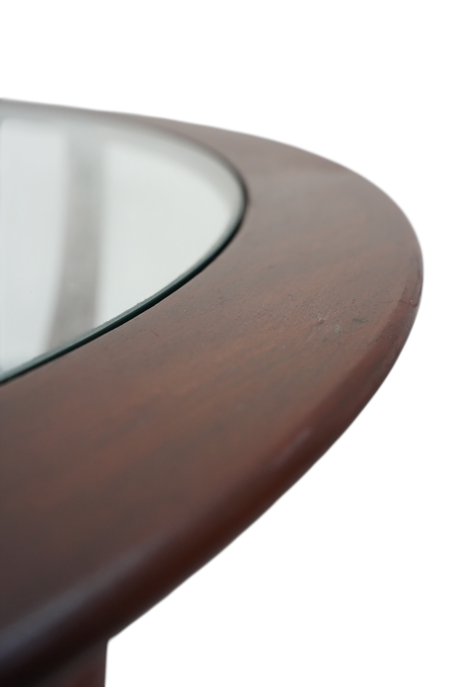 Table basse ronde astro conçue par le designer scandinave Victor Wilkins pour le fabricant britannique G-Plan, 1960’s. La table basse populaire Fresco » se compose d’un cadre en teck massif au tond chaud munie d’un plateau en verre.