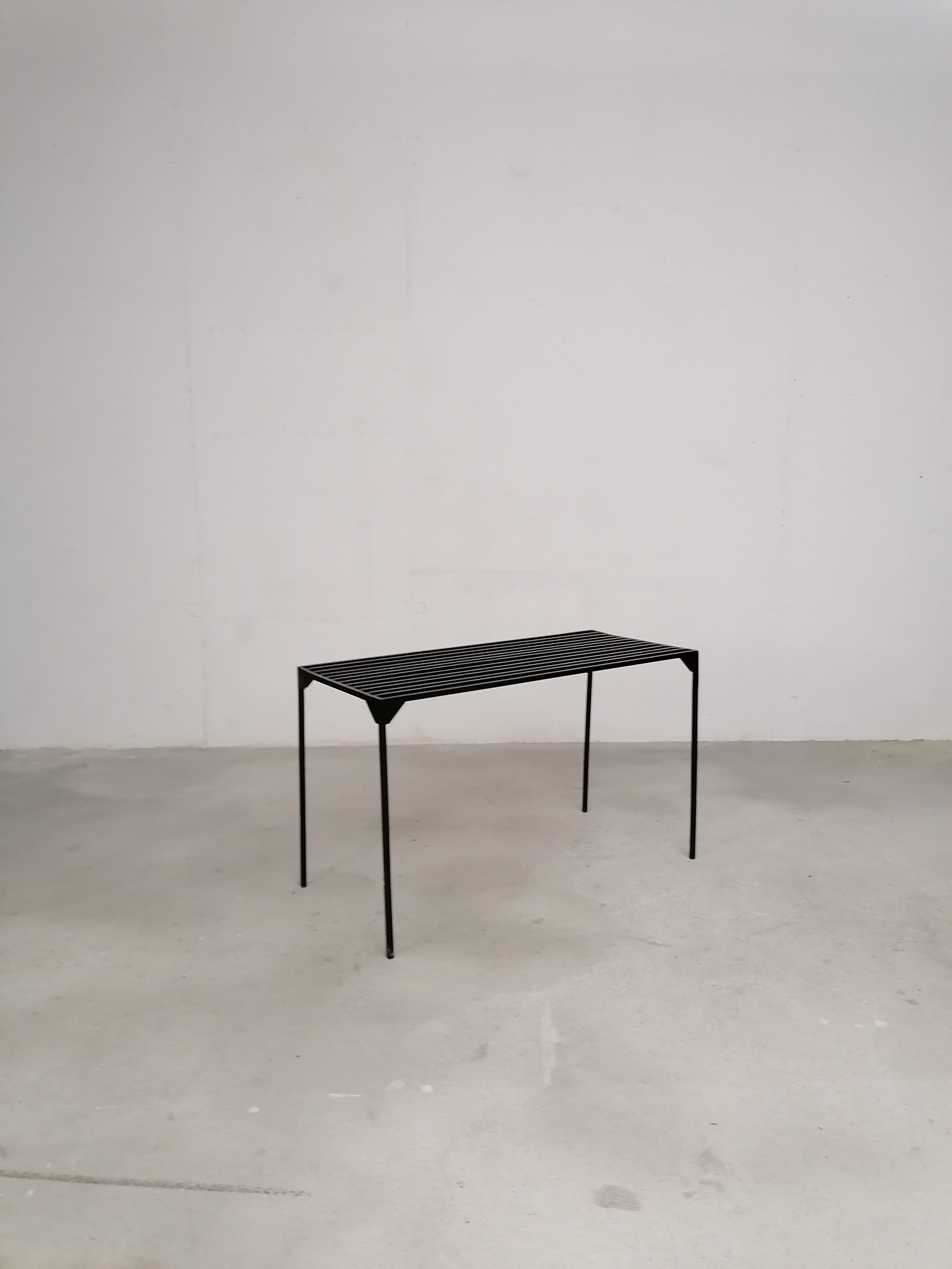 Produit venduTable d’appoint vintage en métal noir. Stable et solide et élégante.
