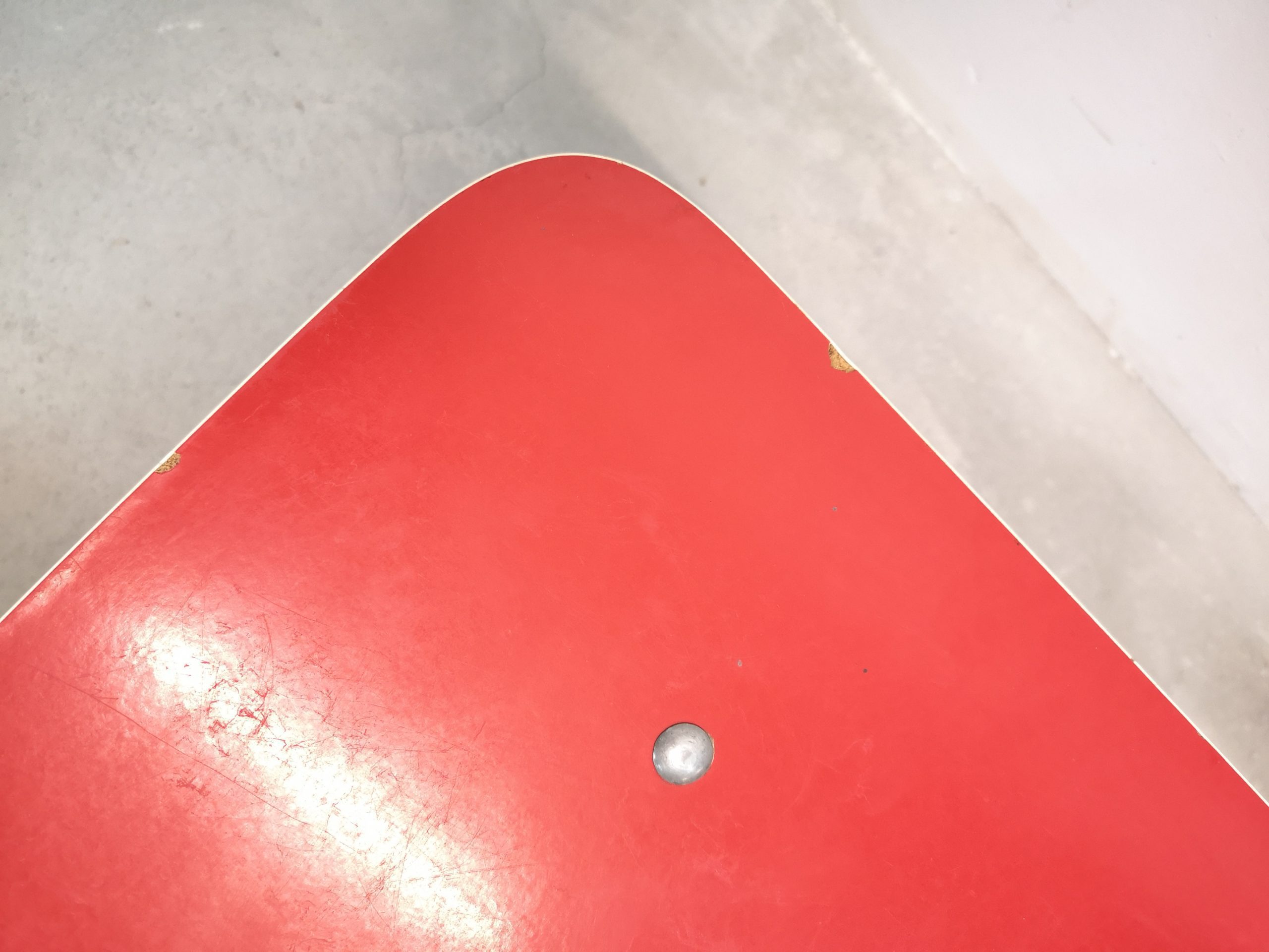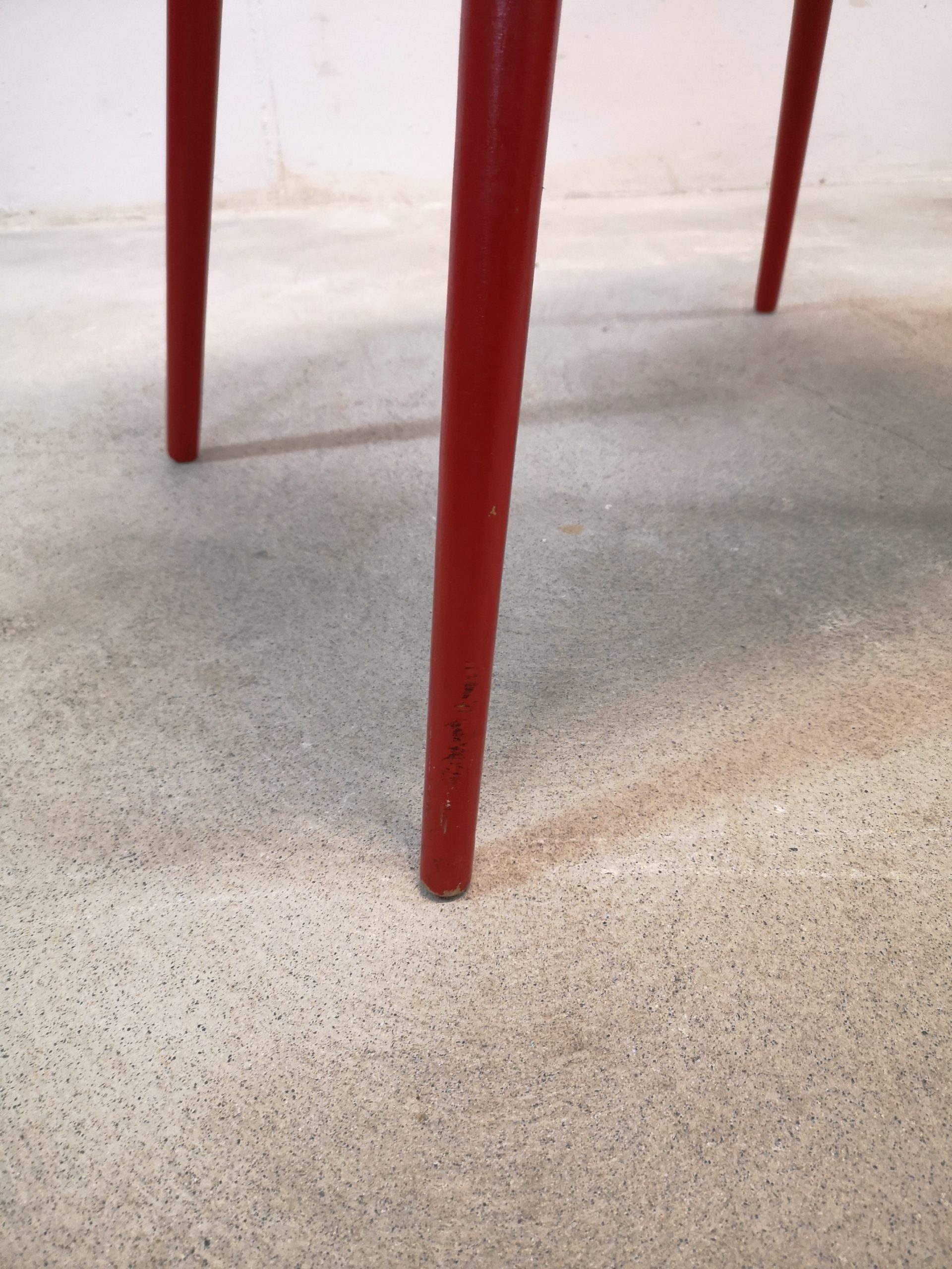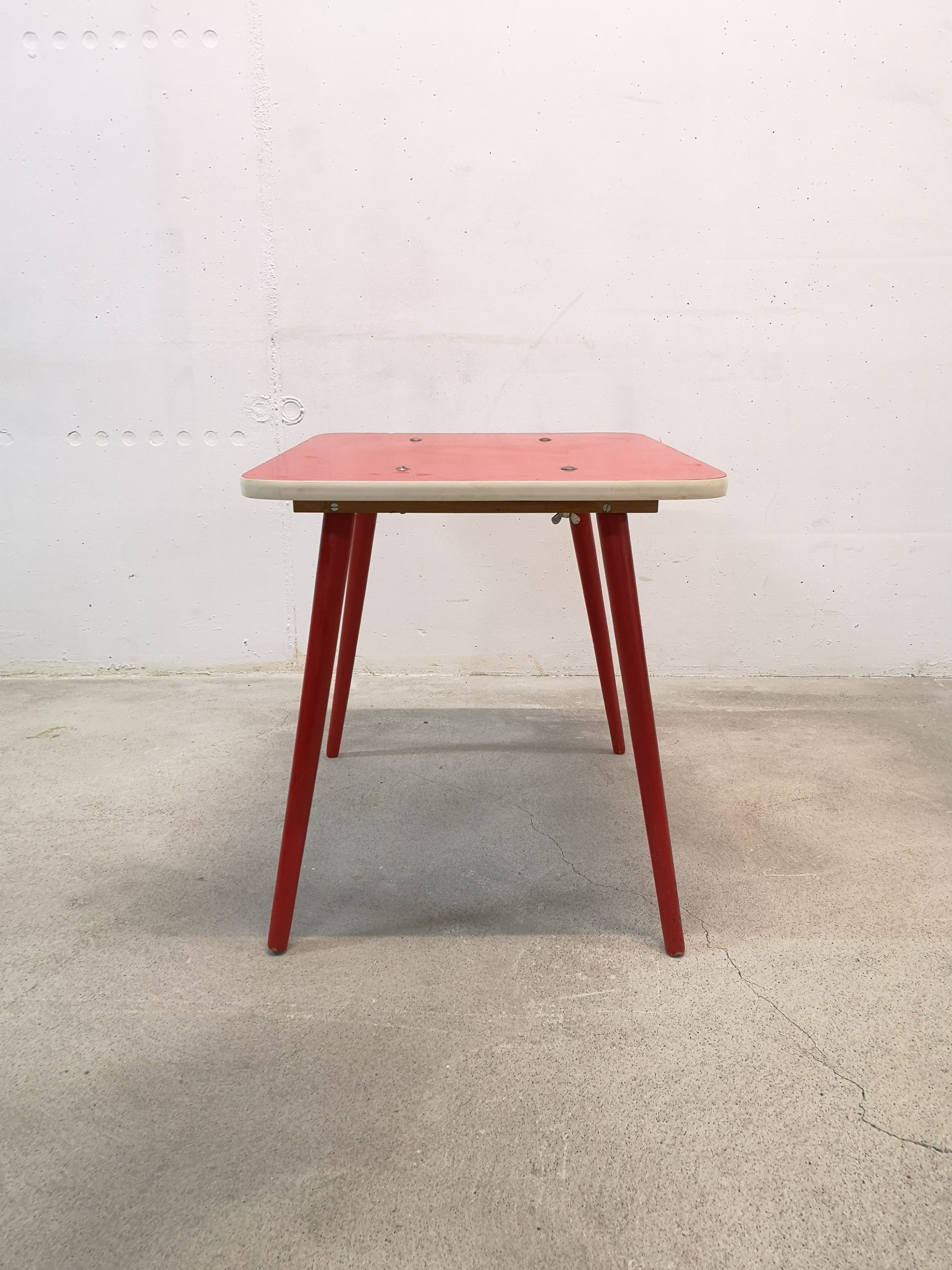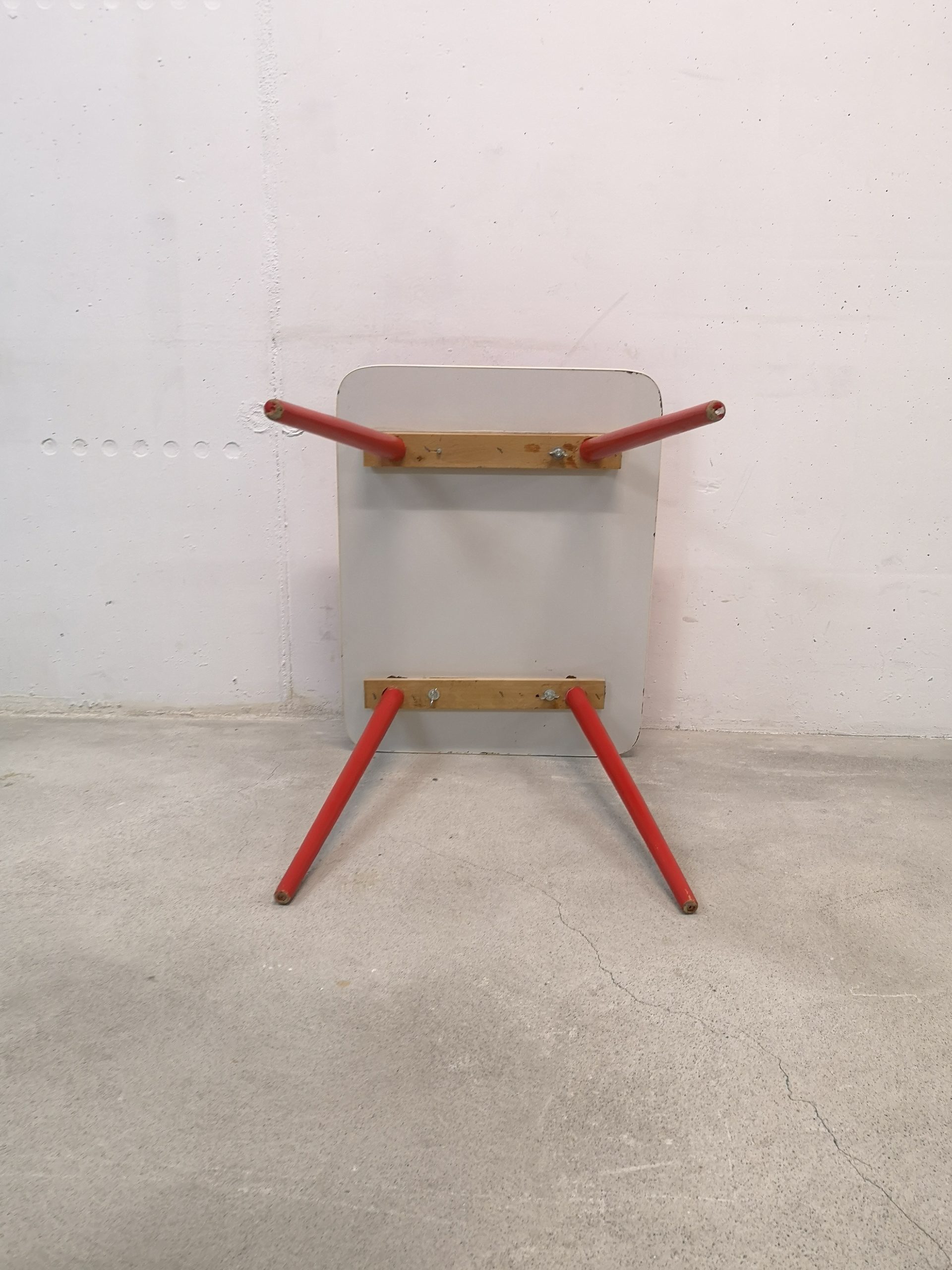 Produit venduTable d’appoint vintage en bois avec plateau rouge. La table peut être utilisée aussi comme bureau pour enfants.