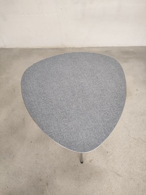 Produit venduTable d’appoint tripode avec piètement et bord en métal et plateau avec un revêtement plastifié de couleur bleu/gris.