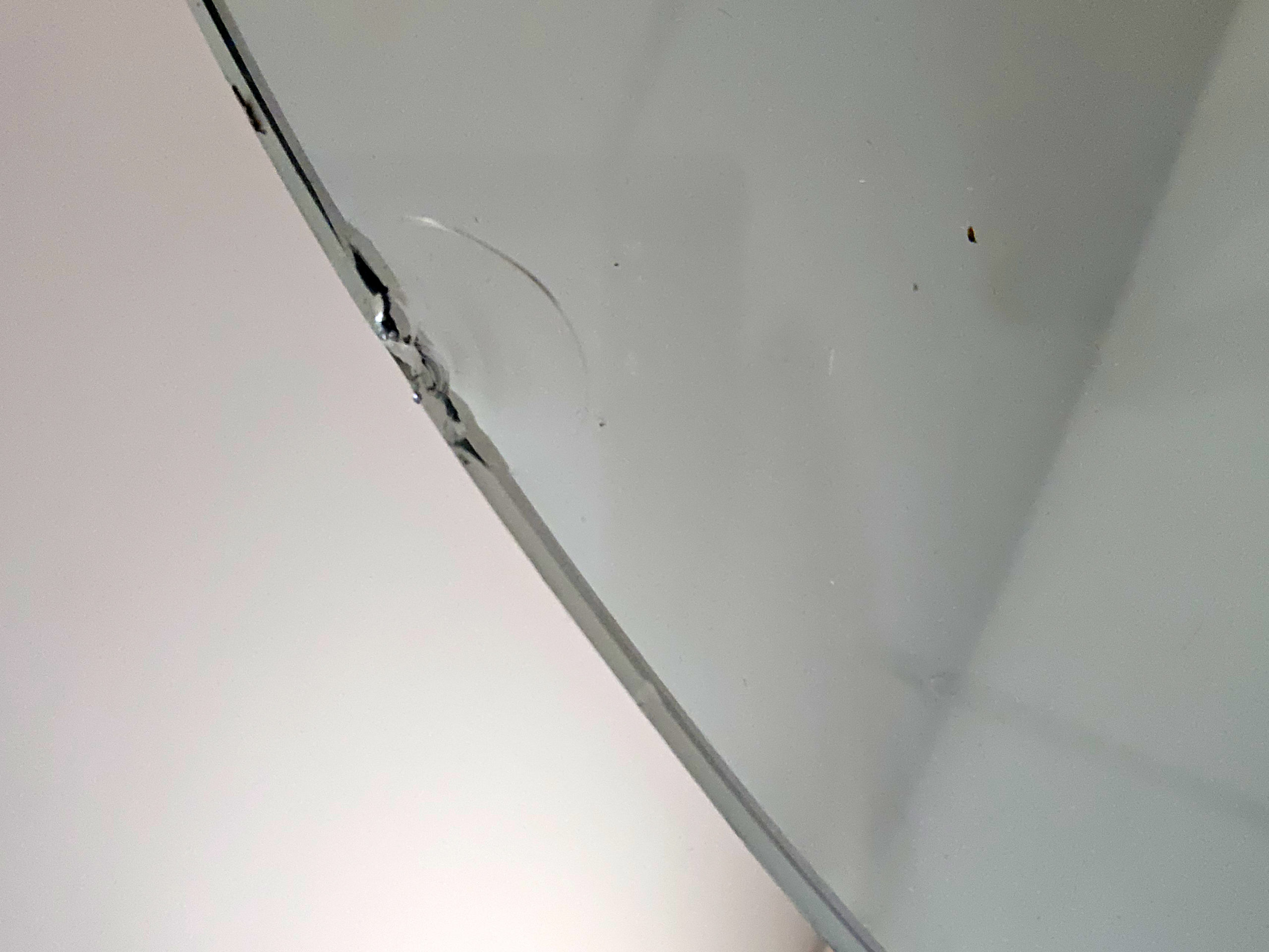 Présence d’éclats sur le bord du verre et de rayures d’usage.