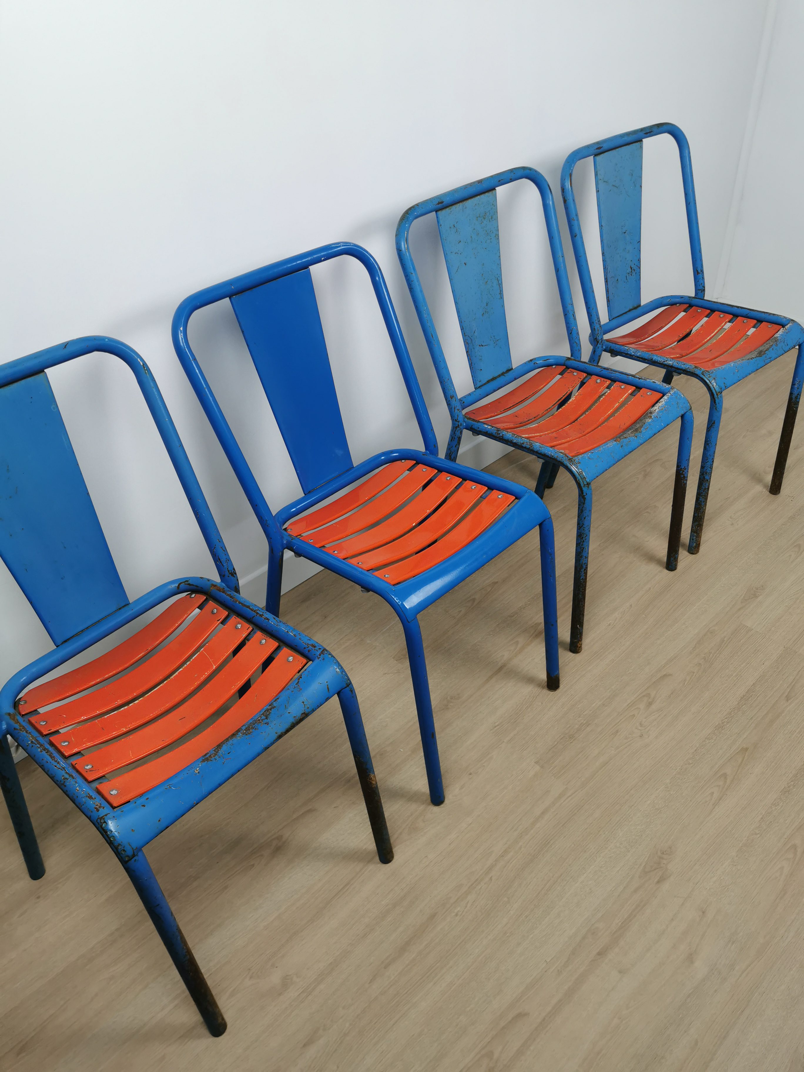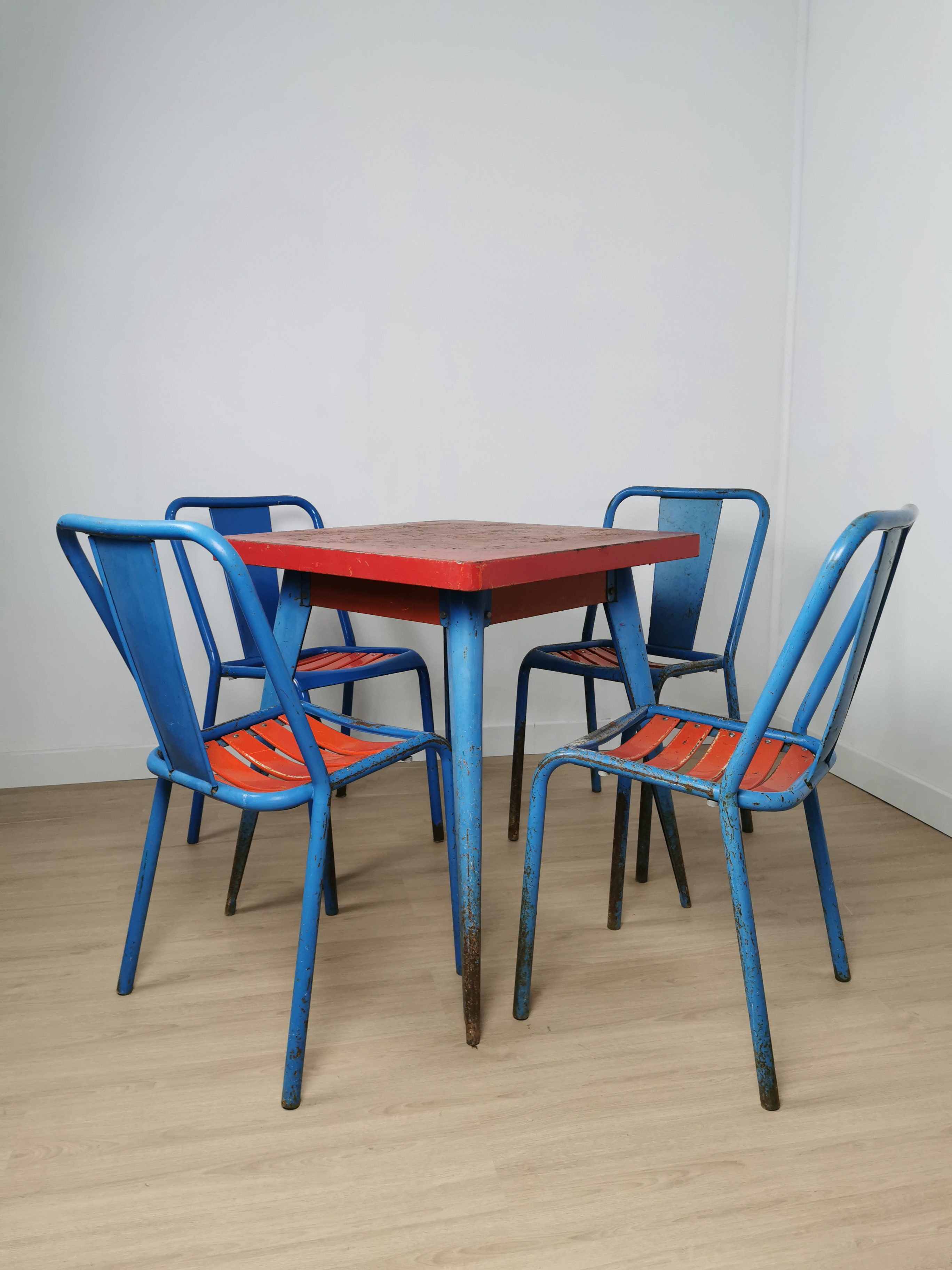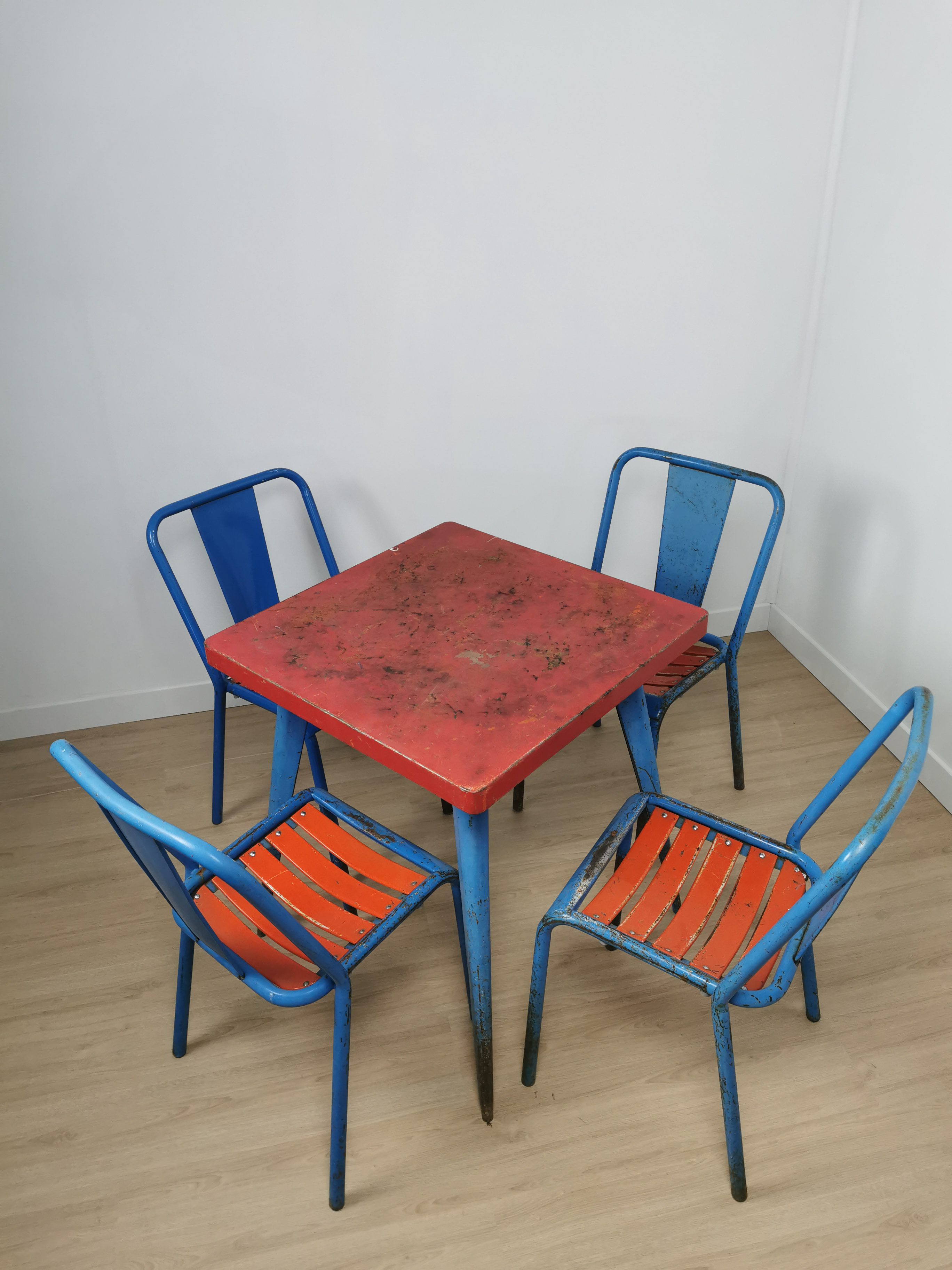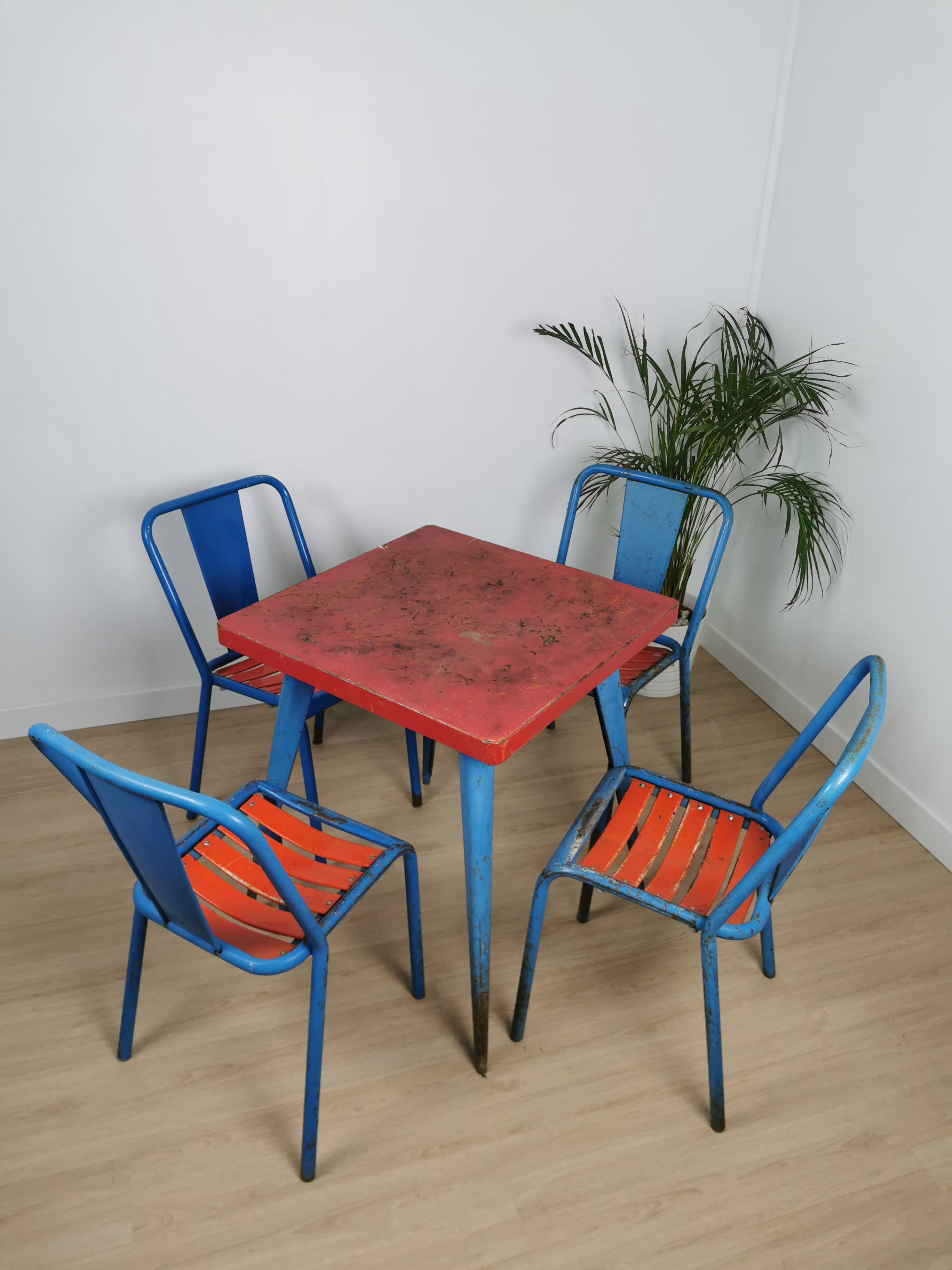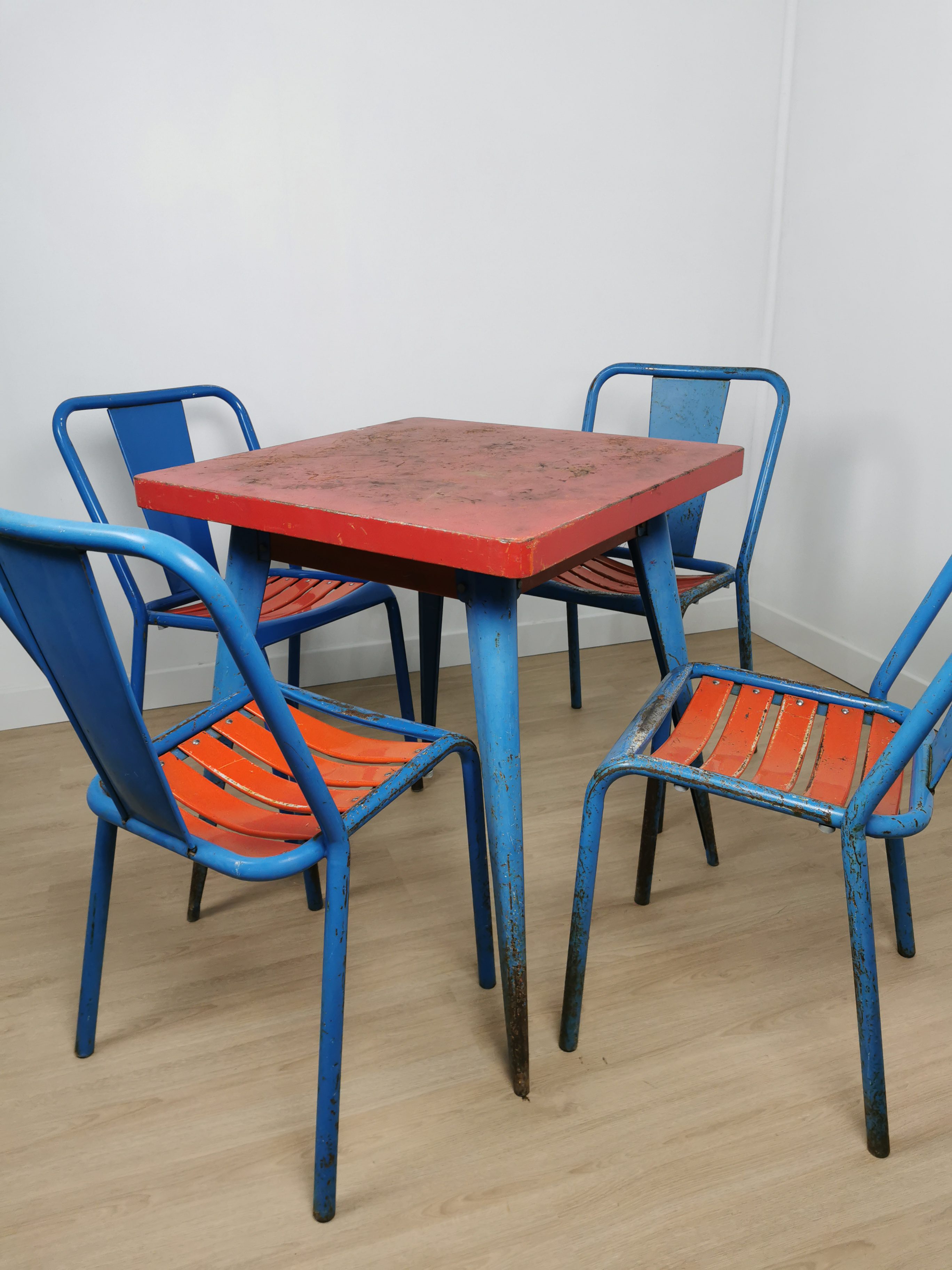 Produit venduEnsemble de quatre chaises TOLIX modèle T4 avec une table modèle 55.