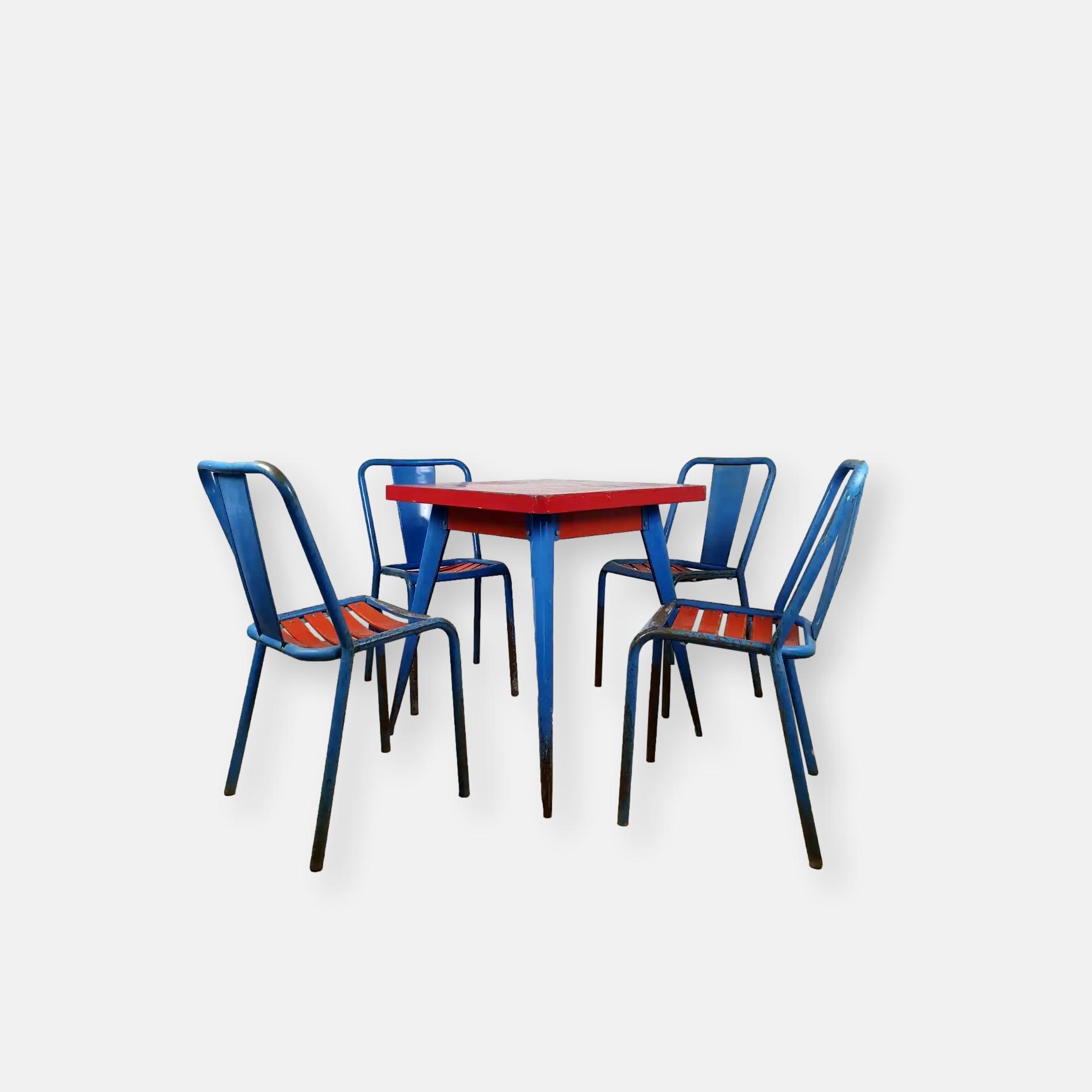 Produit venduEnsemble Tolix vintage avec 4 chaises TOLIX modèle T4 et une table modèle 55.