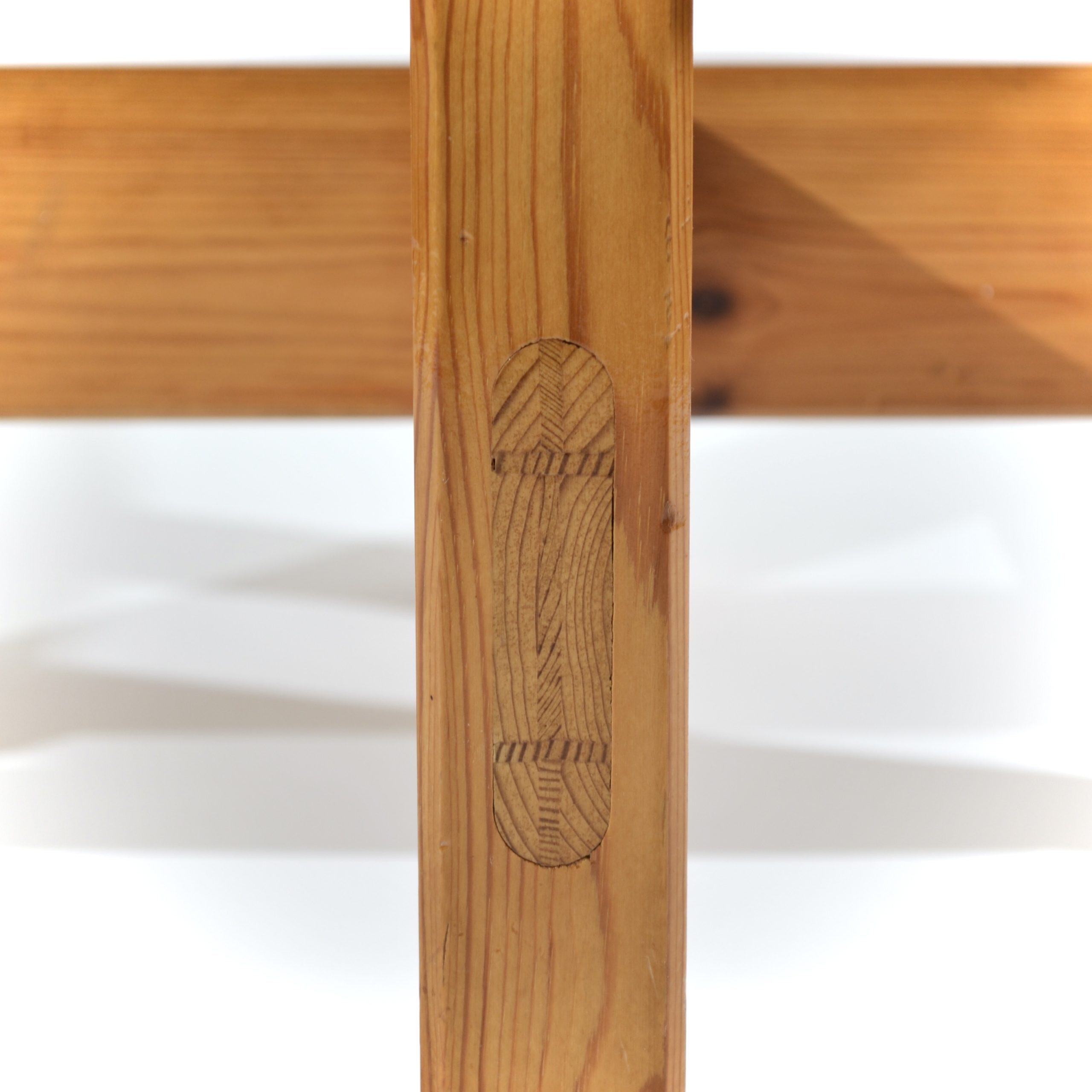 Produit venduUn grand et épais disque de bois, parfaitement emboité sur de larges tenons visibles en surface. Ce bel assemblage est également répété au niveau des pieds pour garantir une rigidité parfaite.