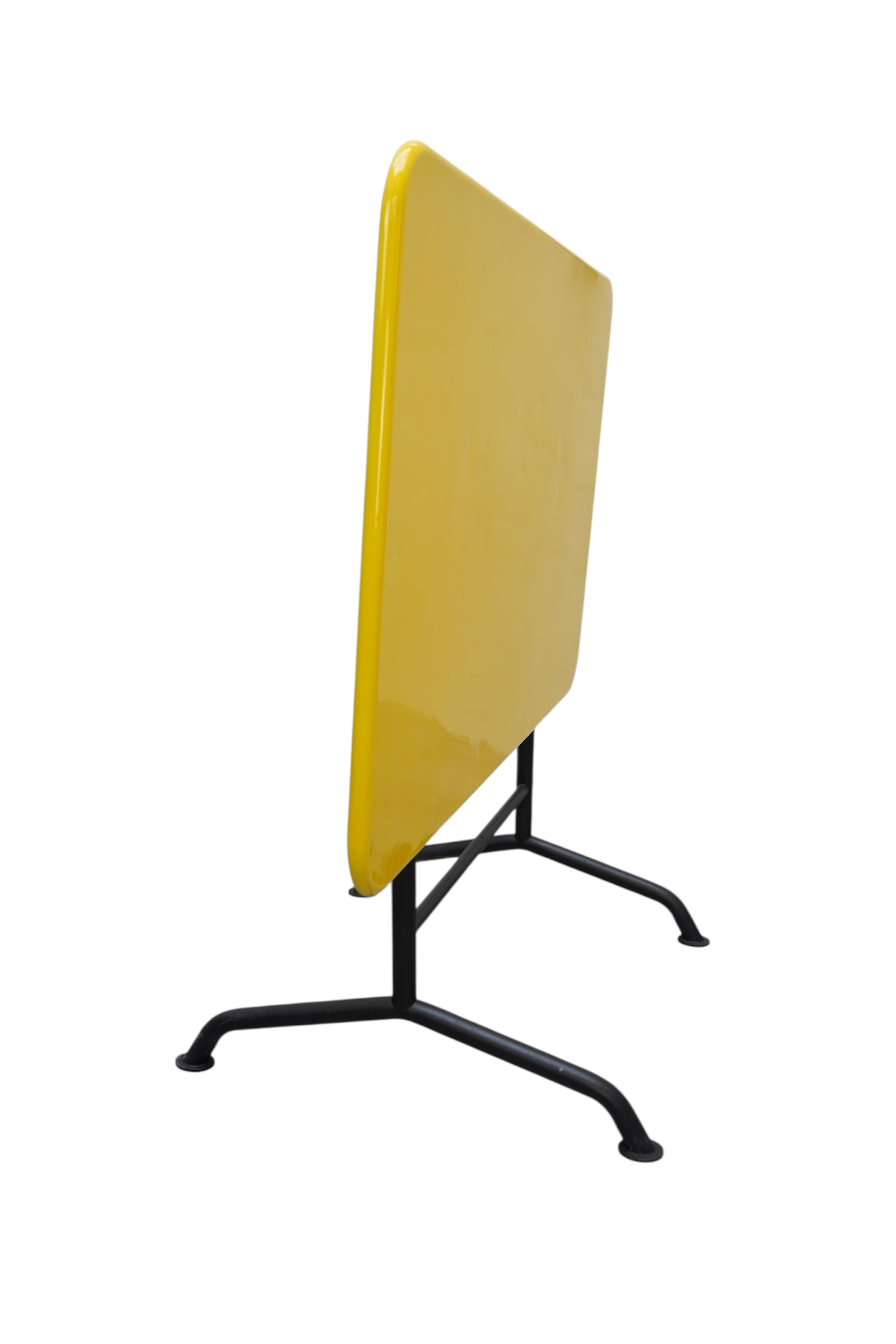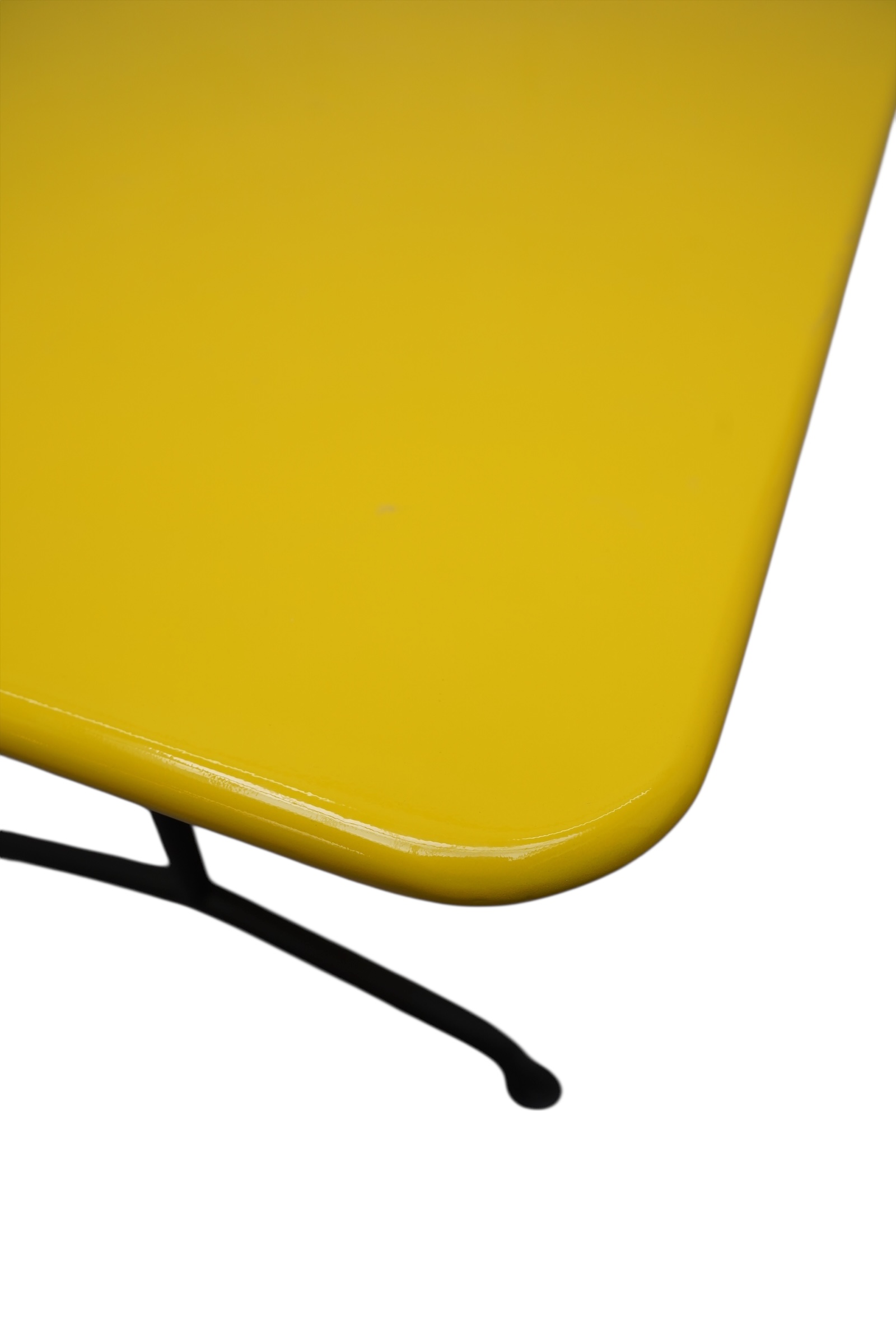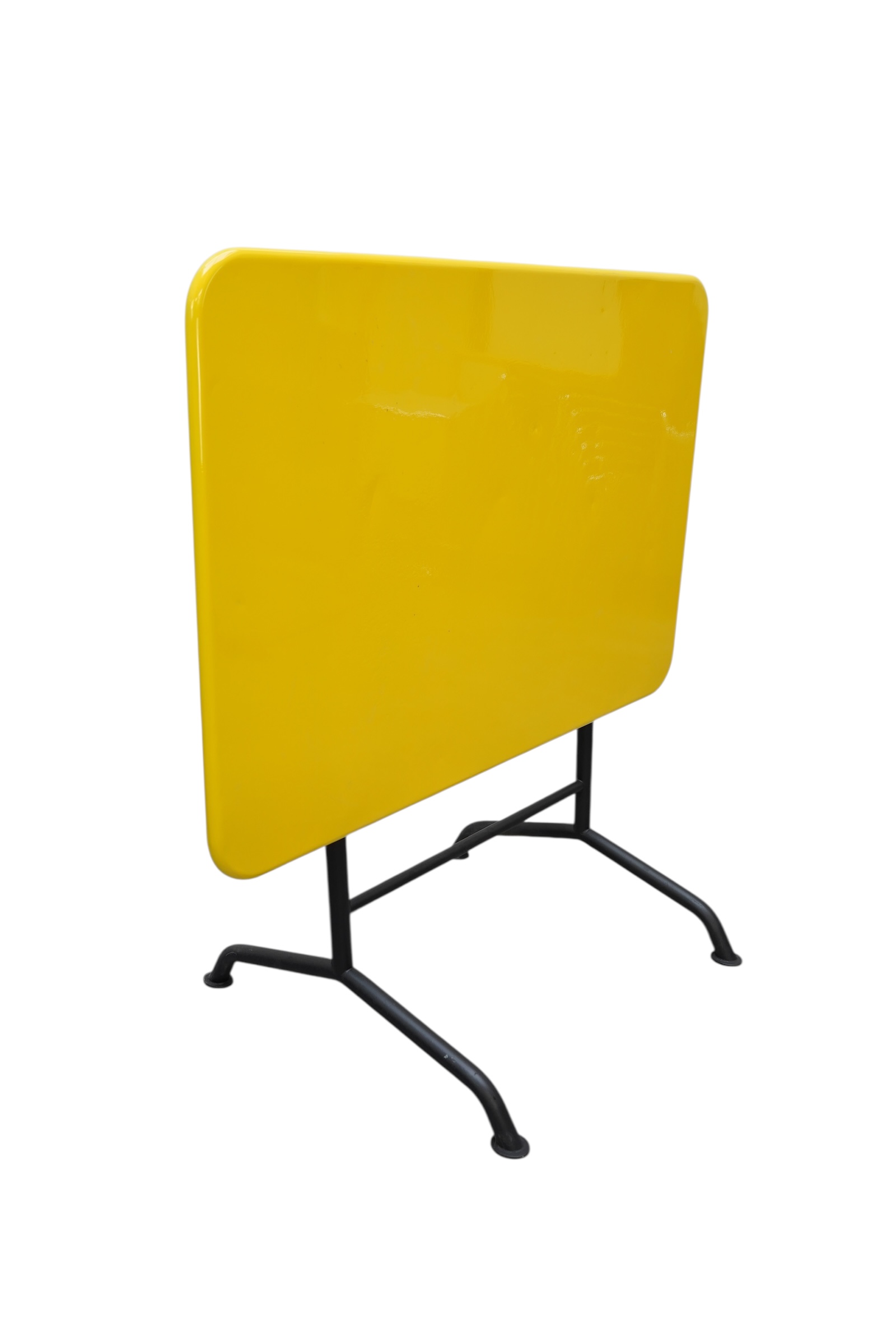Tables de jardin de la maison Suisse Bigla fabriquées dans les années 1950’s. Celles-ci sont munies d’un plateau en tôle zingué soit de couleur jaune, récemment restaurées par un professionnel. Piétement tubulaire galvanisé. Bigla est une entreprise suisse historique (depuis 1904) basée à Biglen (BE), issue de l’usine de meubles en fer Spichiger & Cie. La qualité « Swiss made » et un engagement envers la durabilité et l’énergie renouvelable.