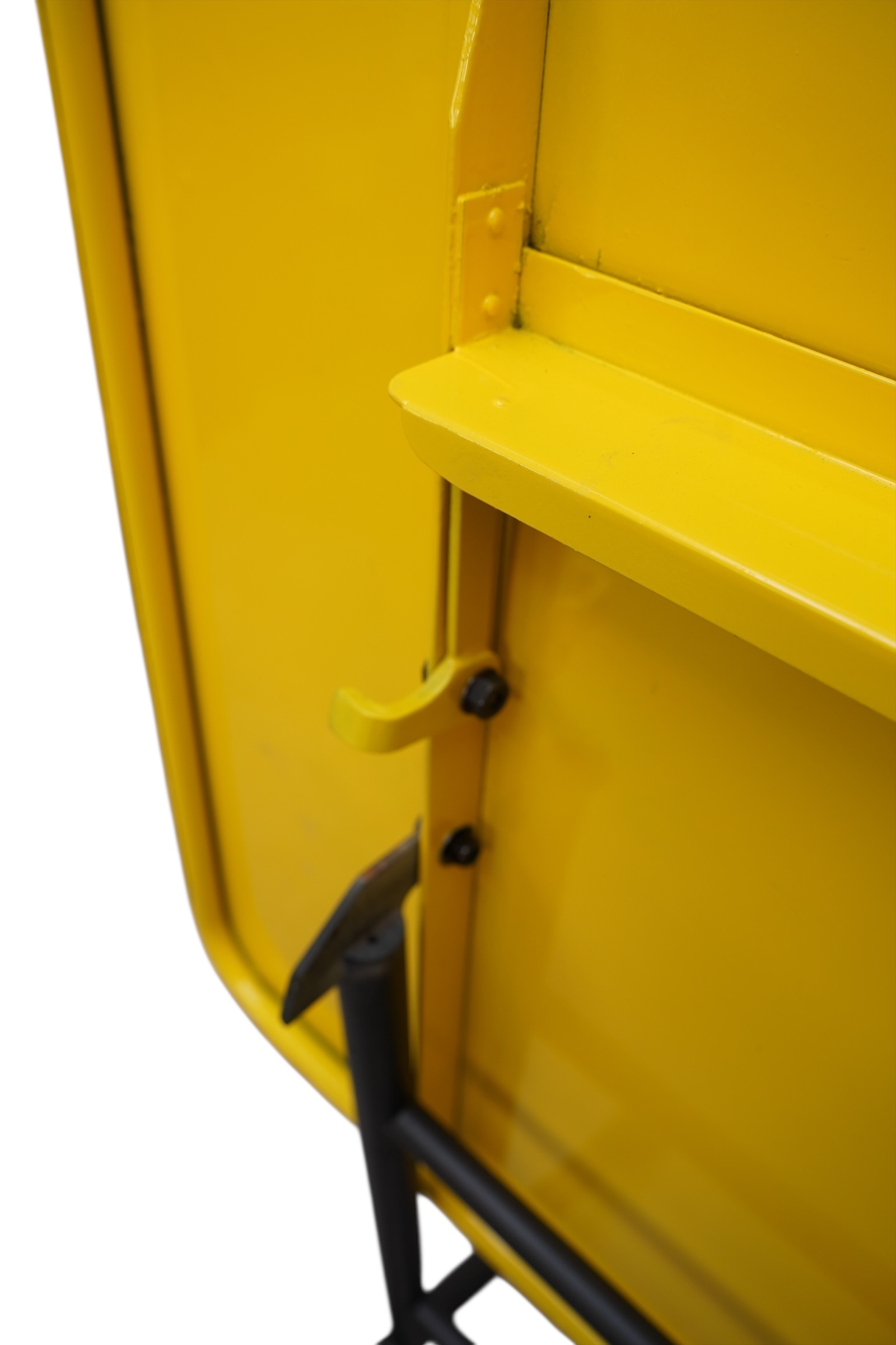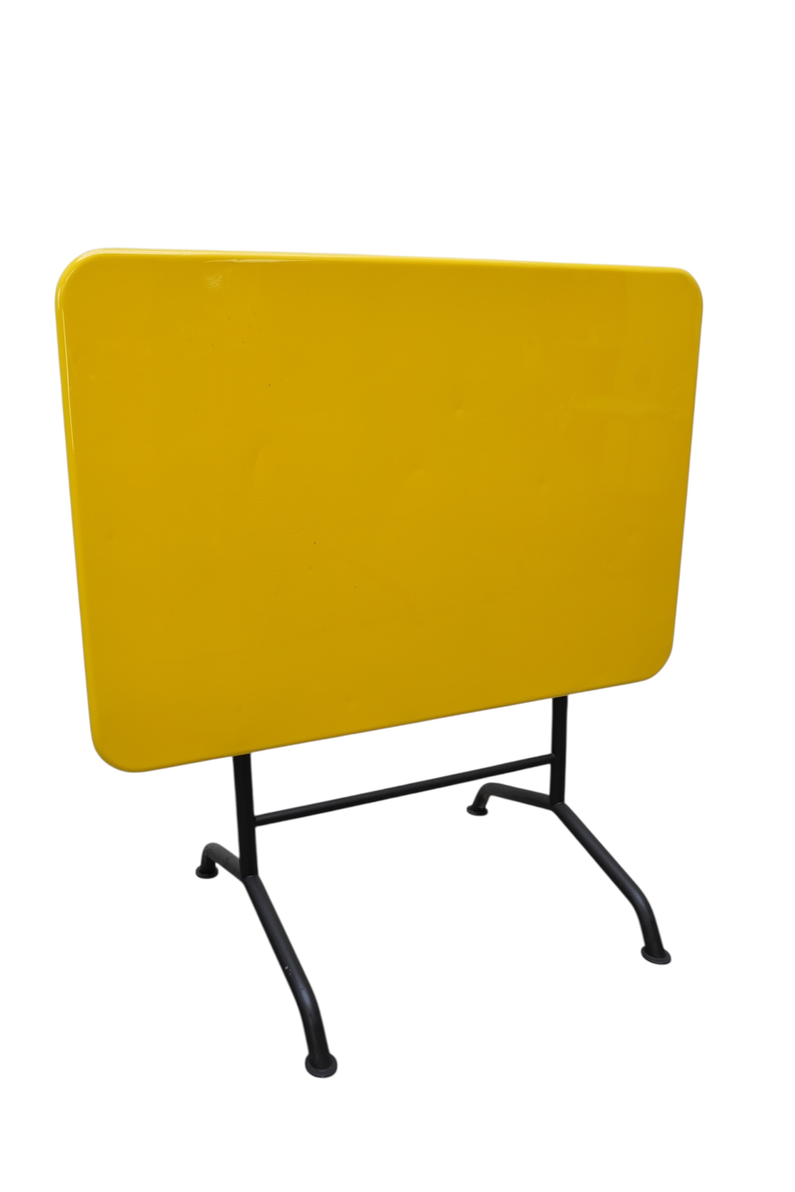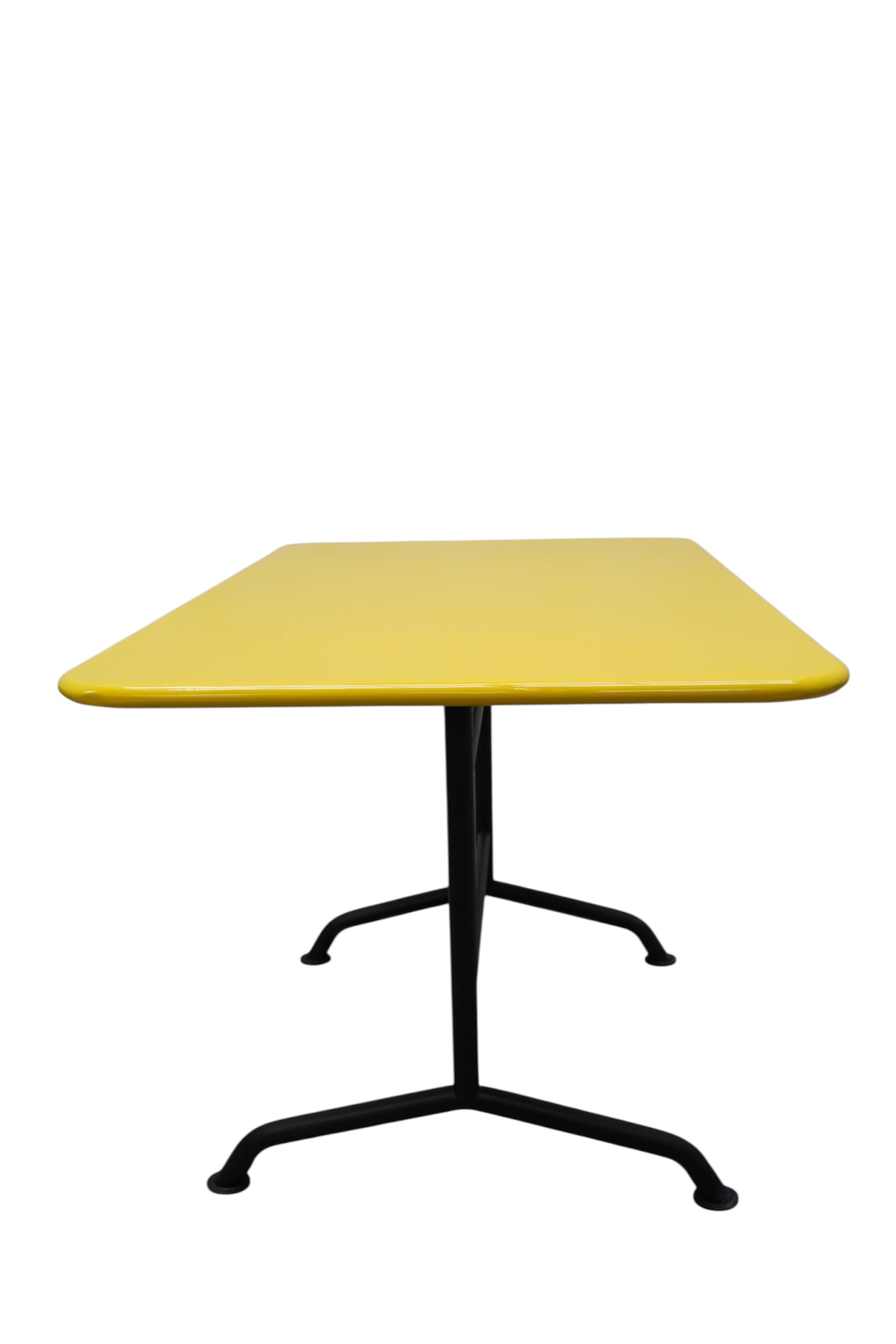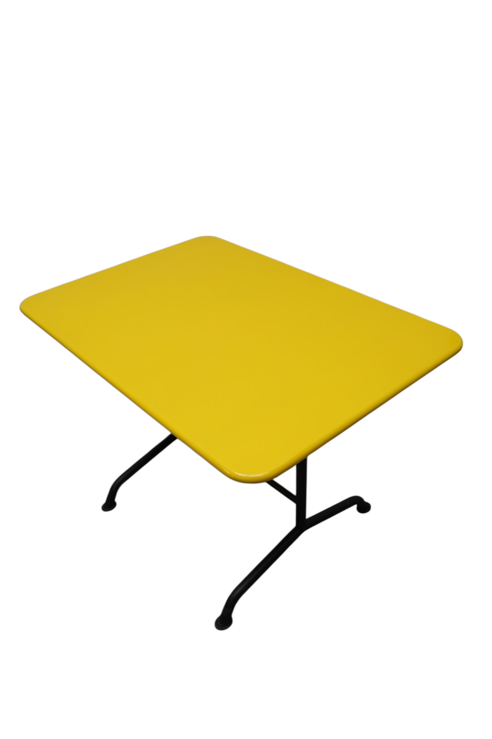 Tables de jardin de la maison Suisse Bigla fabriquées dans les années 1950’s. Celles-ci sont munies d’un plateau en tôle zingué soit de couleur jaune, récemment restaurées par un professionnel. Piétement tubulaire galvanisé. Bigla est une entreprise suisse historique (depuis 1904) basée à Biglen (BE), issue de l’usine de meubles en fer Spichiger & Cie. La qualité « Swiss made » et un engagement envers la durabilité et l’énergie renouvelable.