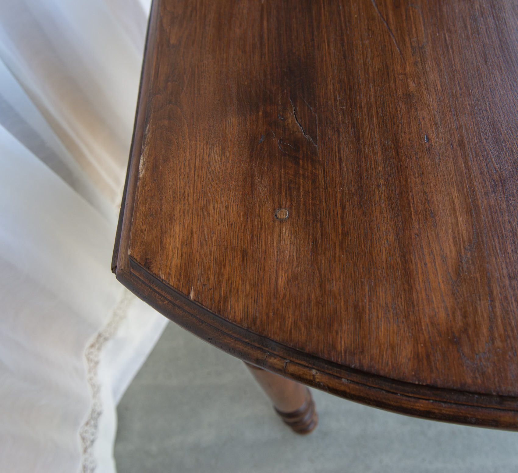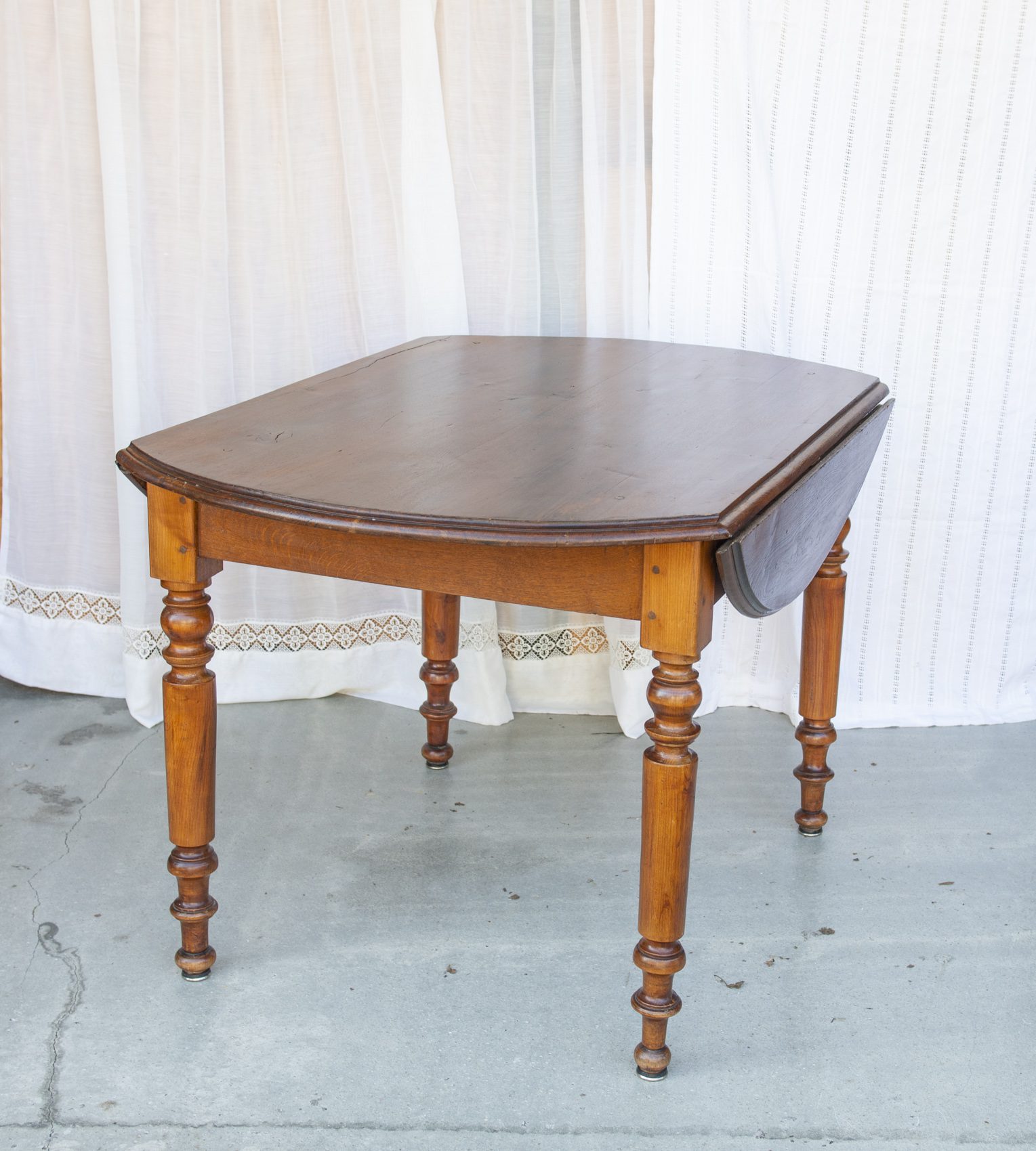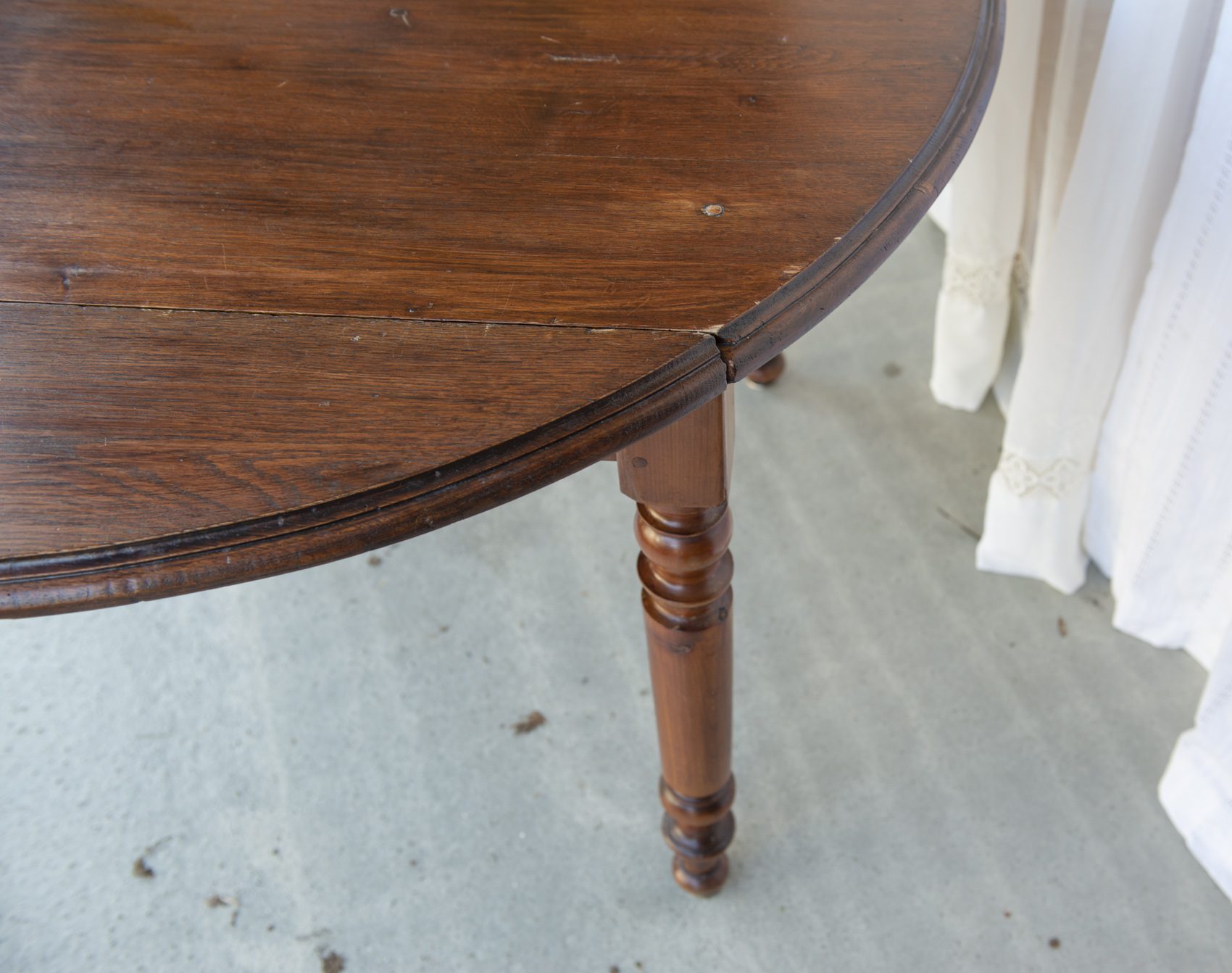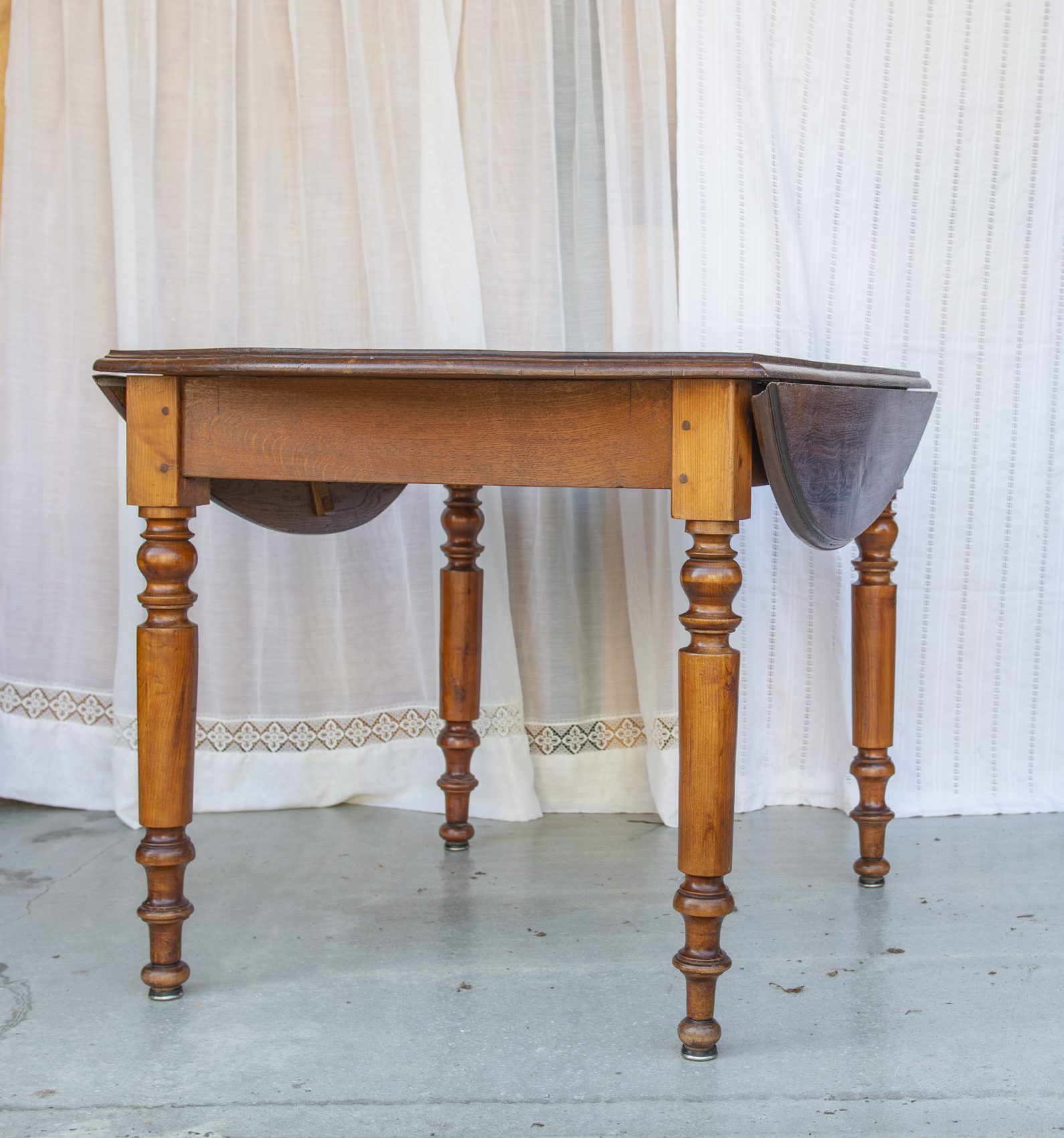 Produit venduTable ronde en bois, pliable des deux côtés.
