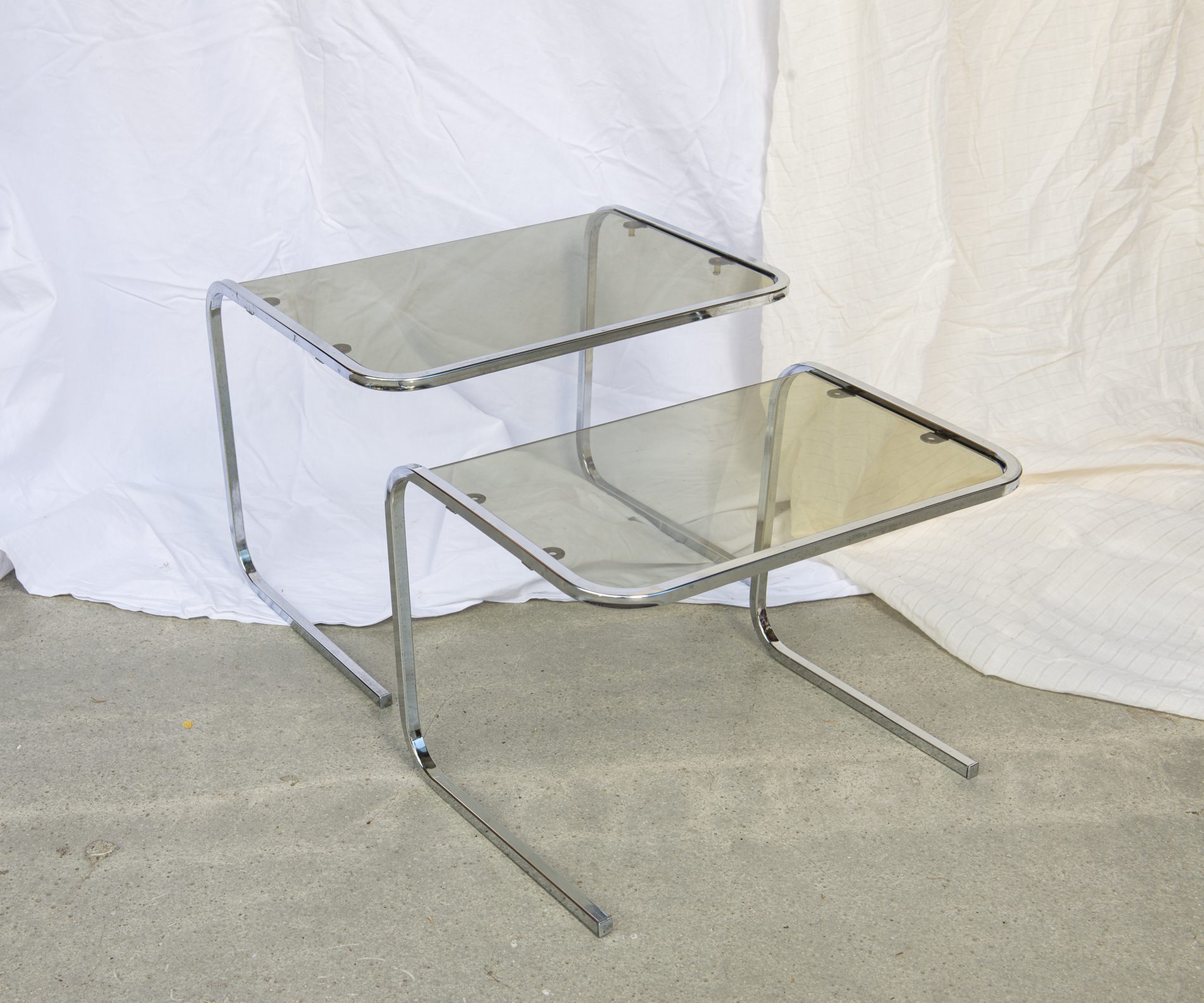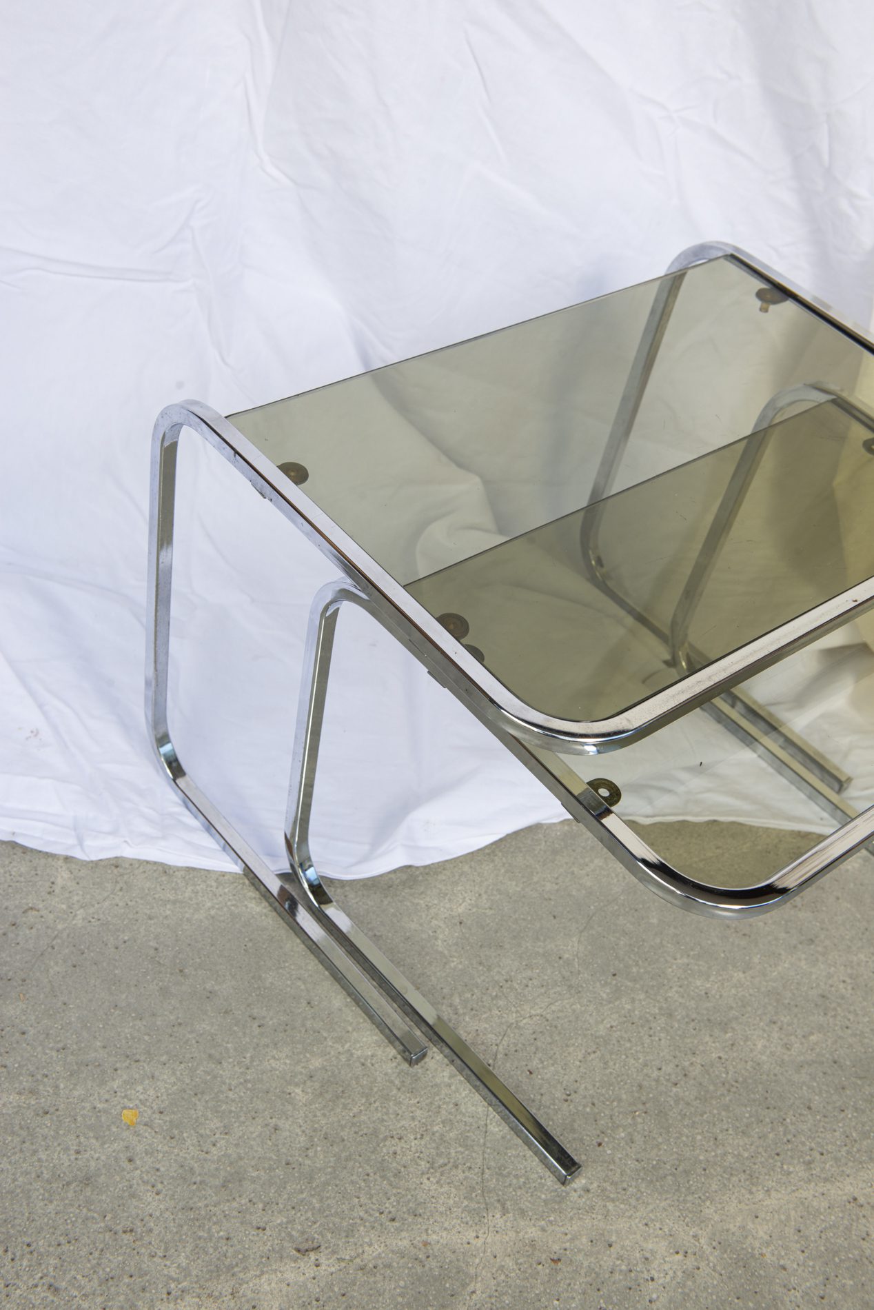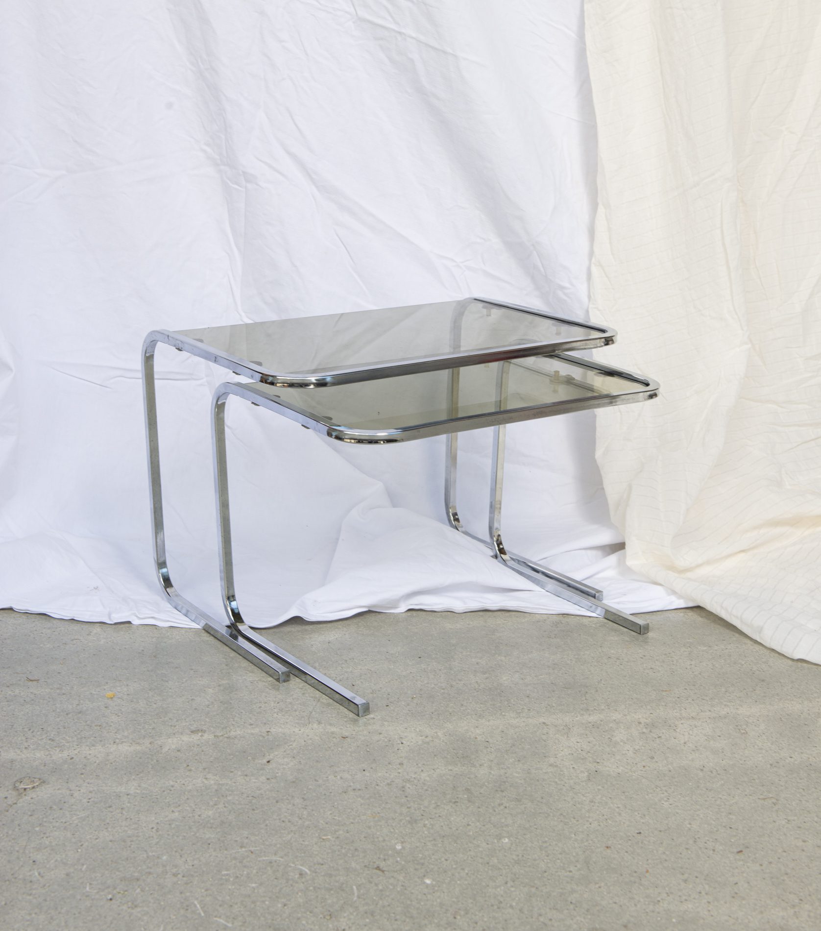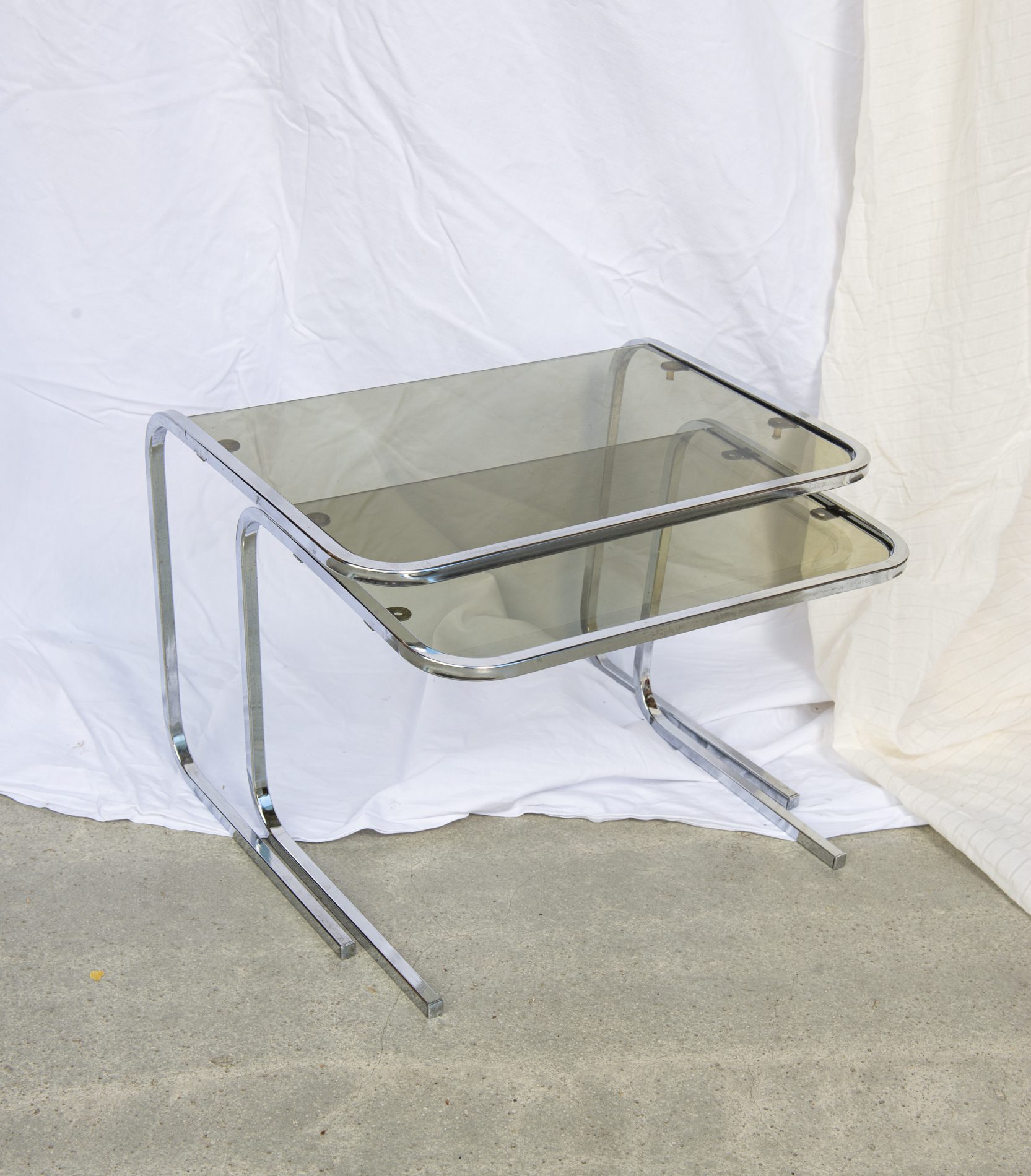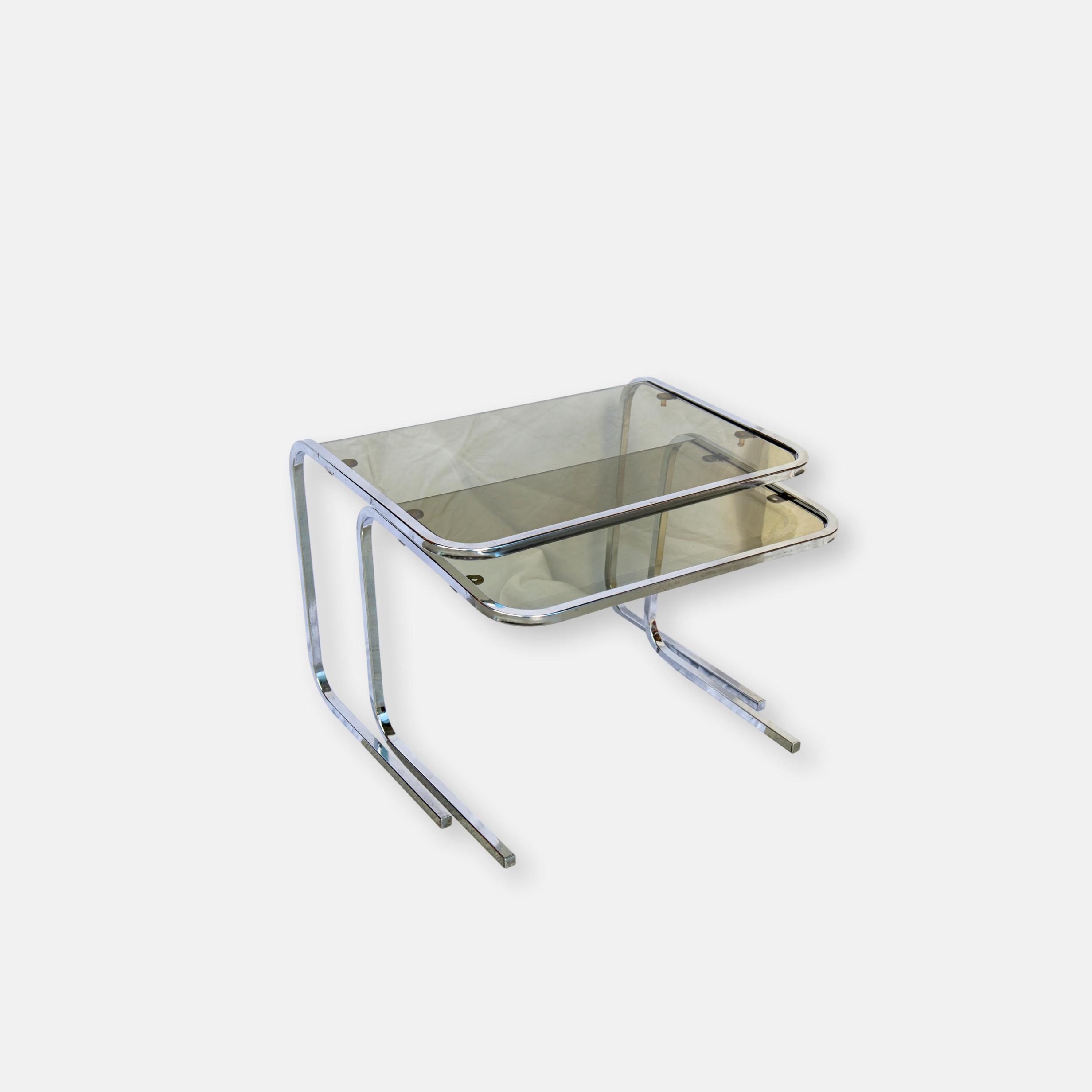 Produit venduTables gigognes en verre fumé, années 70.