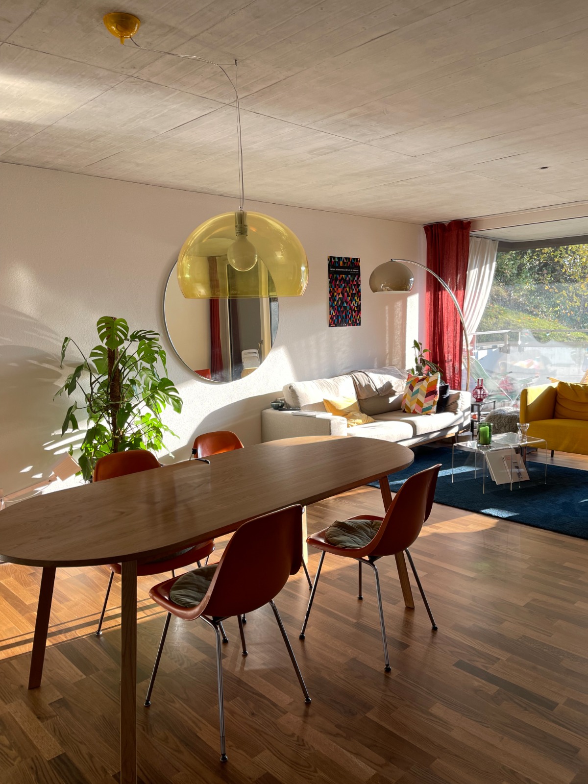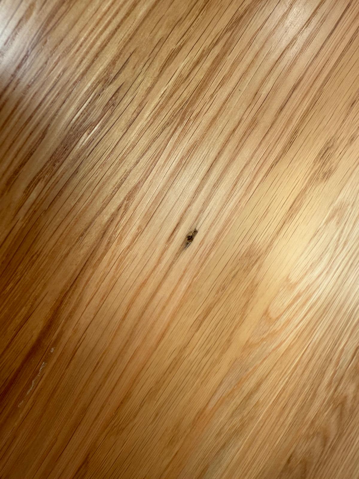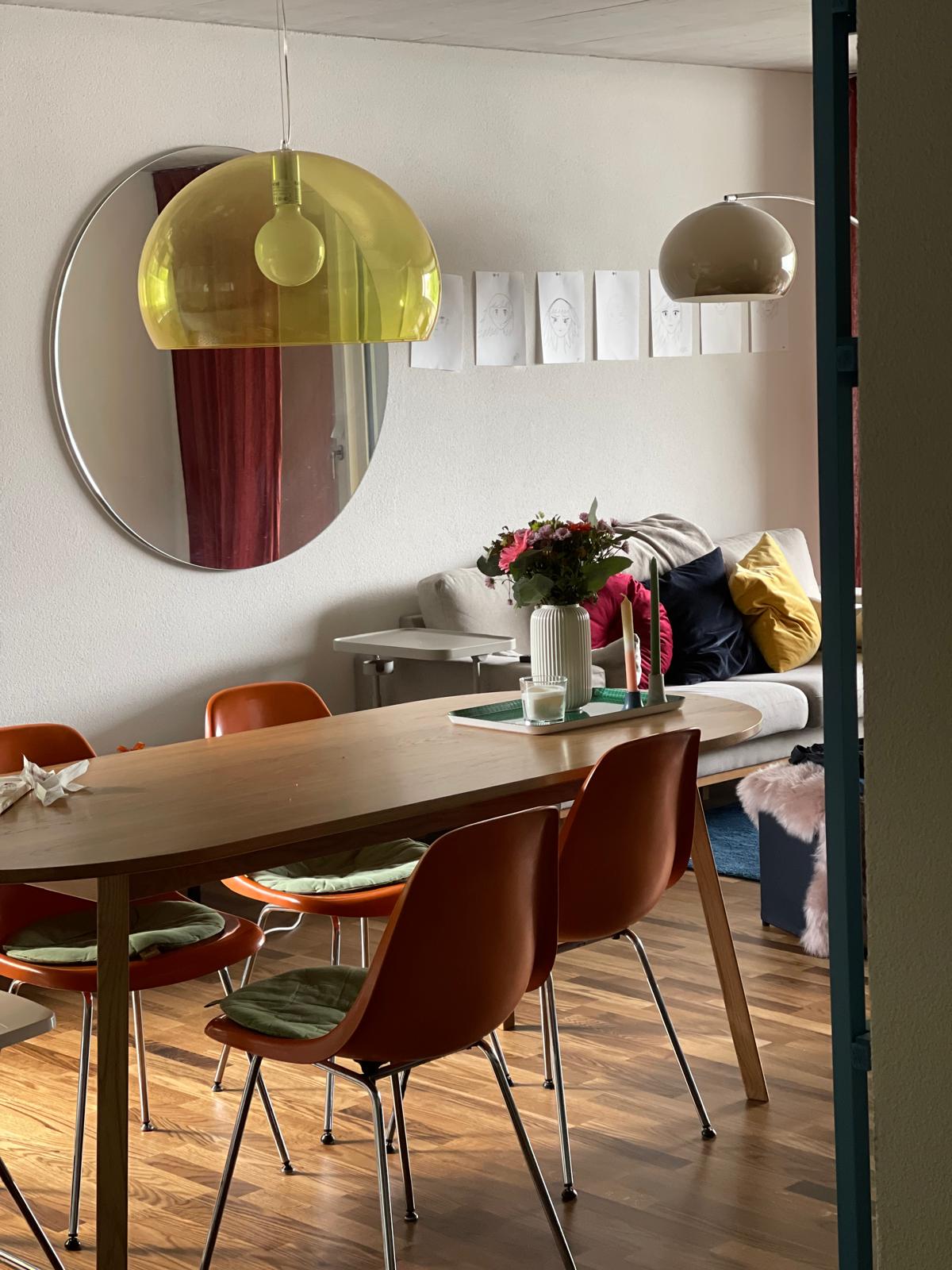 Très belle table à manger aux angles arrondis, idéale pour 6 personnes.