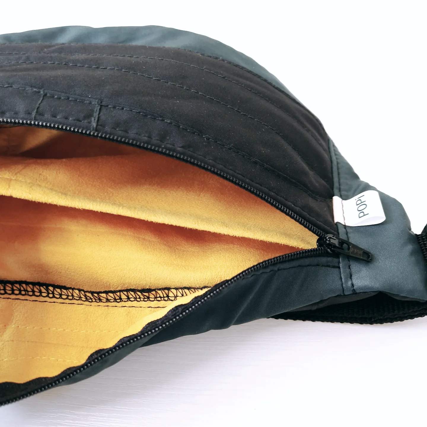 Son côté pratique est sa sangle qui se règle et peut atteindre casi un mètre de circonférence. Eh ouais même après un monstre gueuleton, tu pourras encore l’accrocher à ta taille ou simplement la porter en bandoulière.