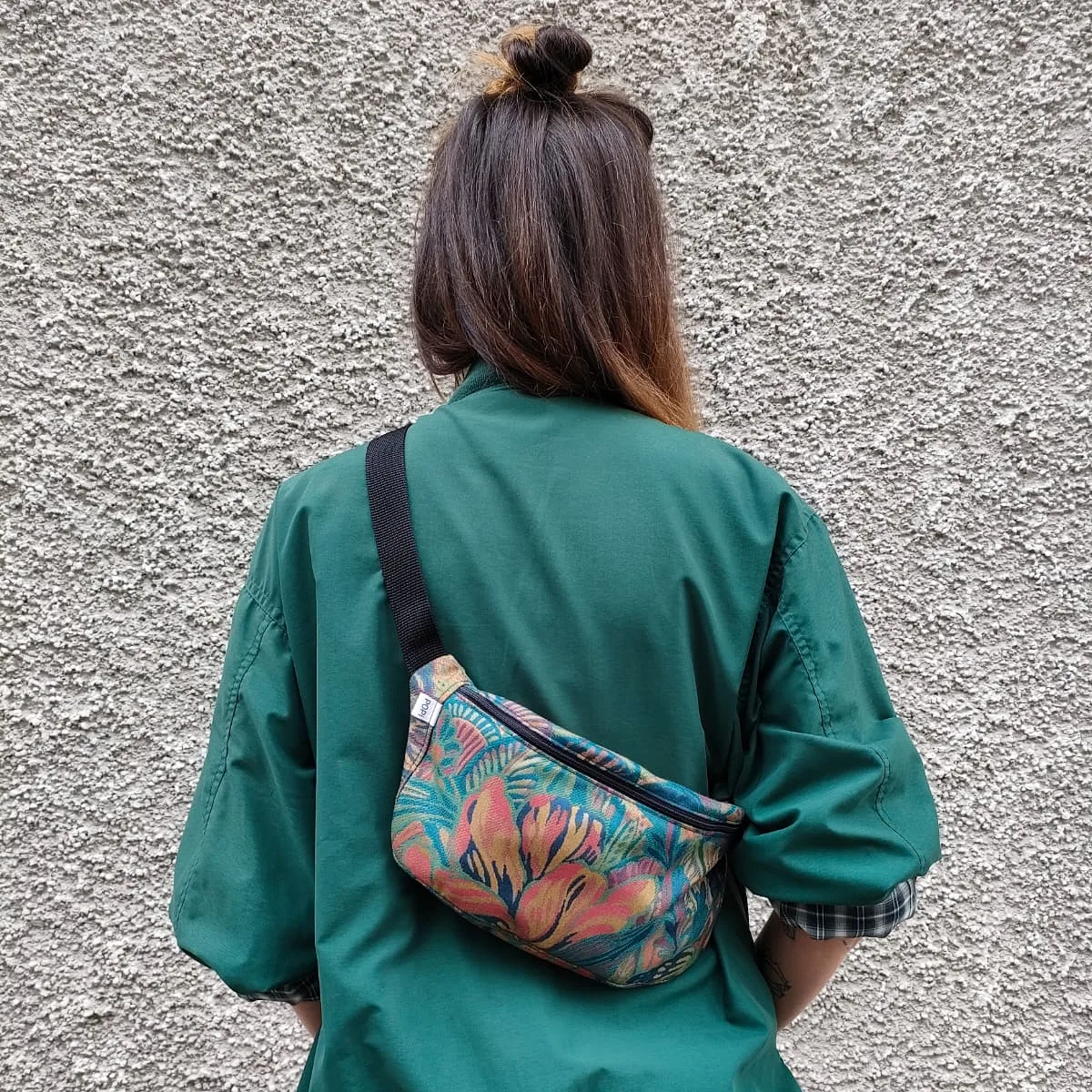 Sac banane – vert grande fleur