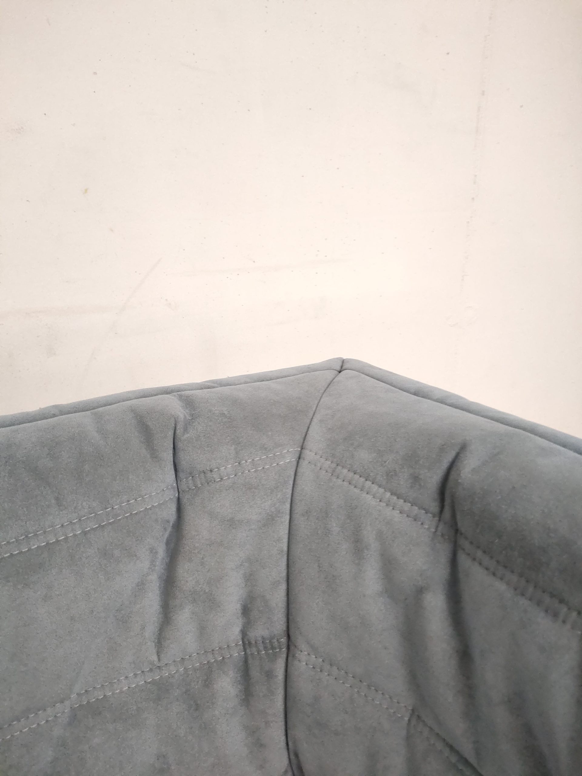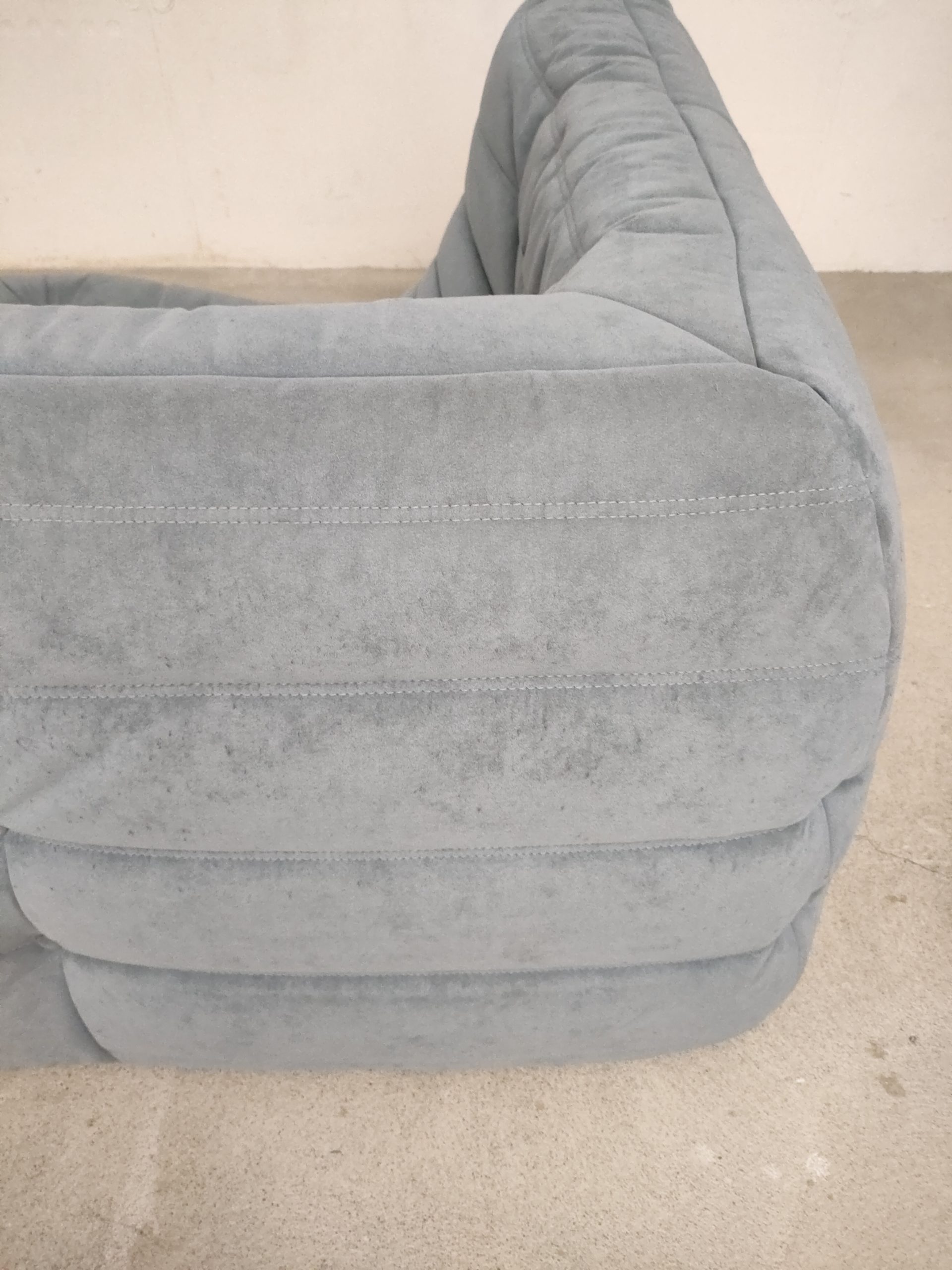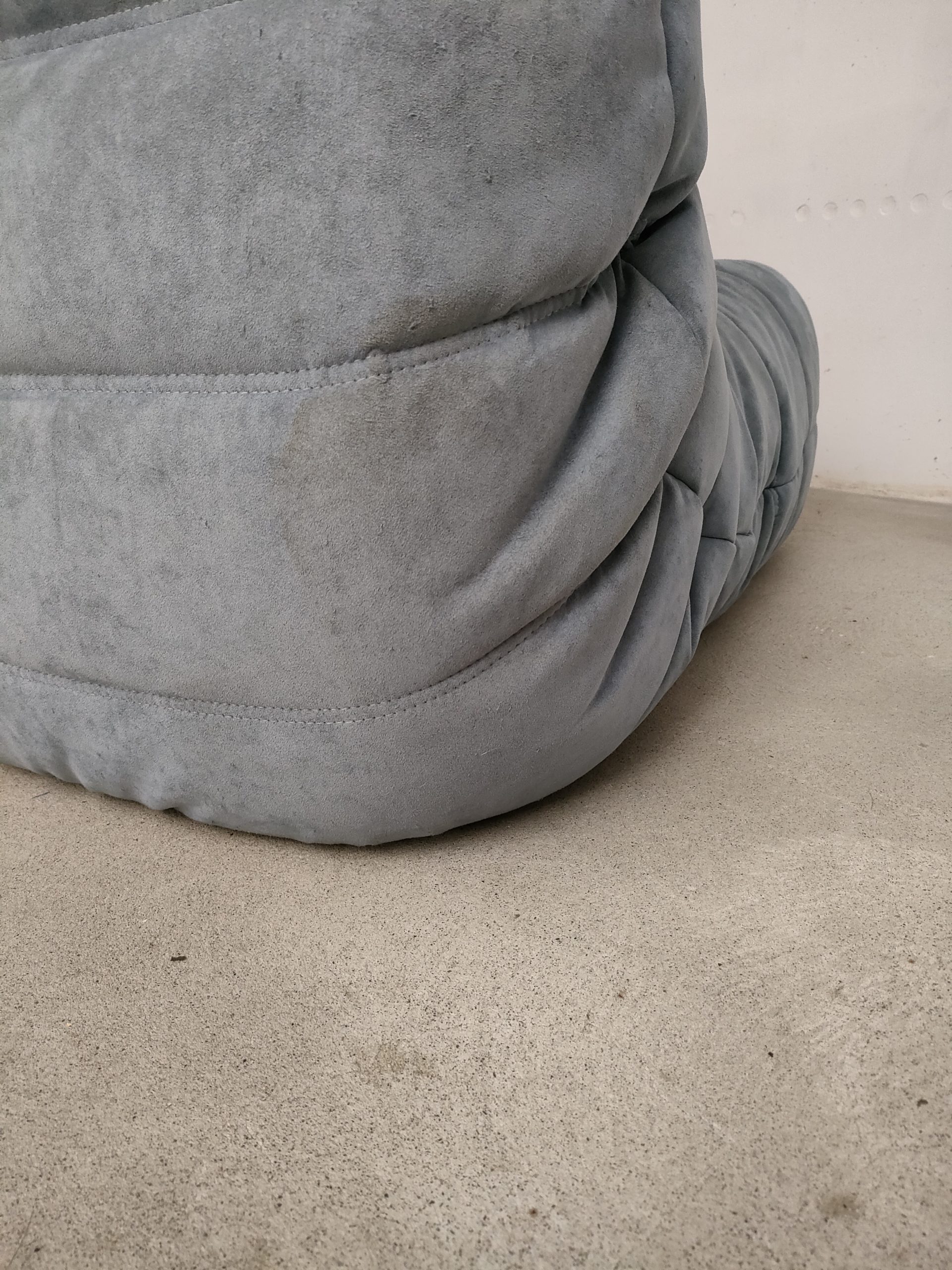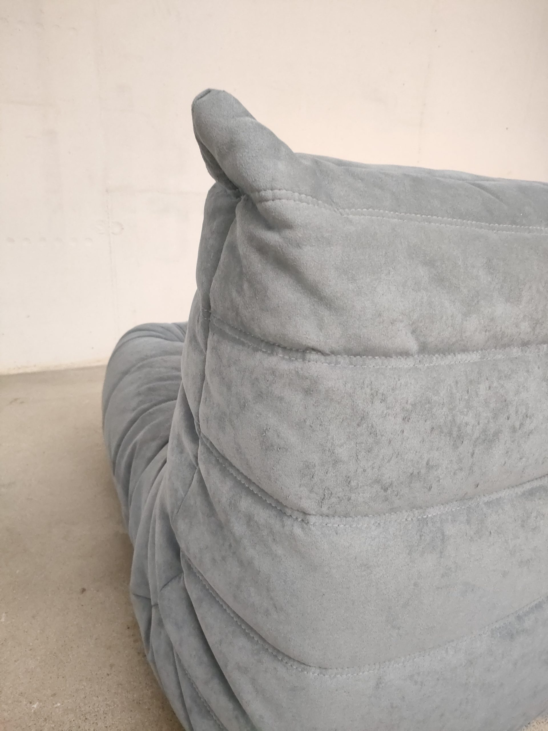 Produit venduAngle Togo dessiné par Michel Ducaroy et produit par Ligne Roset en alcantara de couleur bleu/gris. Signes d’usure sur l’alcantara : des bouloches, une trace (sur un côté au dos – plus visible sur la photo qu’en vrai) et des griffes de chats principalement au dos (ça fait des petites pointes) (voir photos). Autrement, pas de déchirures et la mousse est en bon état. Pas d’odeurs.