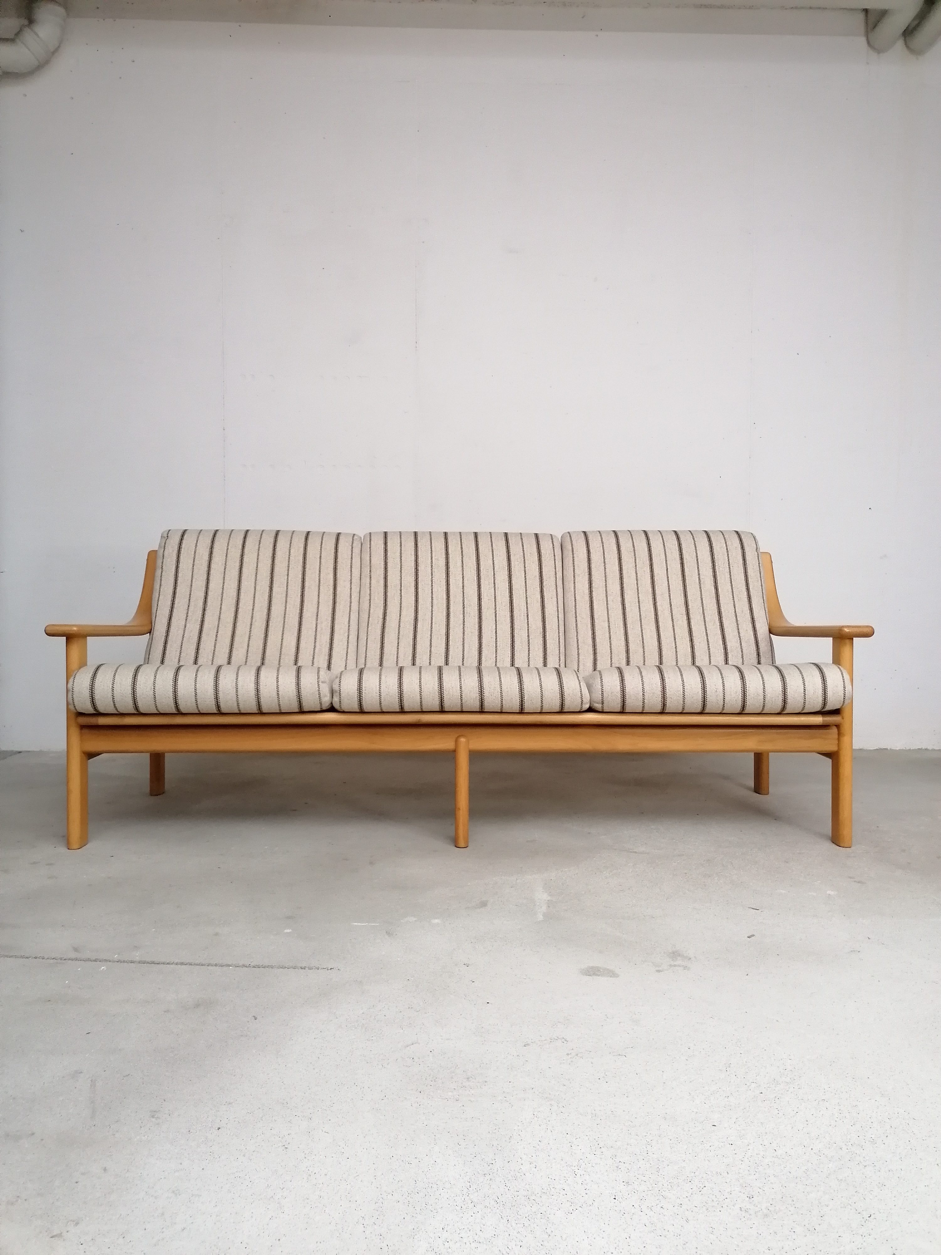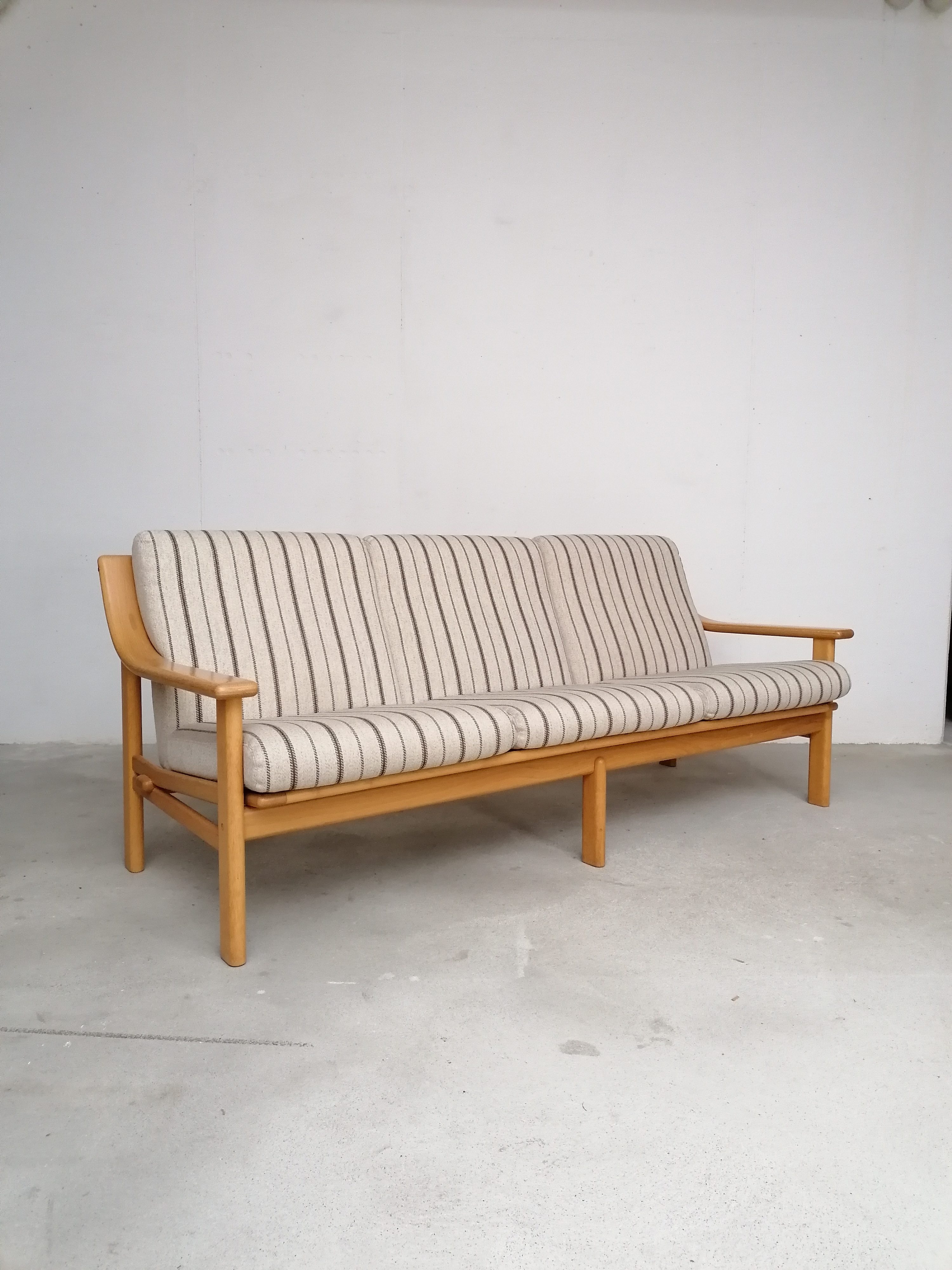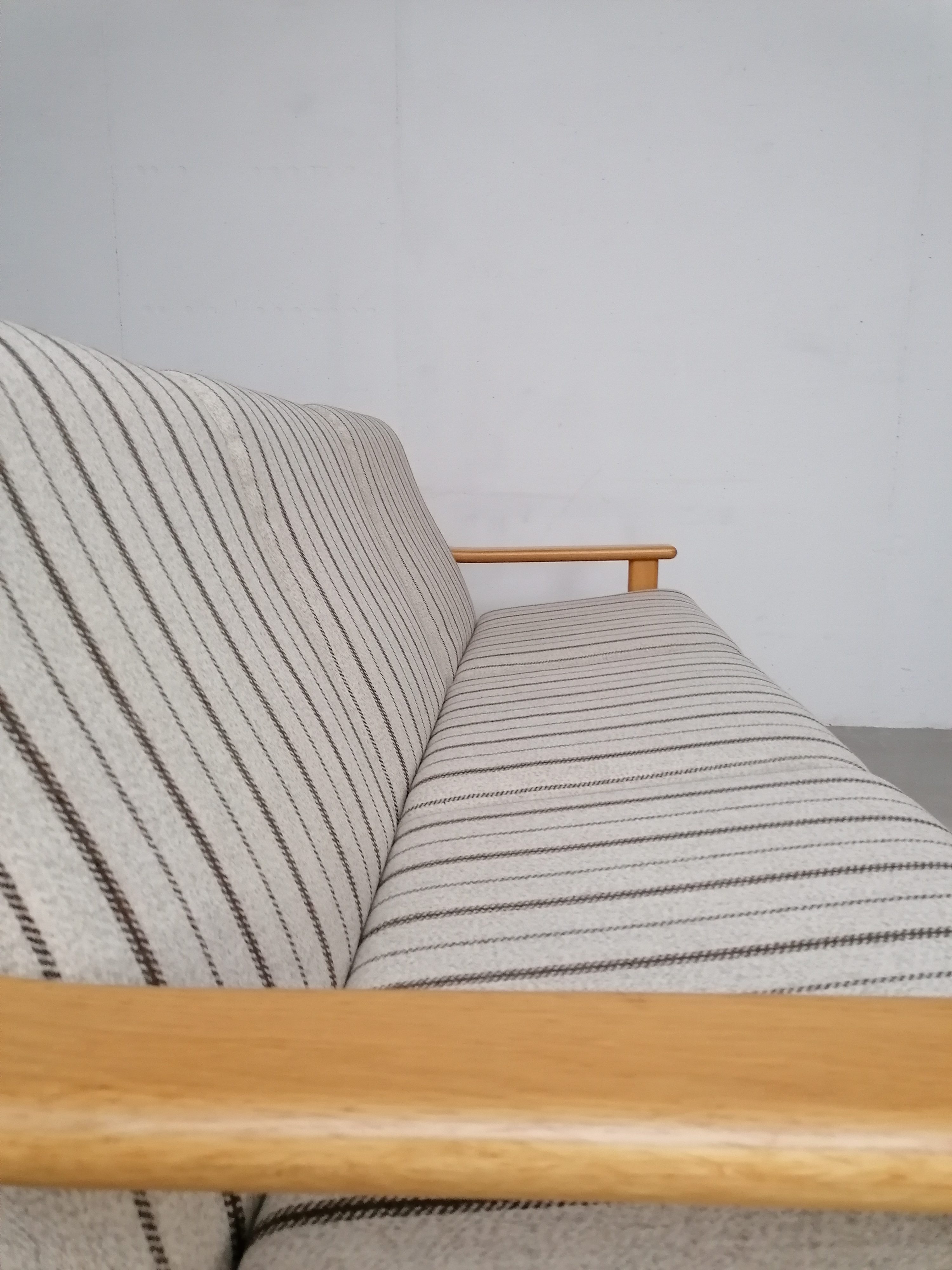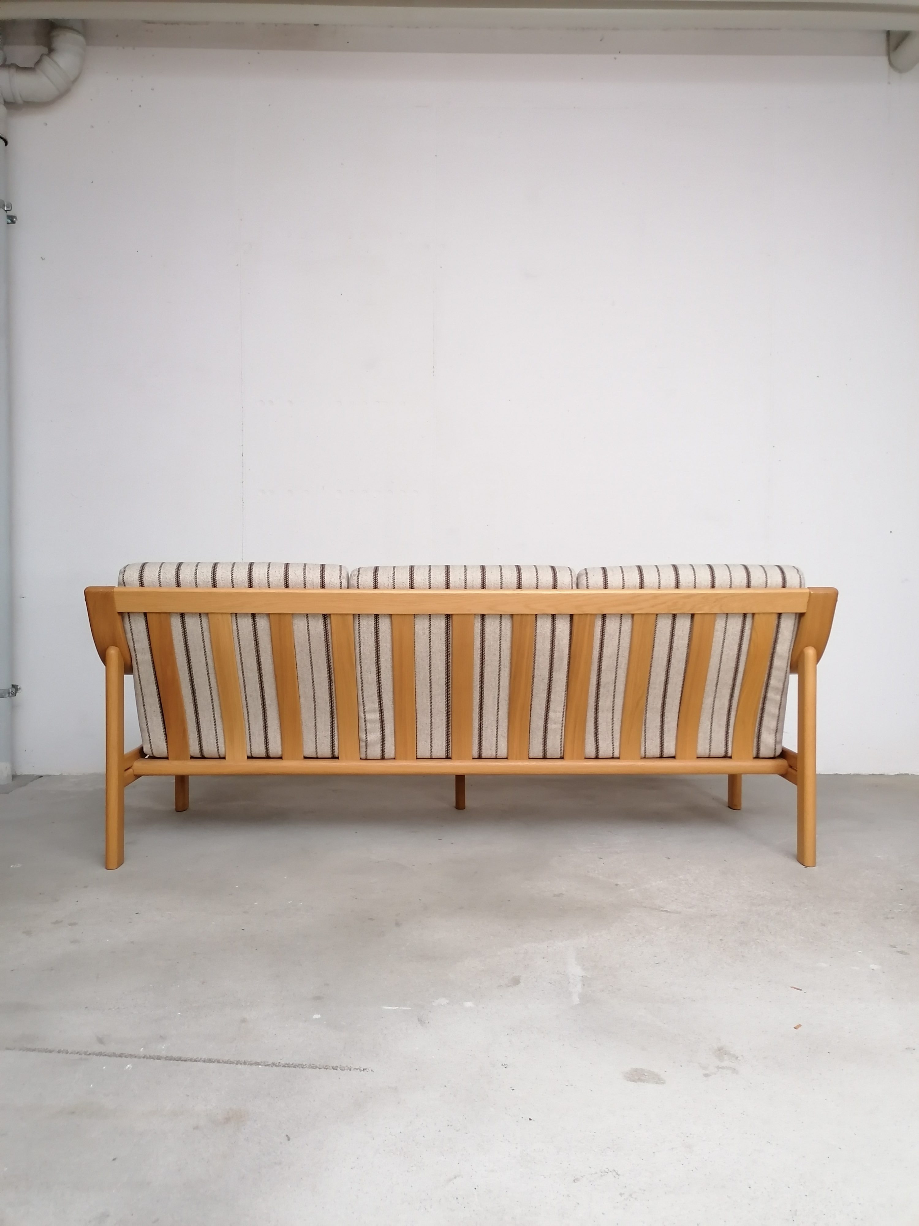 Canapé 3 places vintage scandinave. Produit par le fabricant danois CFC Silkeborg. Structure en bois, mousse et tissu en très bon état. Le tissu est déhoussable. Très confortable. Hauteur de l’assise: 44 cm.