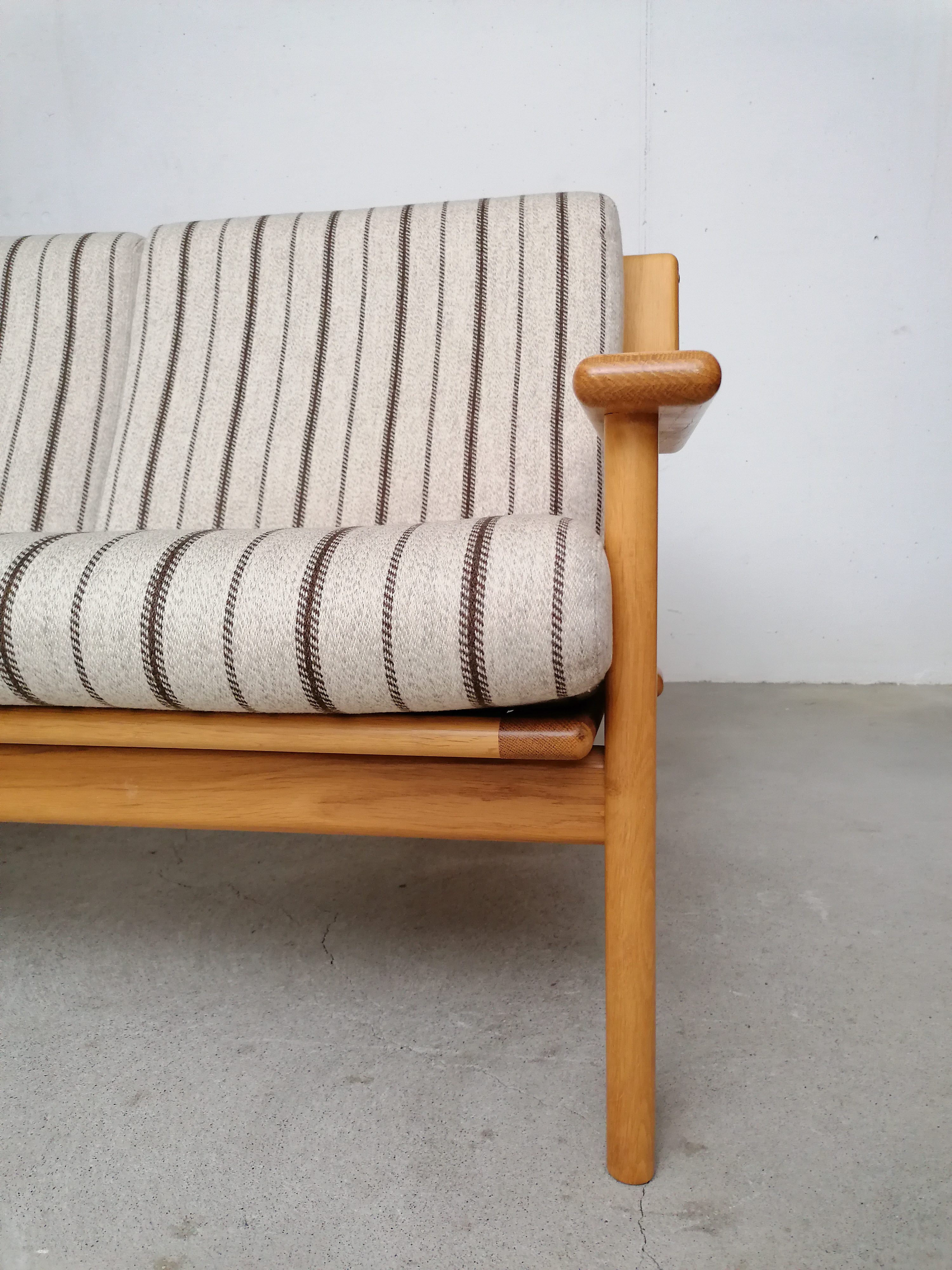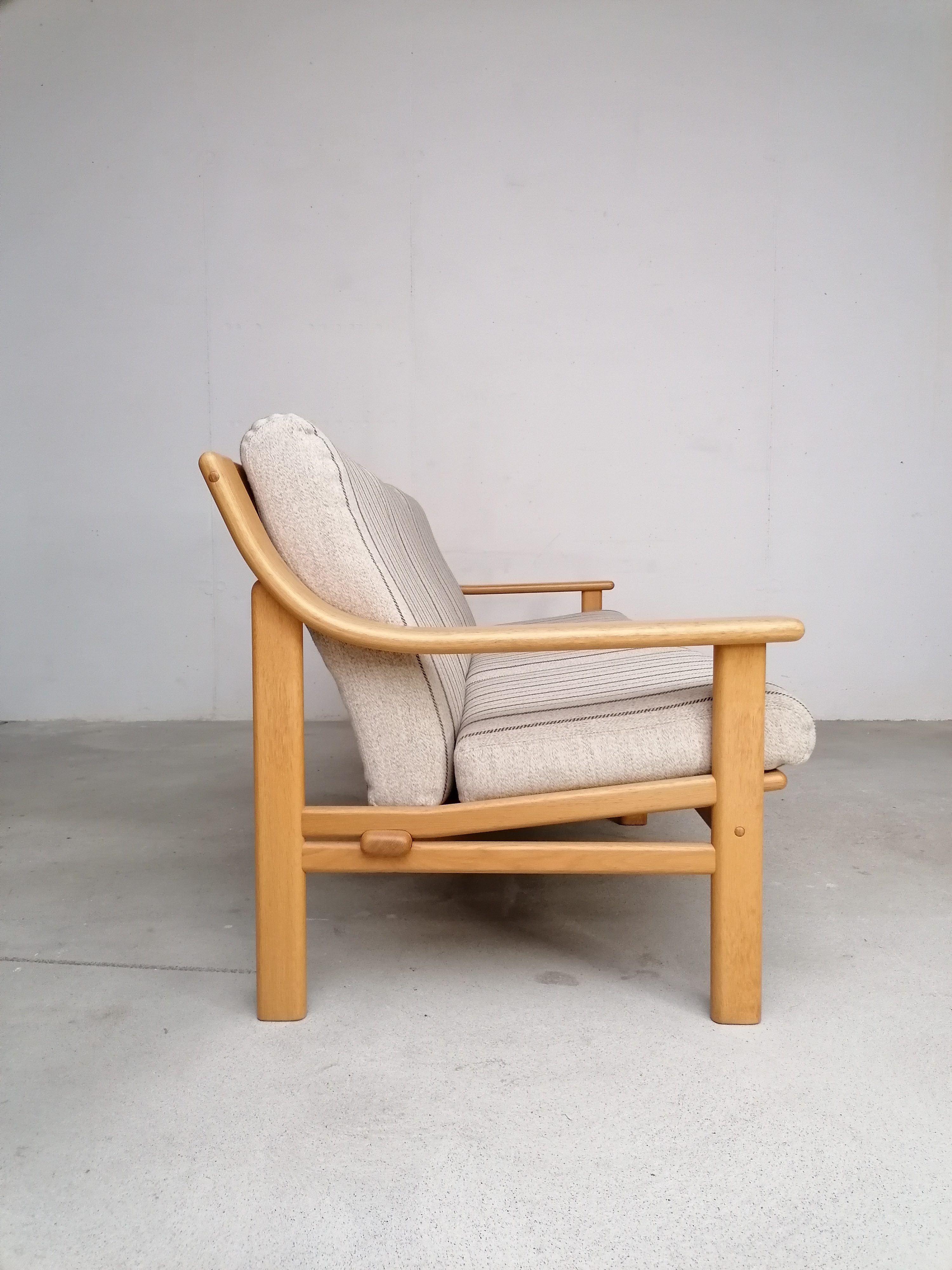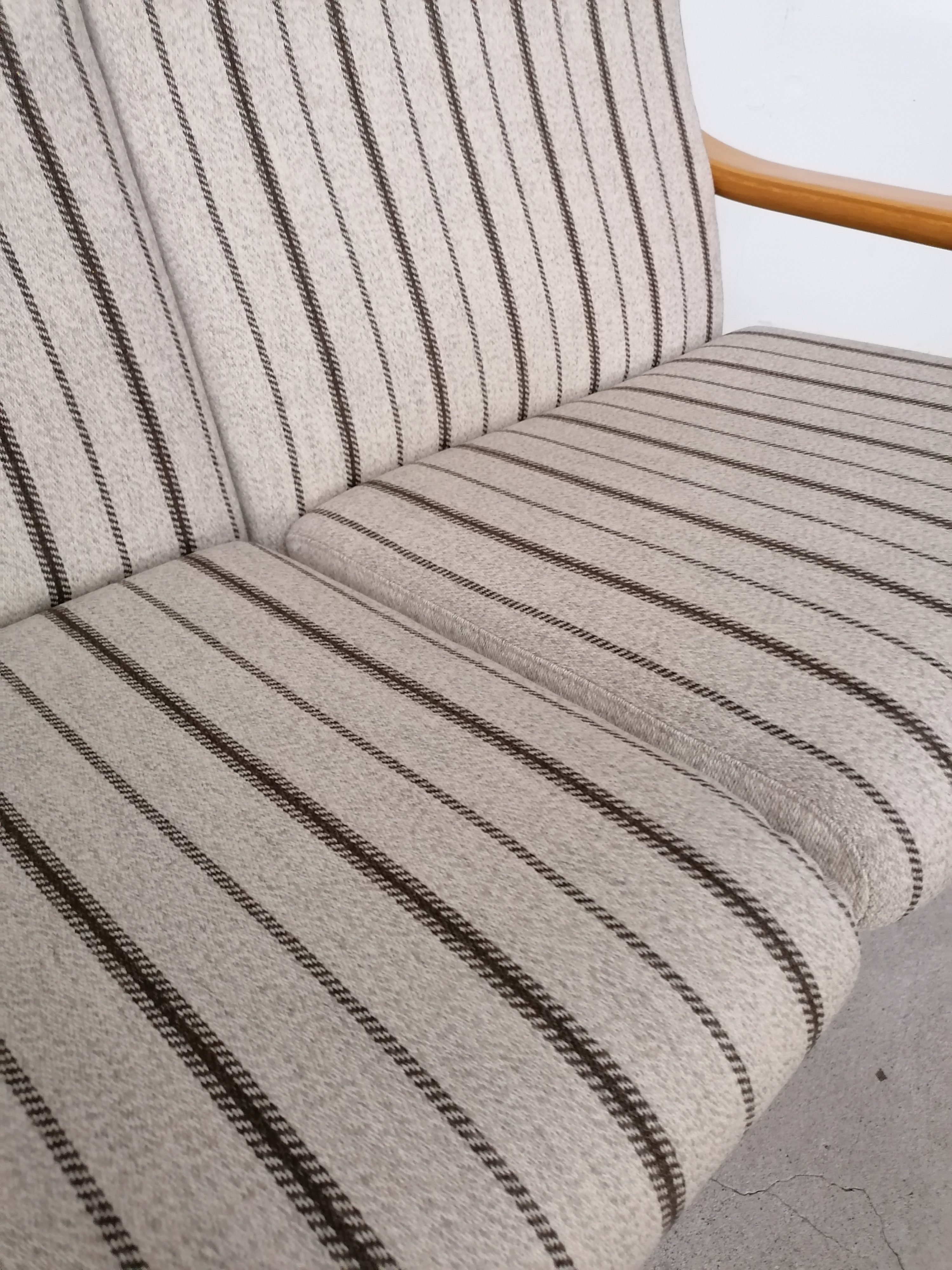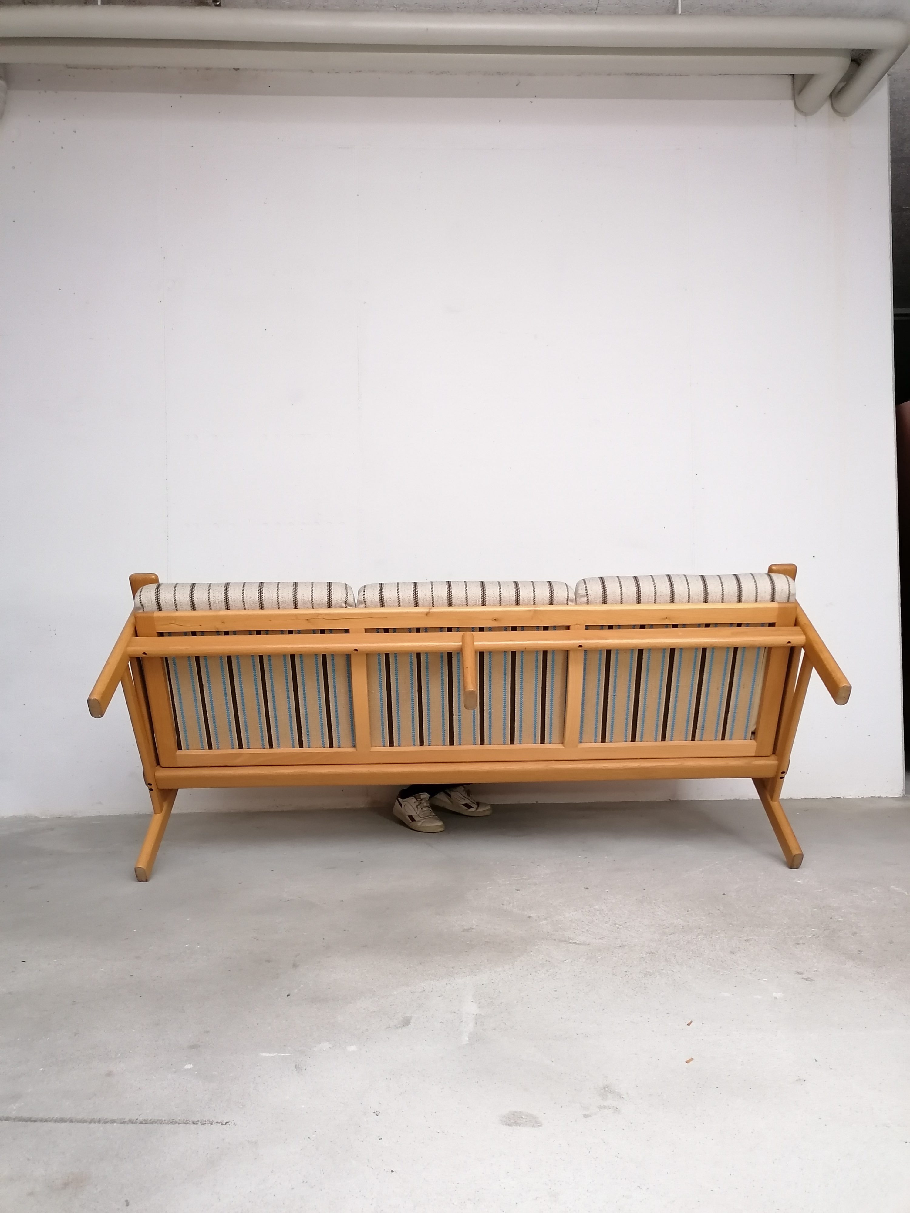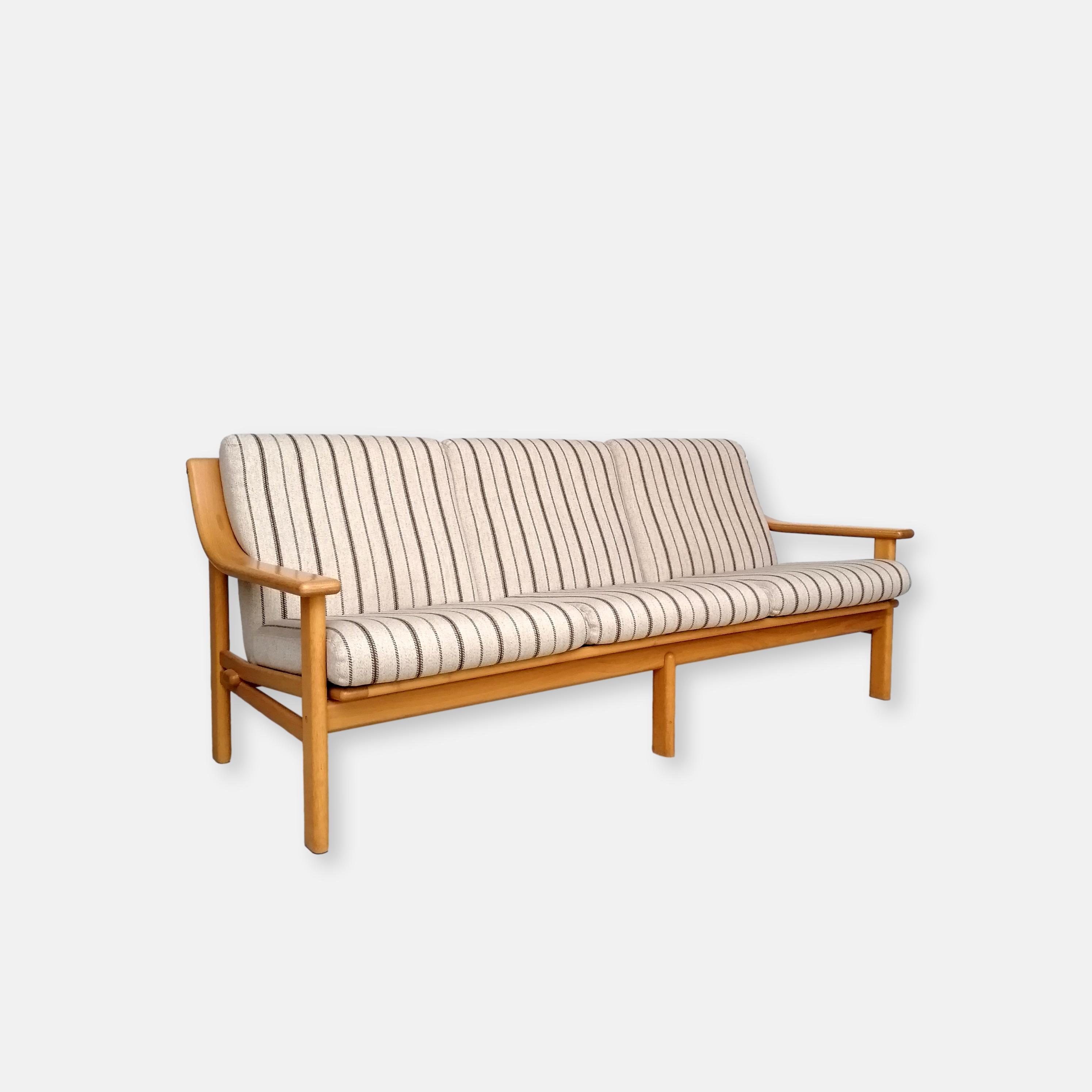 Canapé 3 places vintage scandinave. Produit par le fabricant danois CFC Silkeborg. Structure en bois, mousse et tissu en très bon état. Le tissu est déhoussable. Très confortable. Hauteur de l’assise: 44 cm.