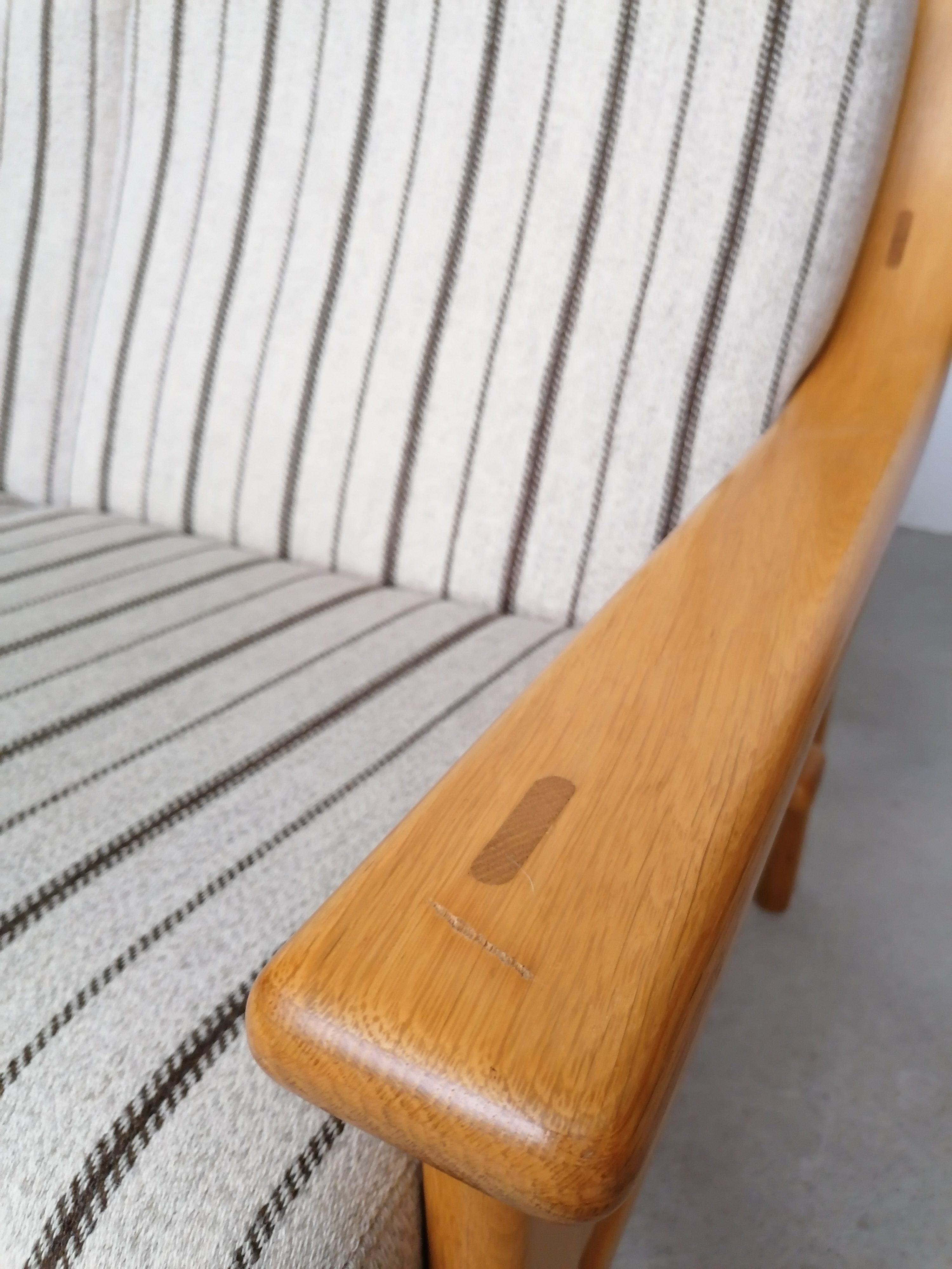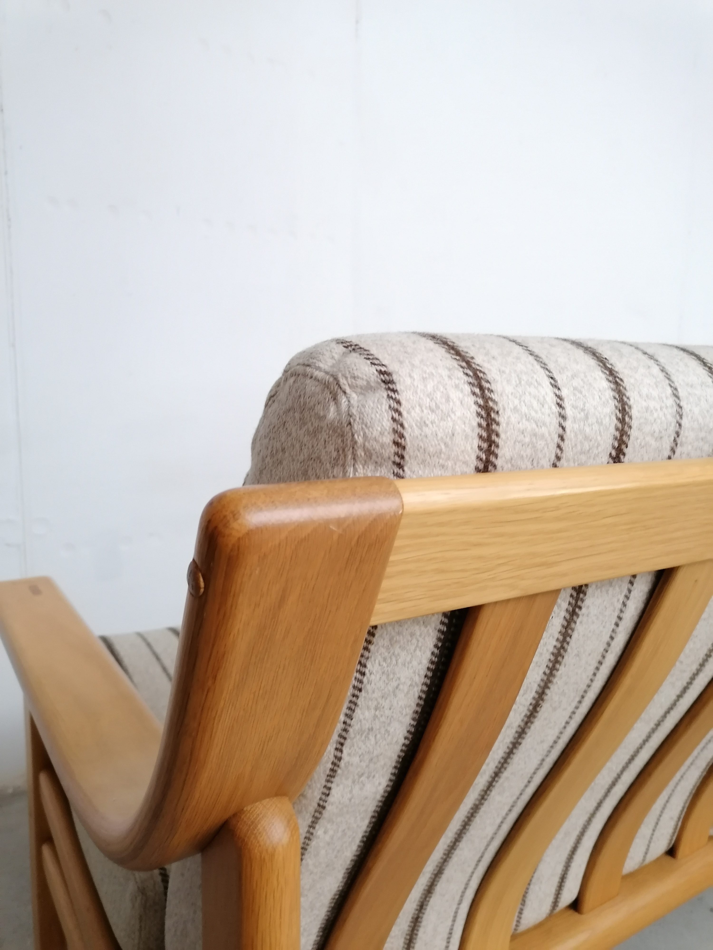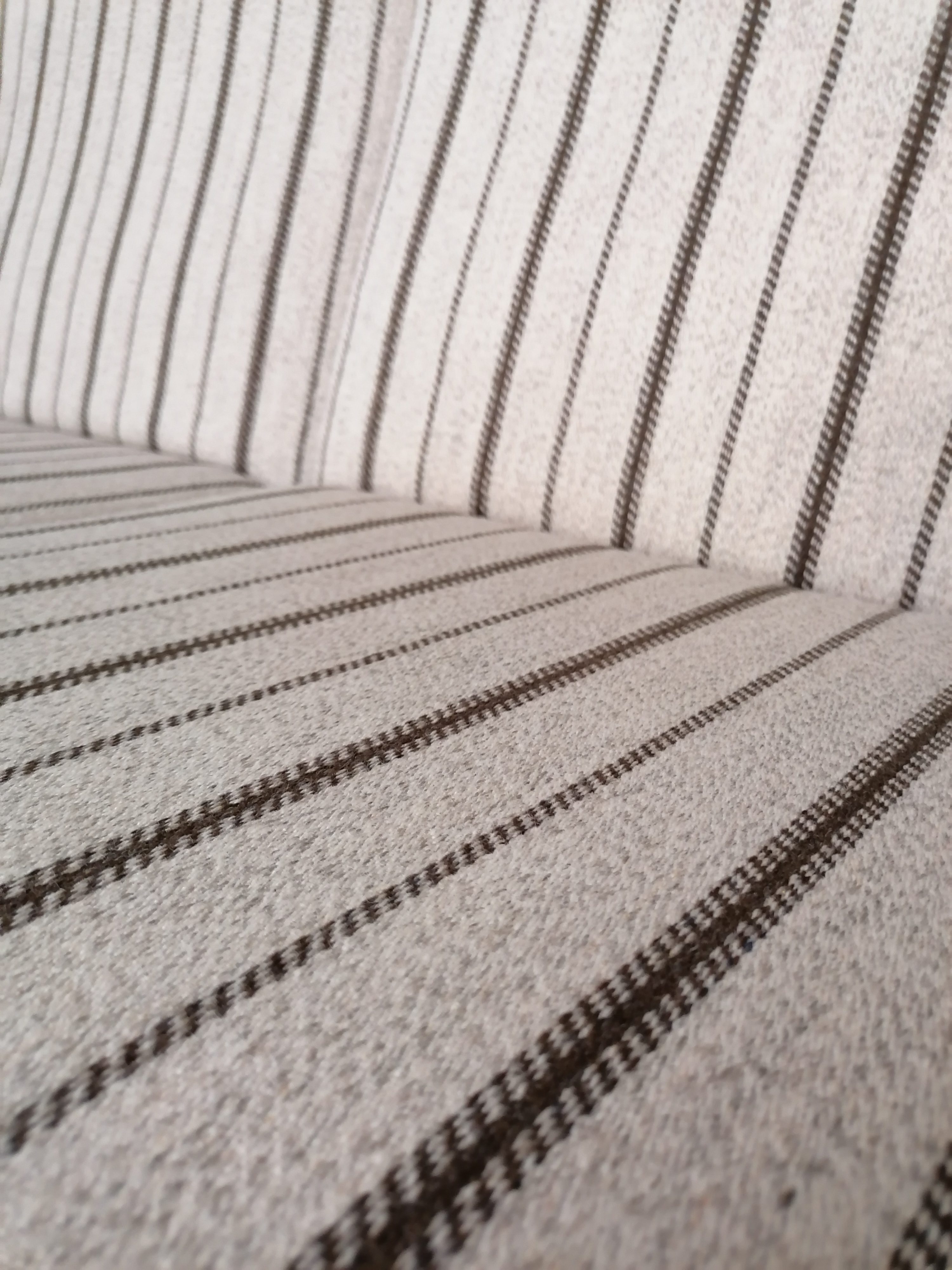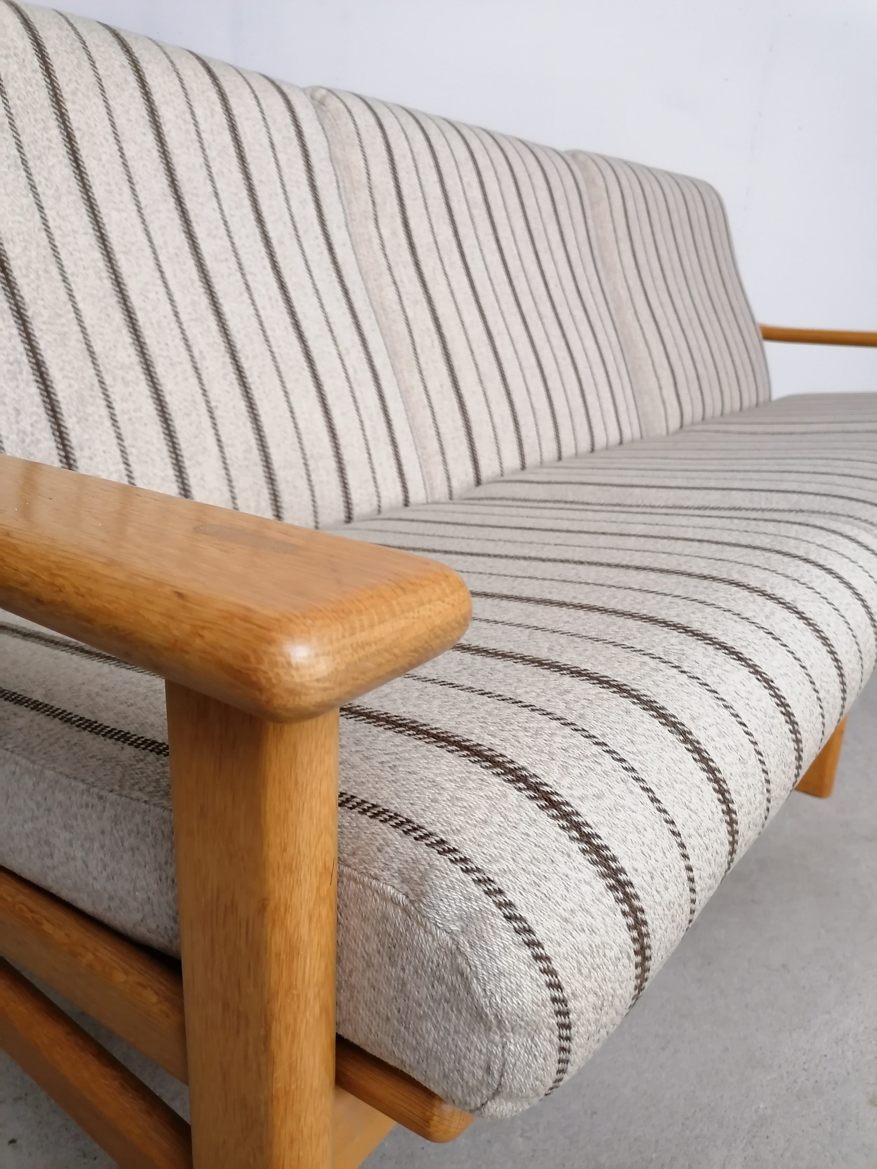 Canapé 3 places vintage scandinave. Produit par le fabricant danois CFC Silkeborg. Structure en bois, mousse et tissu en très bon état. Le tissu est déhoussable. Très confortable. Hauteur de l’assise: 44 cm.