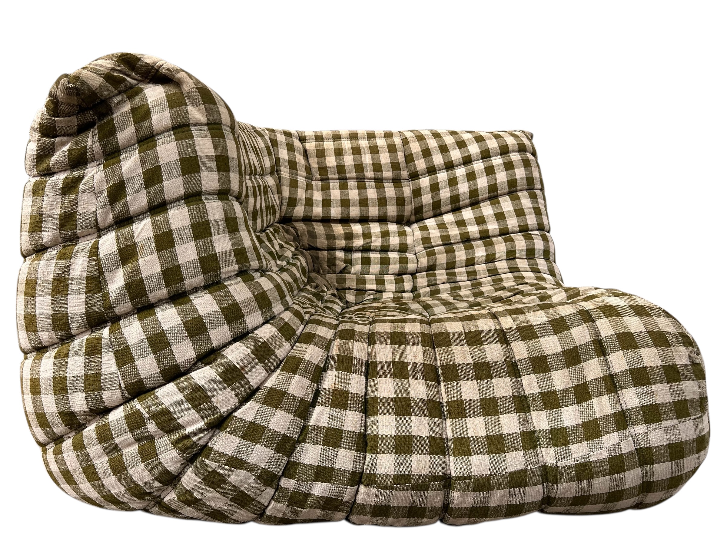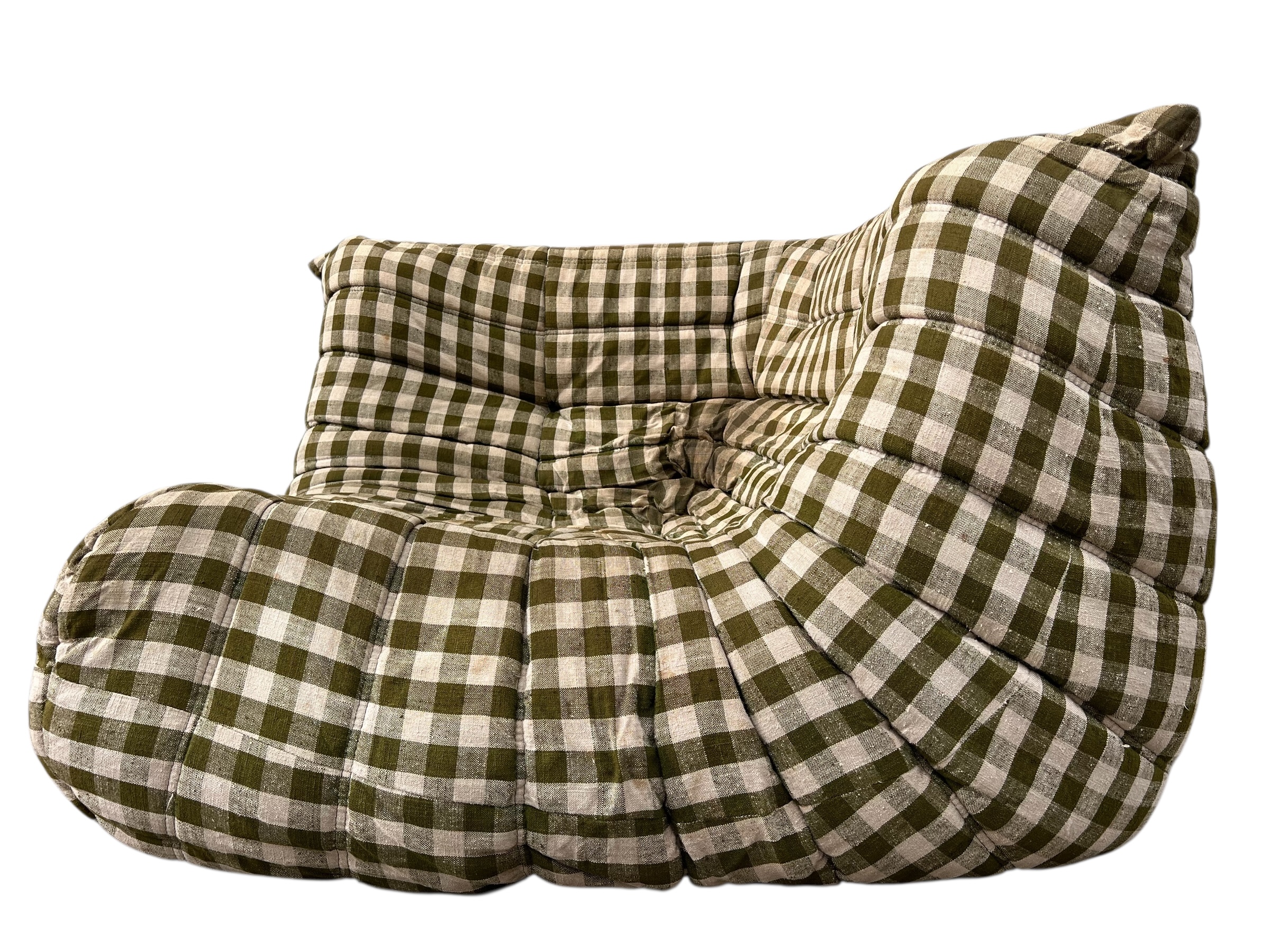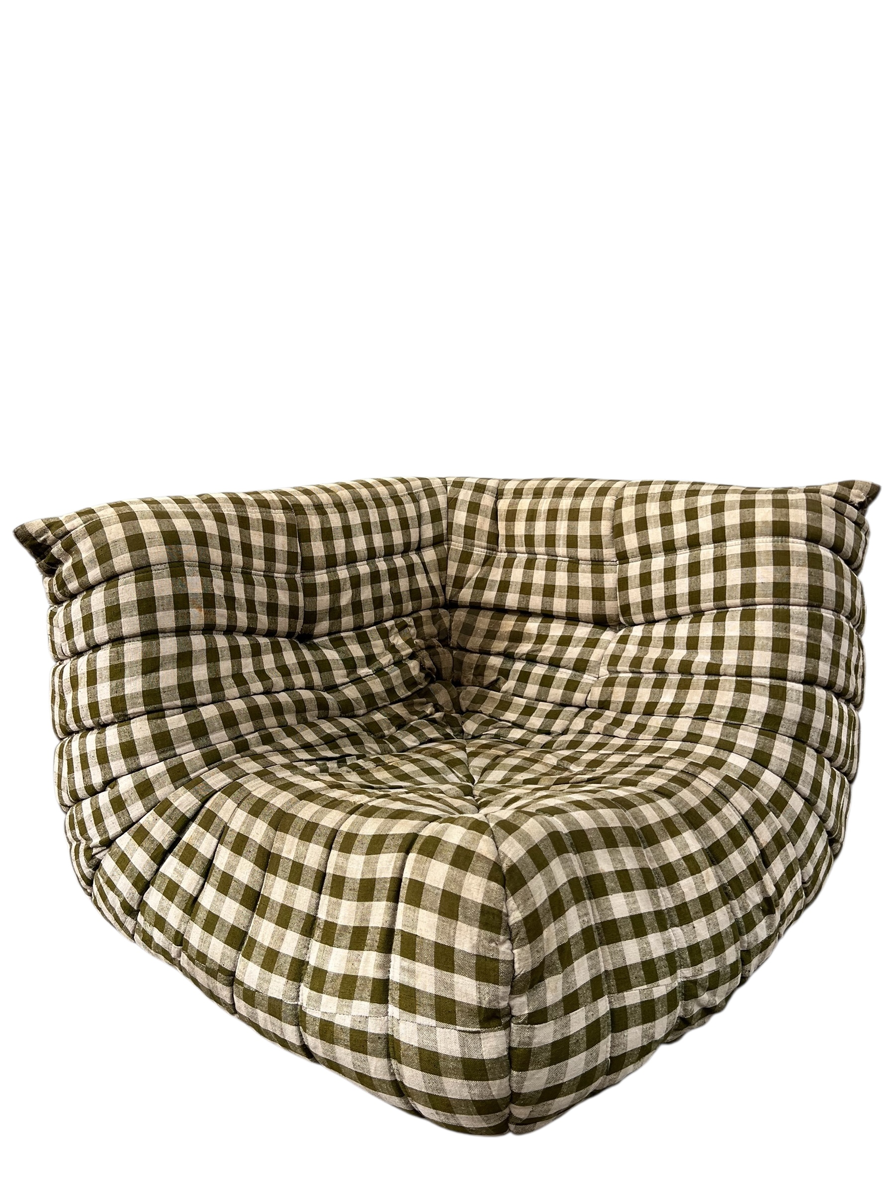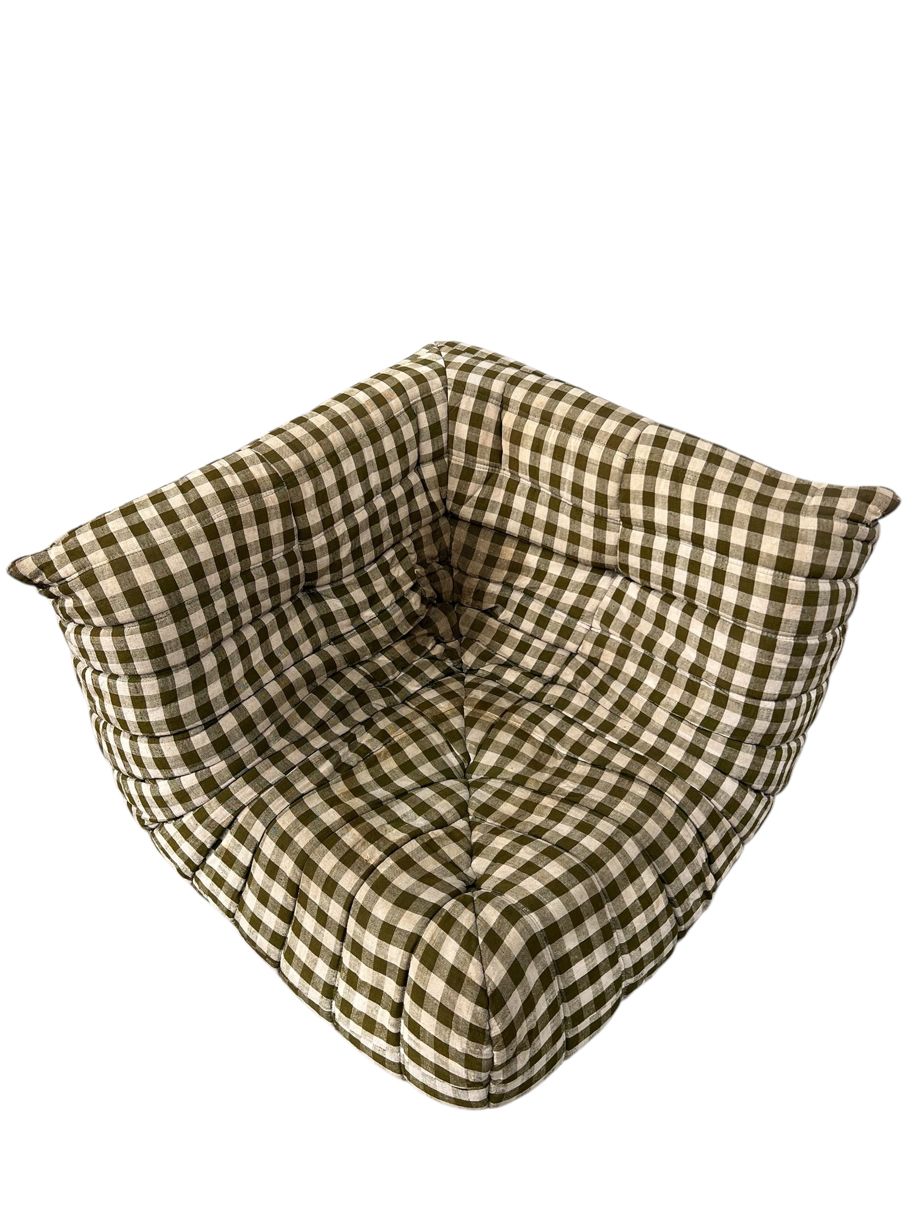 Canapé d’angle Togo Ligne Roset, par Michel Ducaroy, tissu damier d’origine. First édition, collecteur