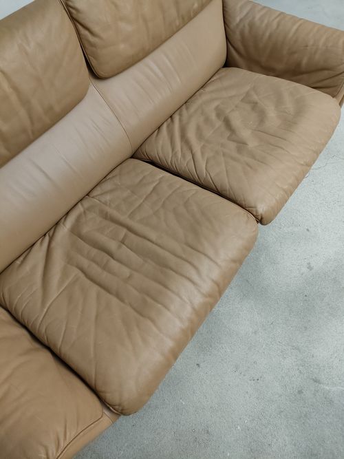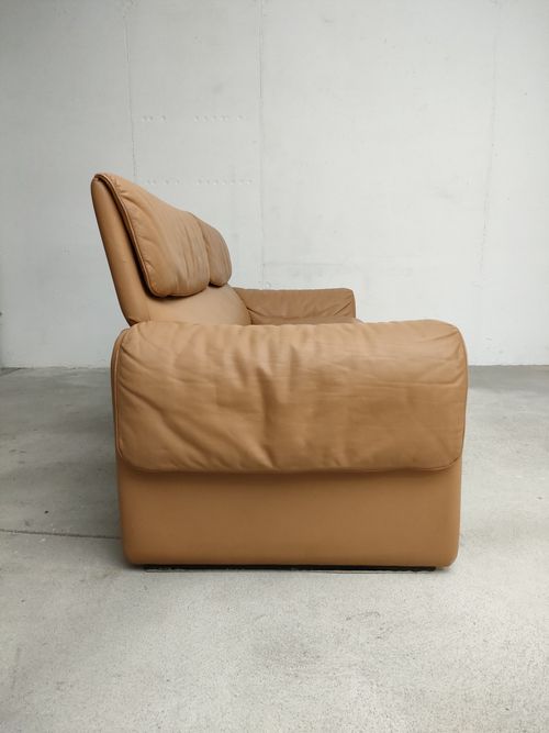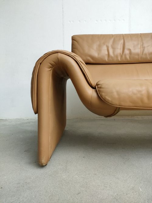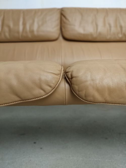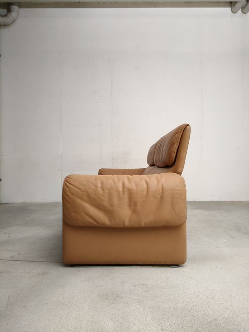 Produit venduCanapé en cuir couleur caramel 2.5 places produit par le fabricant suisse De Sede. Modèle DS 2011 conçu dans les années 80. Quelques traces d’usure sur le cuir, en particulier à l’arrière (voir photos). Hauteur de l’assise: 38 cm.