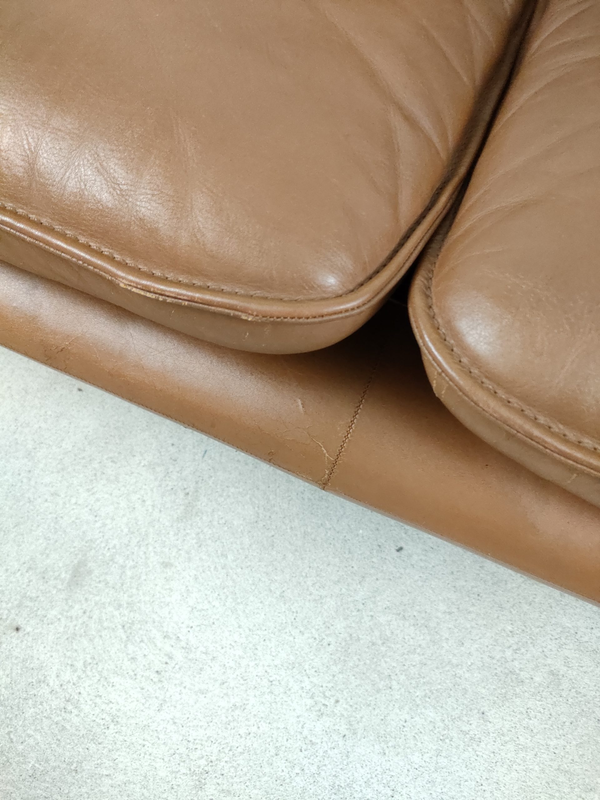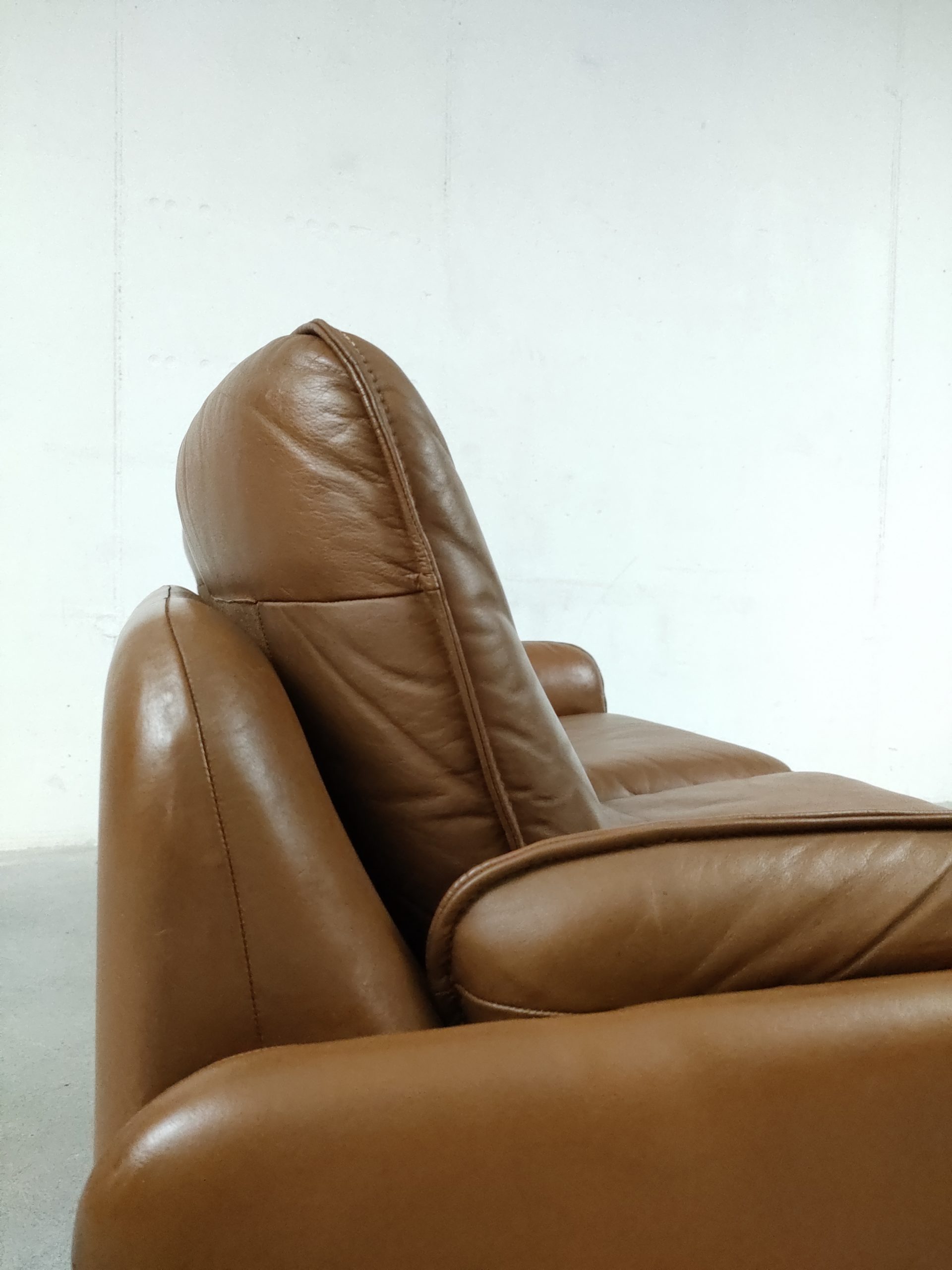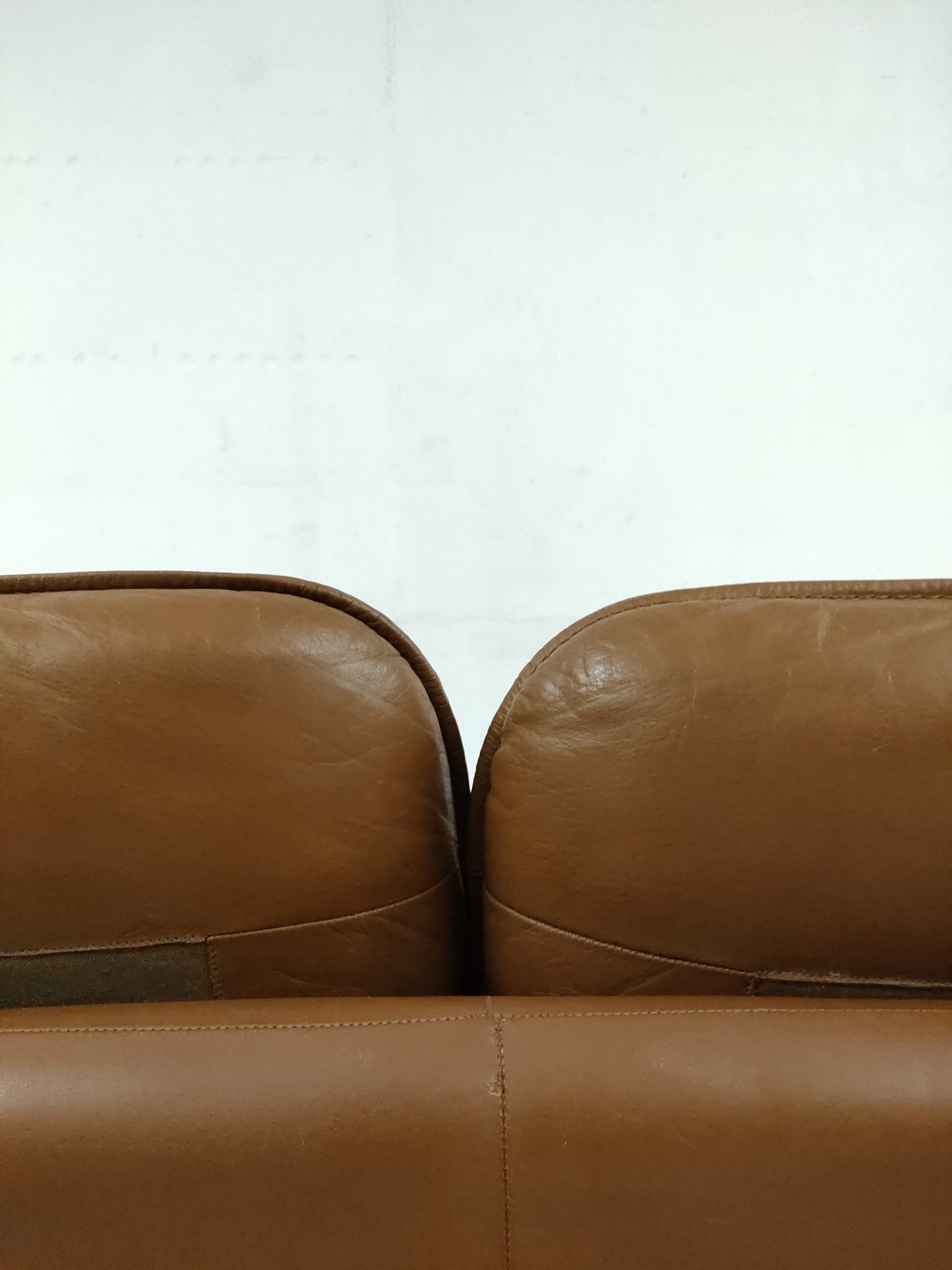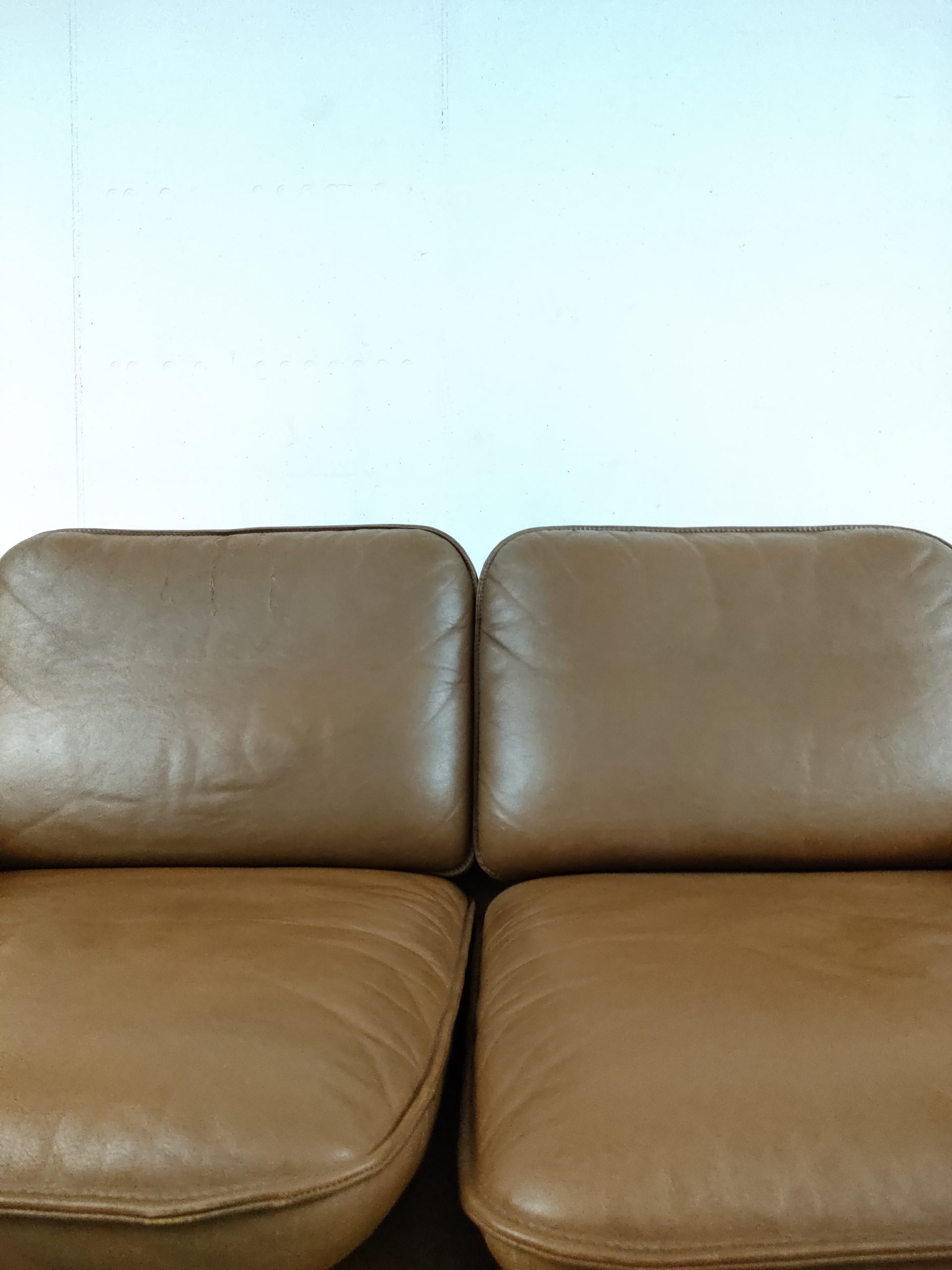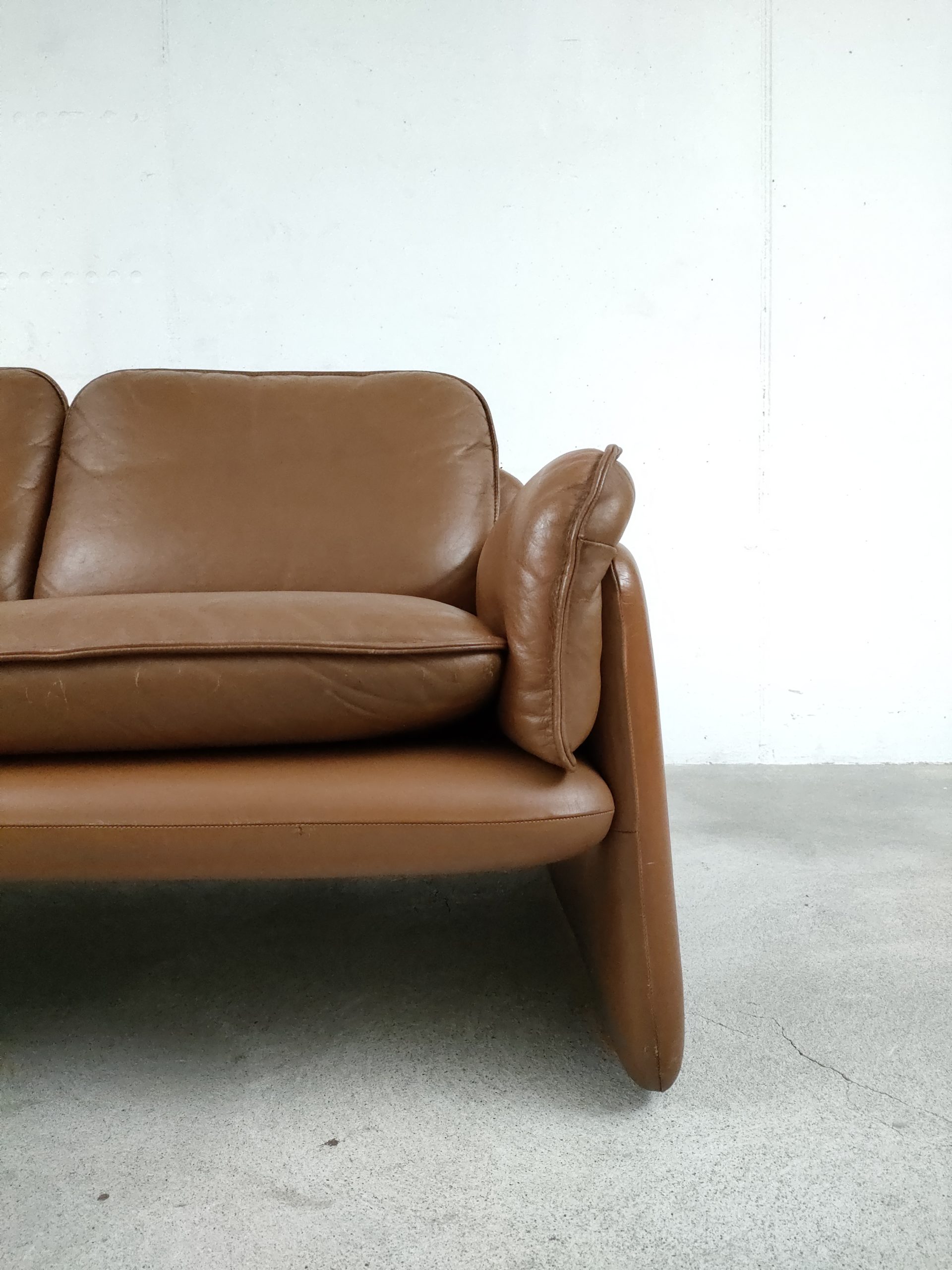 Produit venduCanapé deux places en cuir marron produit par la fabricant suisse De Sede, modèle DS-61 concu dans les années 60. Doté d’un porte-revues en cuir amovible qui se clipse sur le coté. Des traces d’usure sur le cuir sont présentes en particulier sur la partie haute d’un des dossiers (voir photo). Des traces d’eau sont présentes sur le tissu sous les dossiers et assises. La structure est stable et solide et la mousse à l’intérieur toujours en bon état. Le canapé est parfaitement fonctionnel. Hauteur de l’assise: 40 cm.