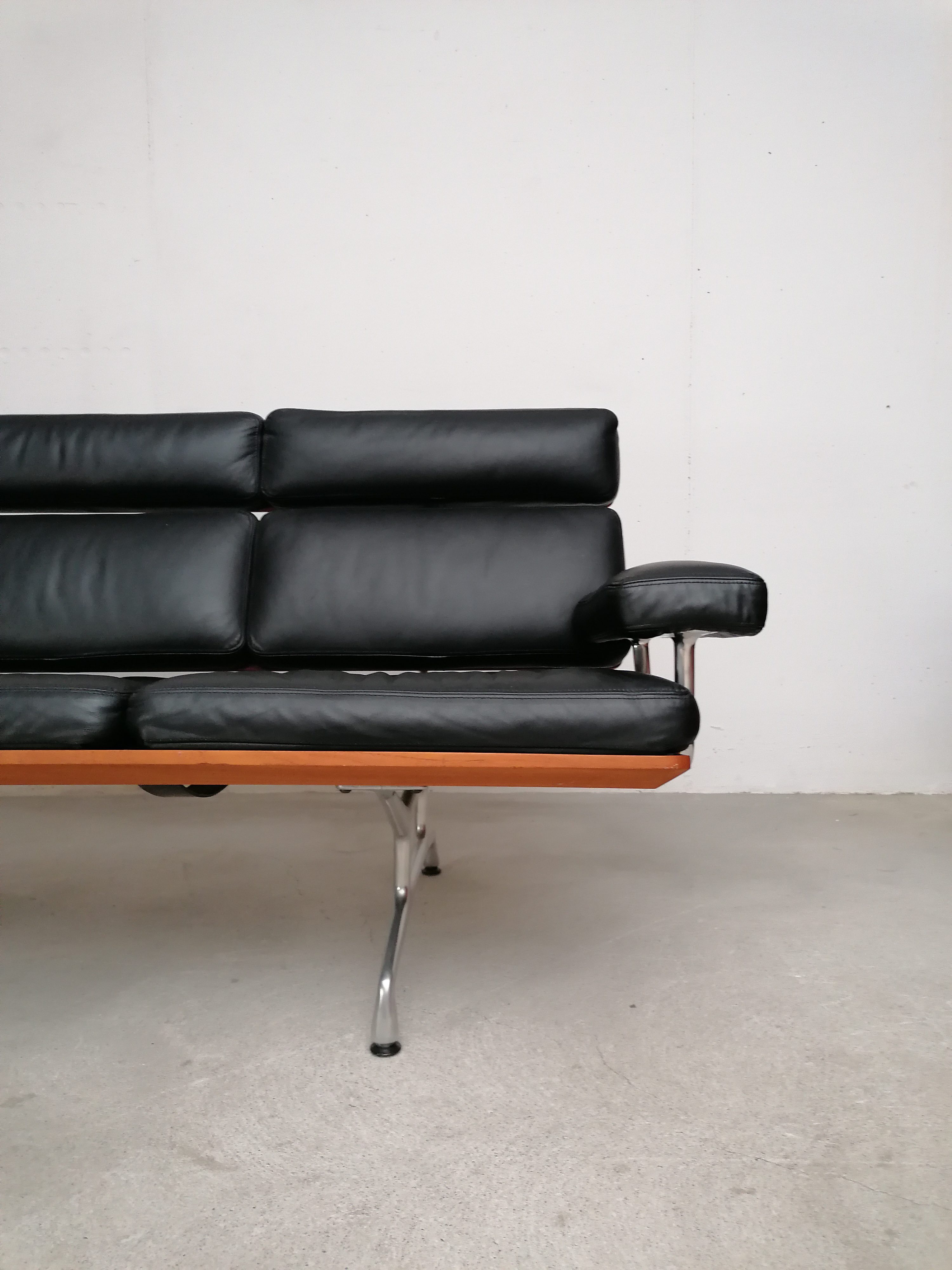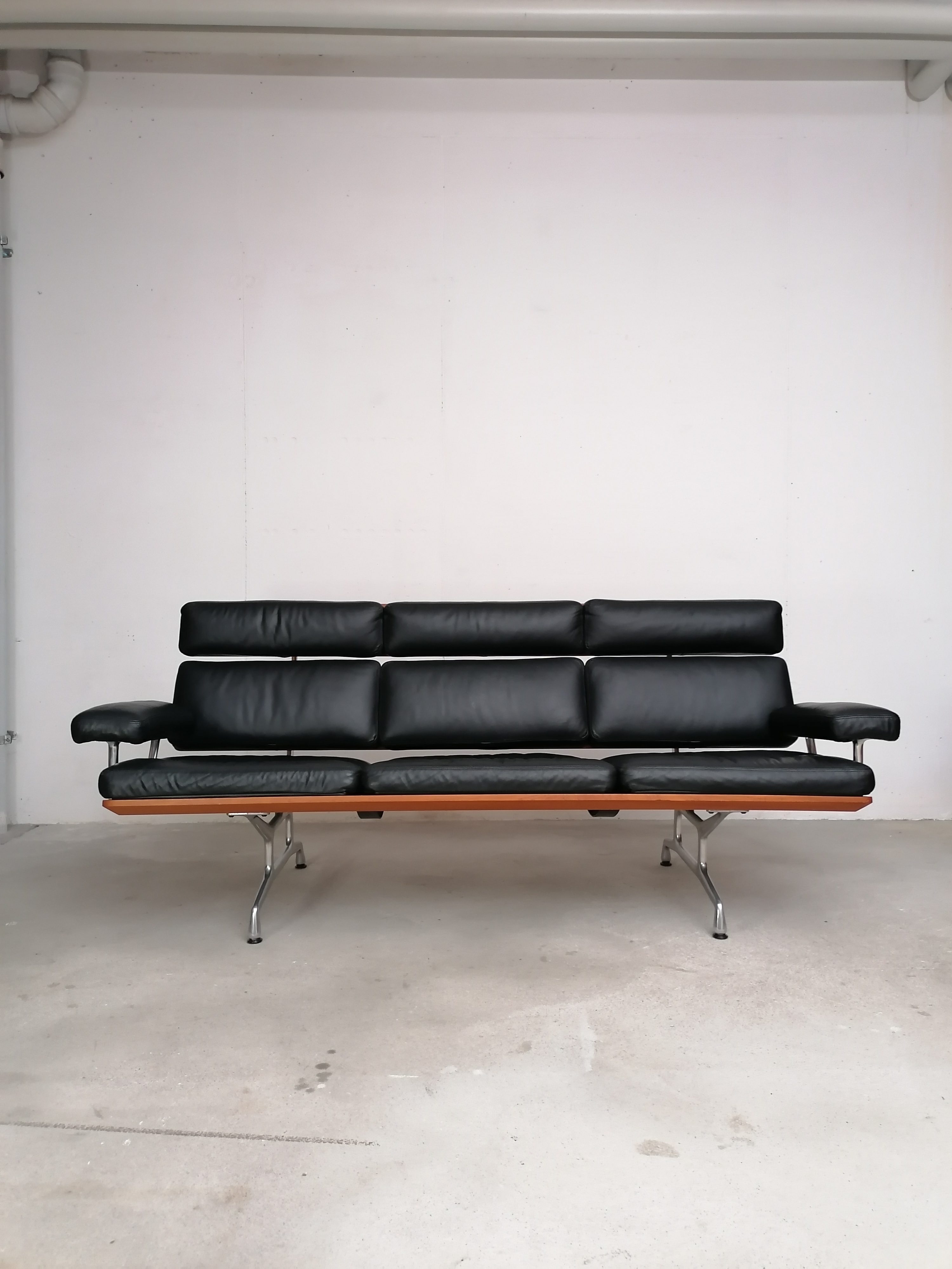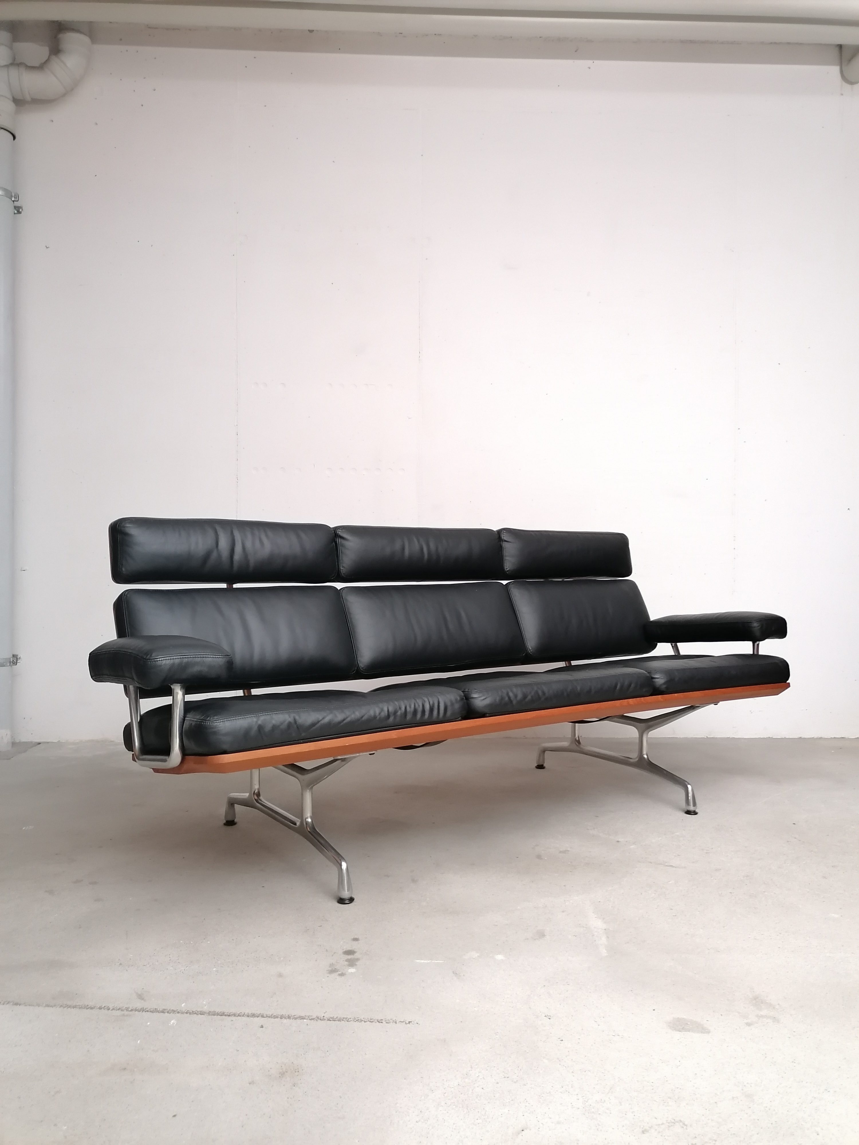 Canapé trois places ES 108 de Charles et Ray Eames. Ce canapé est une des dernières pièces dessinées par le couple. Sa production par Herman Miller a débuté en 1984. Le modèle vendu date de 1998.