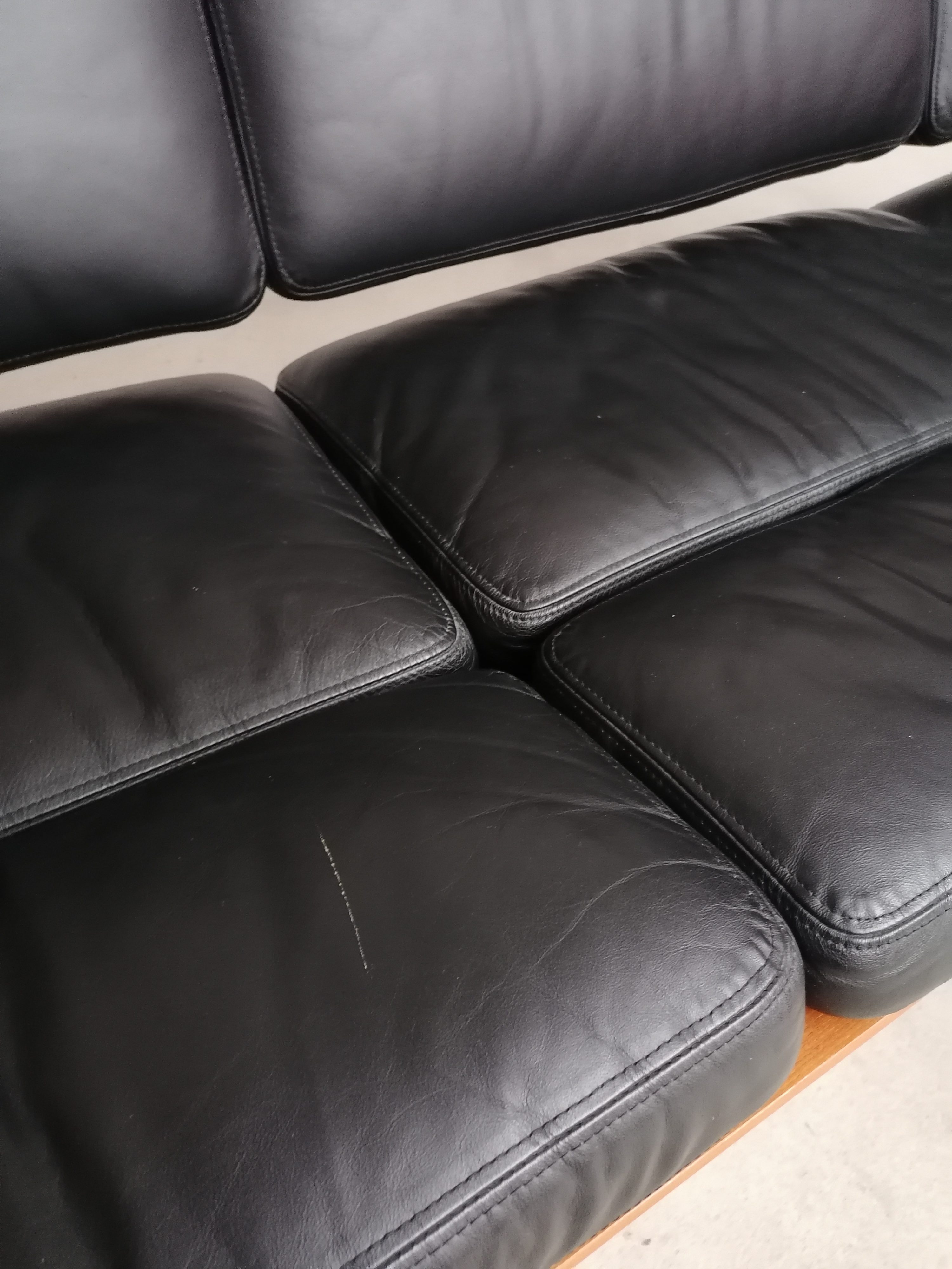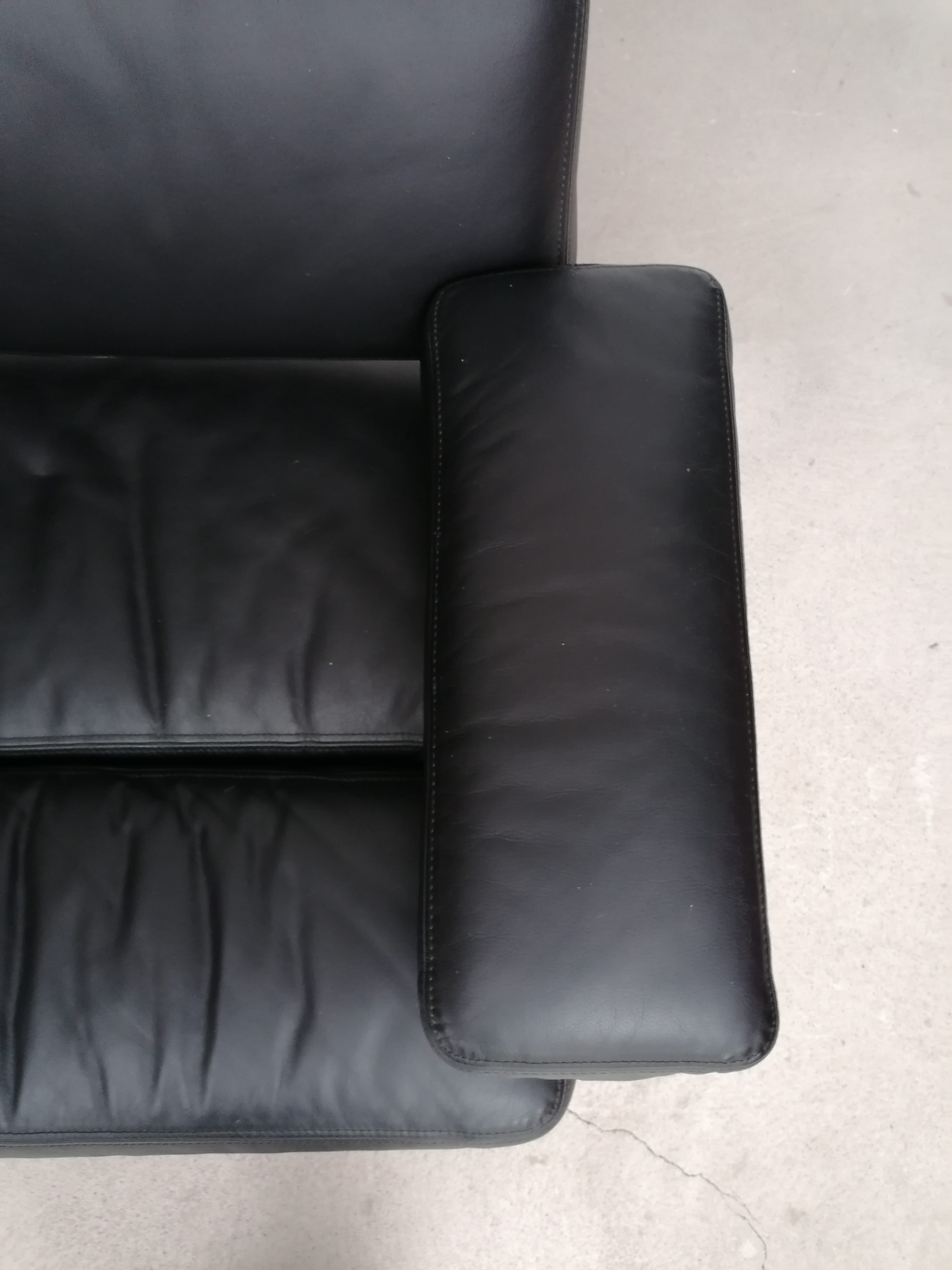 L’état général du canapé est très bon: il ne comporte que quelques légères traces d’utilisation. Un des coussins de l’assise a une griffure (environ 7 cm) qui peut certainement être atténuée par un procédé adapté.