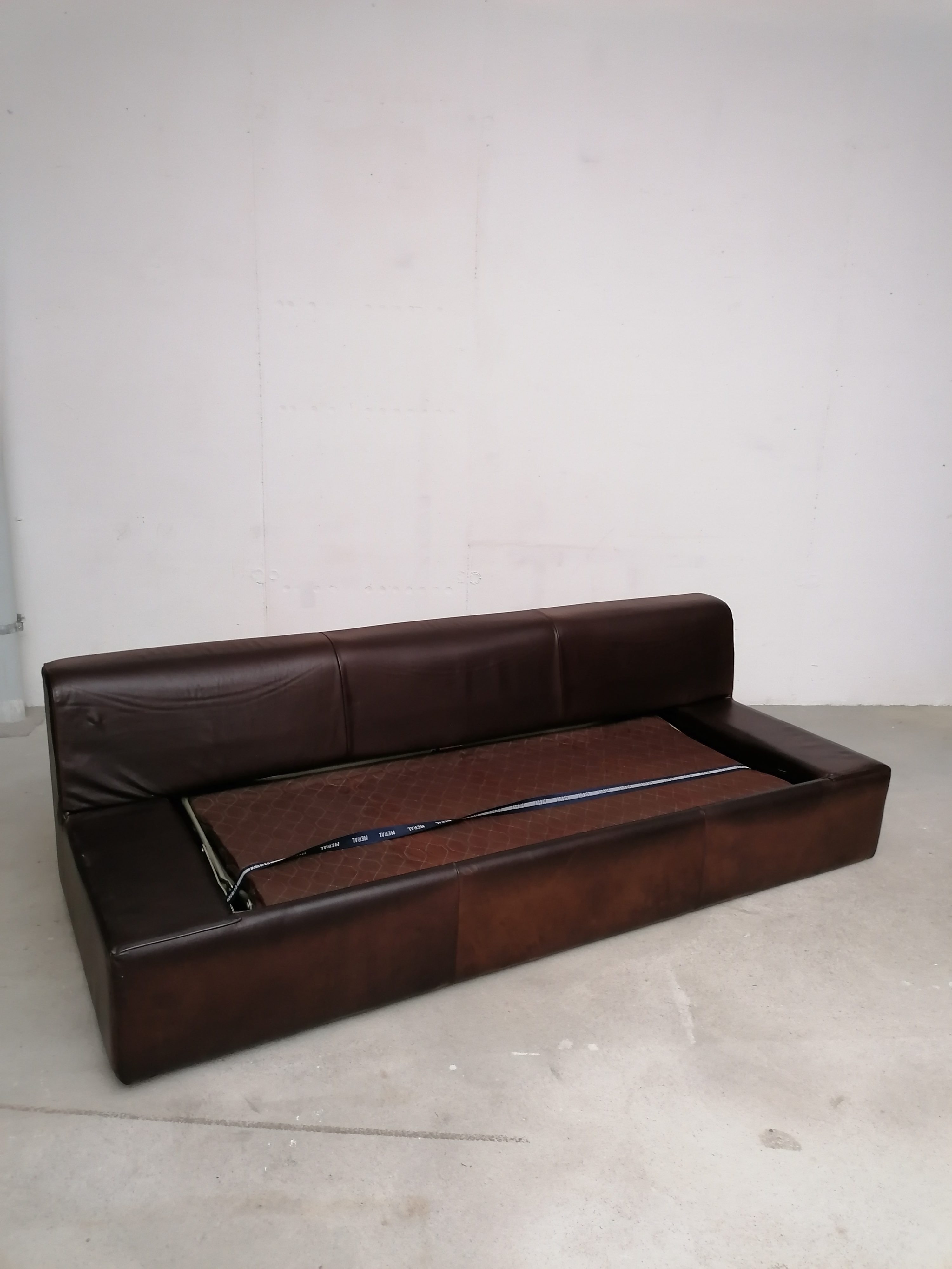 Produit venduCanapé-lit vintage en cuir. Doté de trois grand assises et dossiers en cuir. Un mécanisme très simple permet de transformer le canapé en lit. Dimensions du matelas actuel: 137×170 cm. La housse du matelas est déhoussable. Hauteur de l’assise: 40 cm.