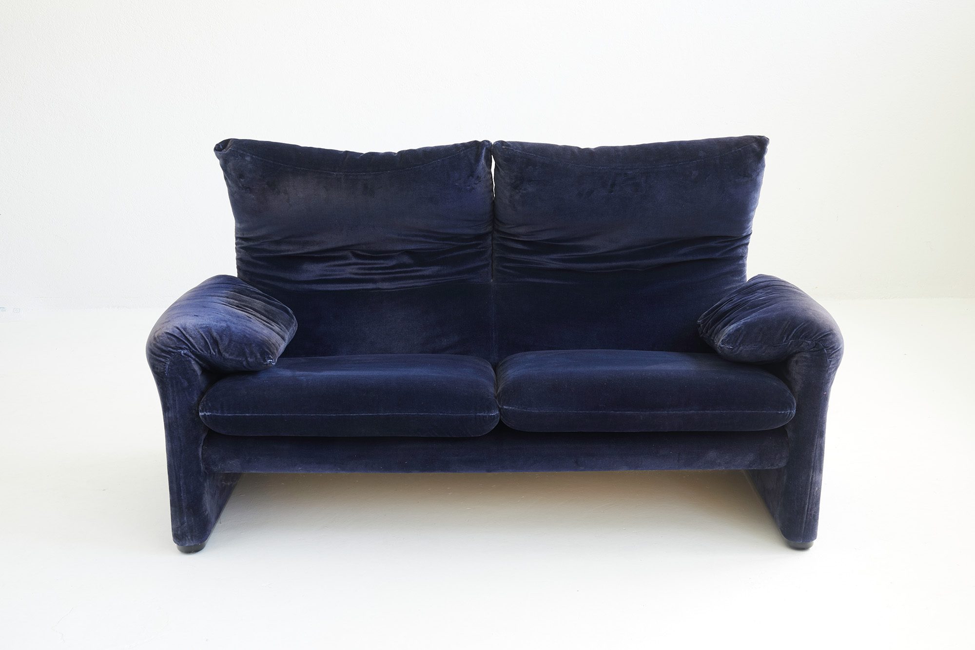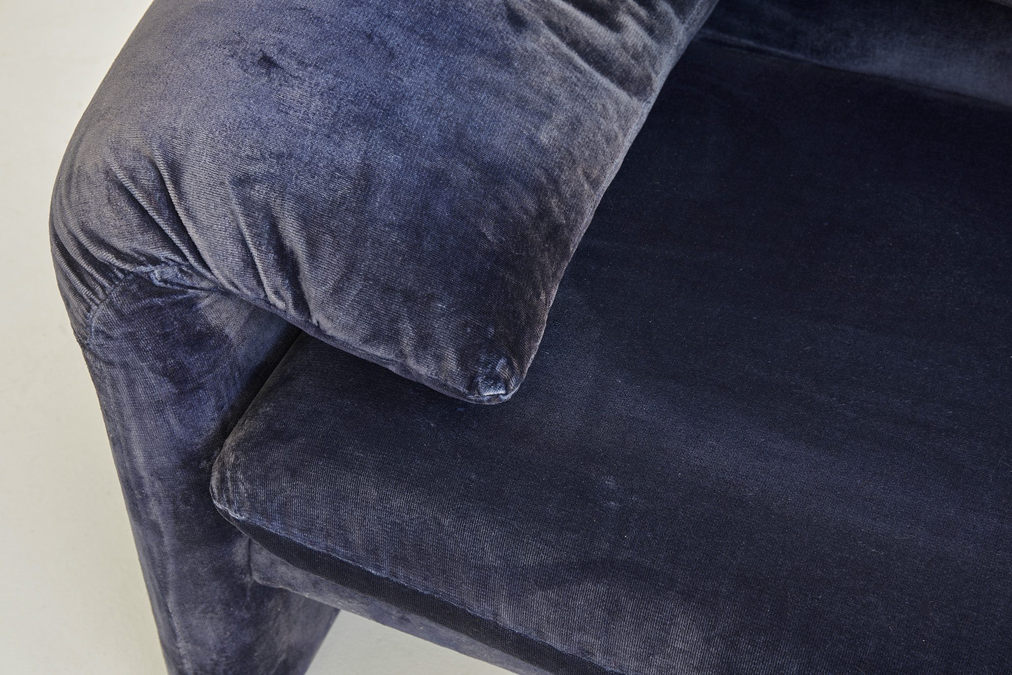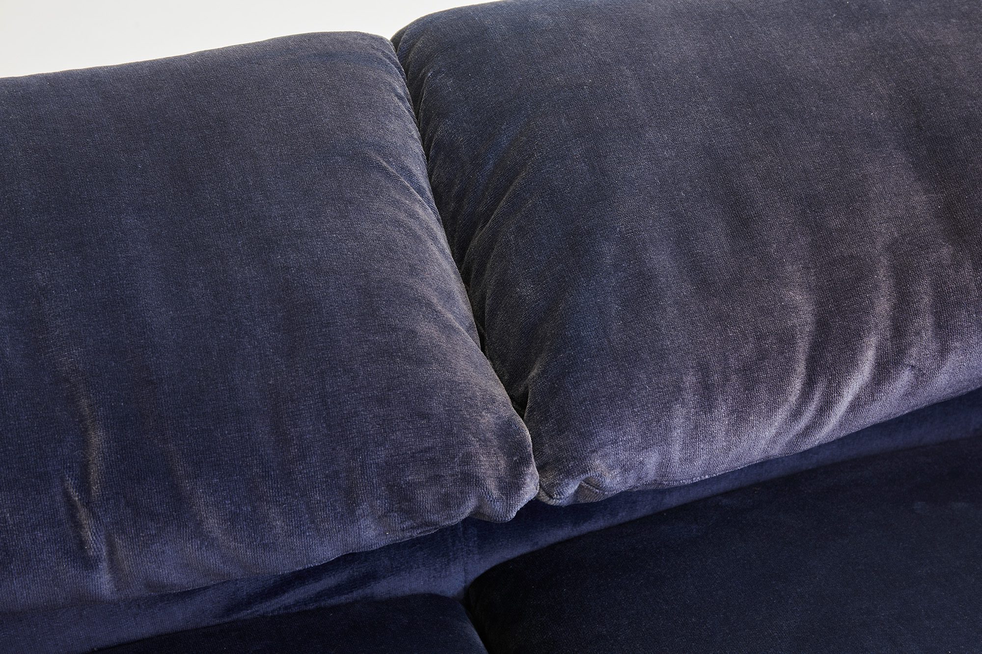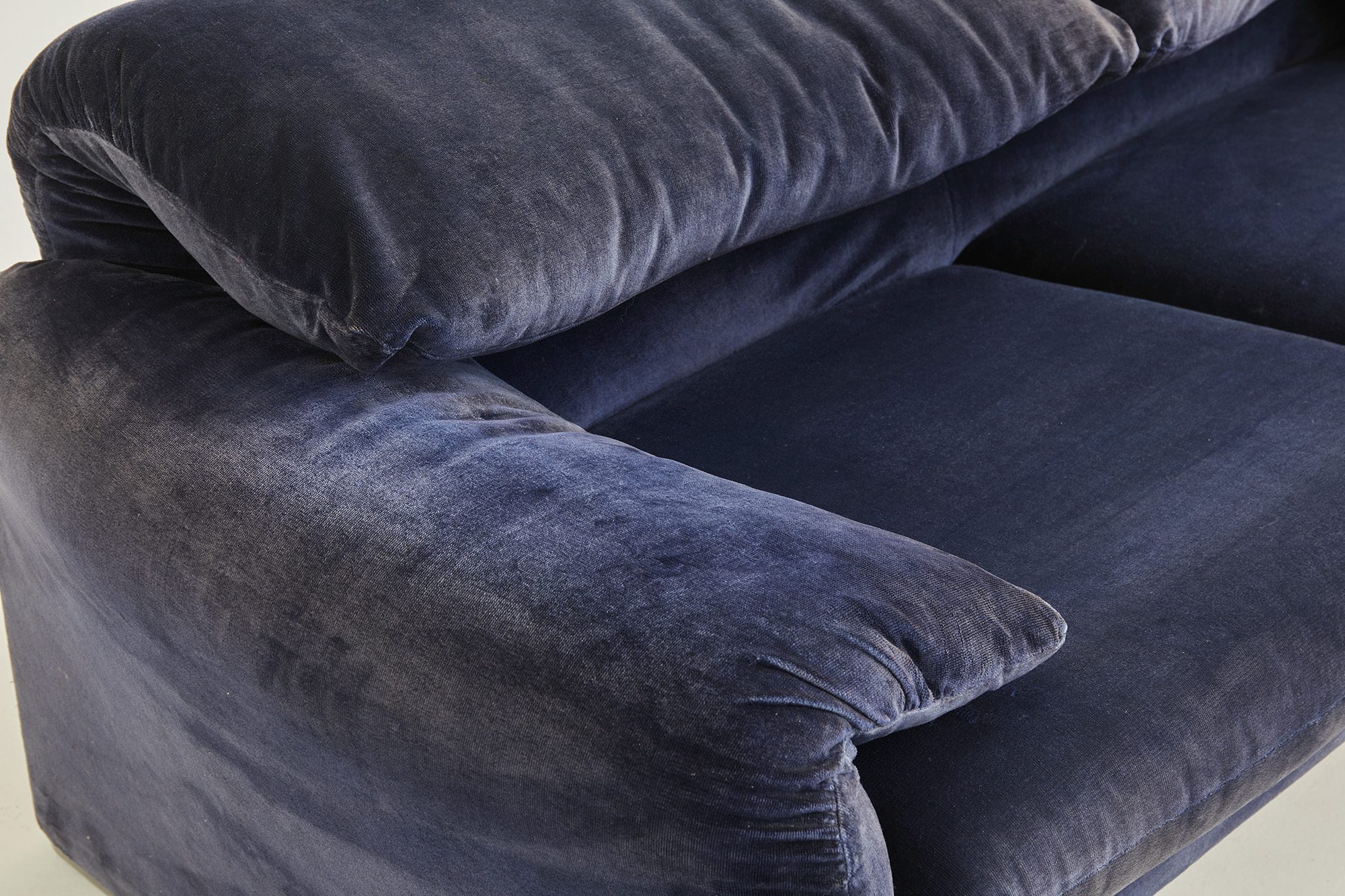 Canapé Maralunga en velours bleu de Vico Magistretti