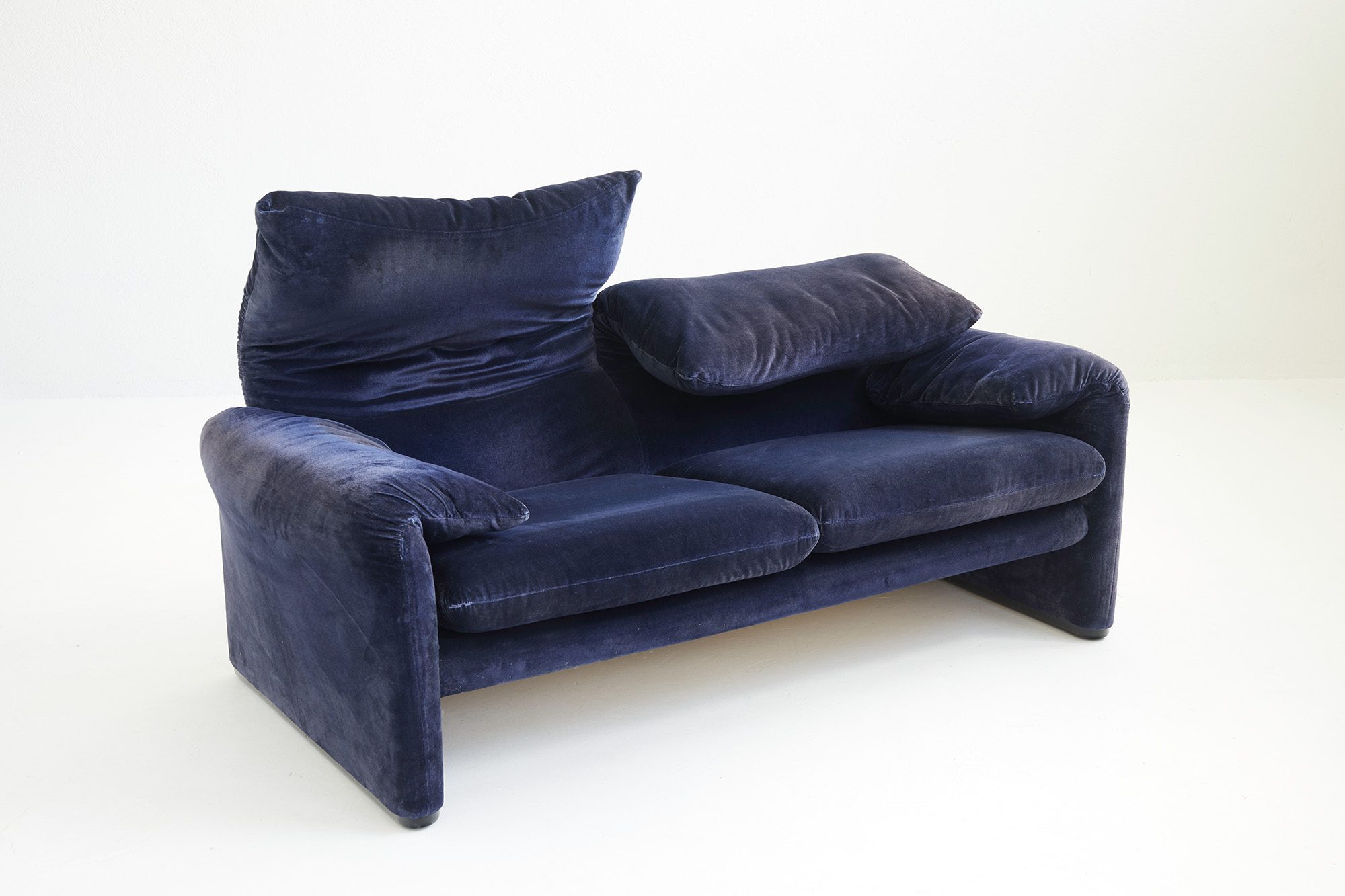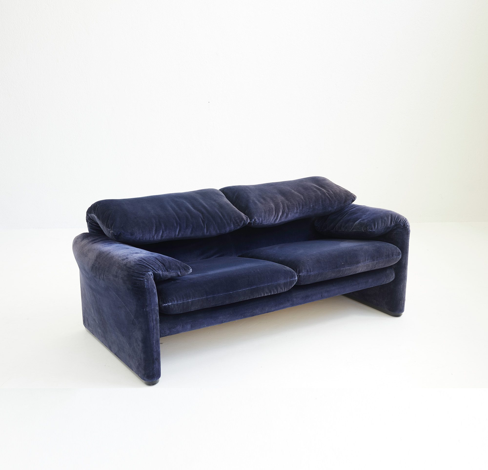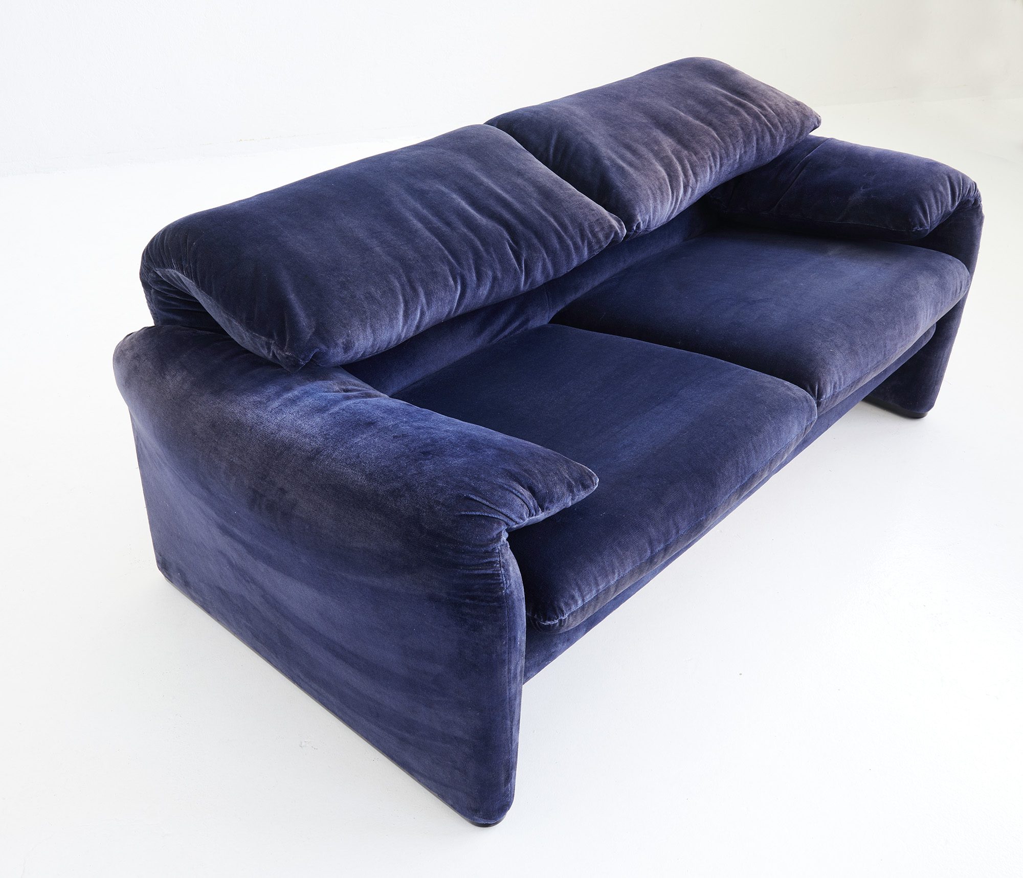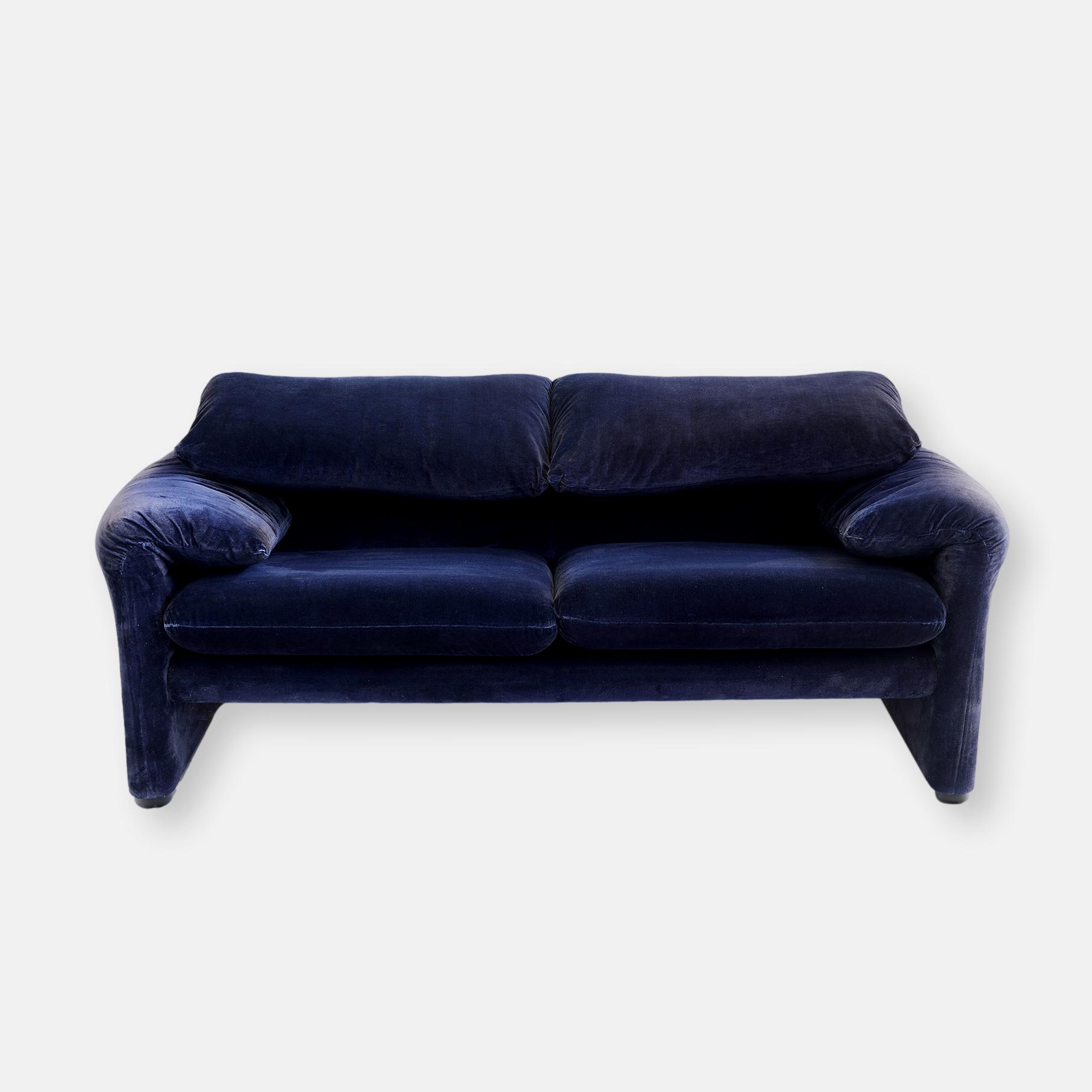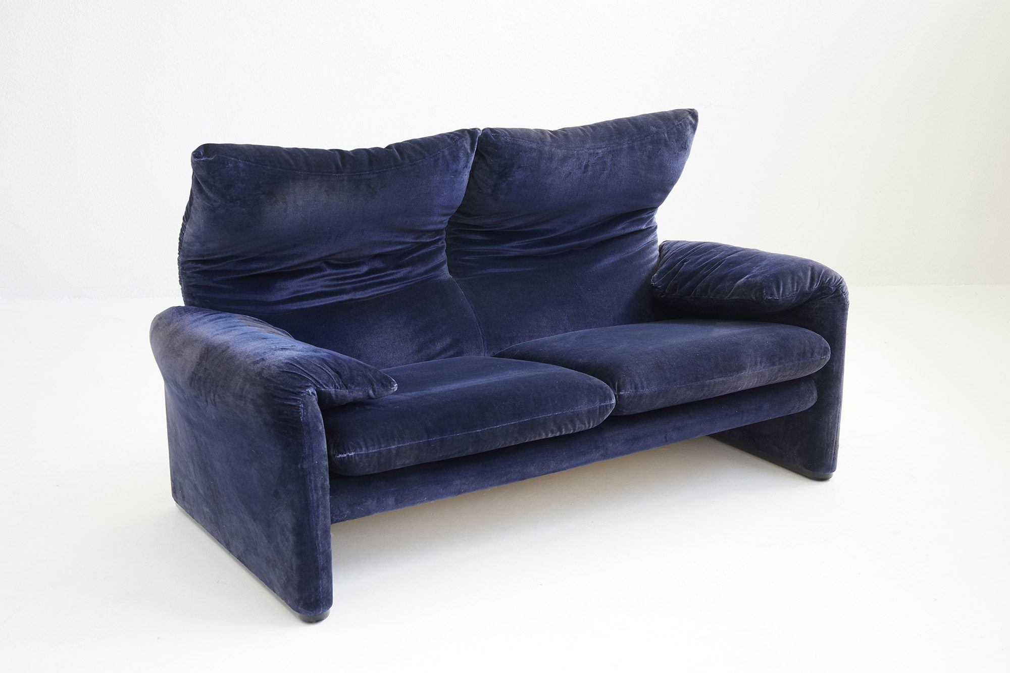 Canapé Maralunga en velours bleu de Vico Magistretti