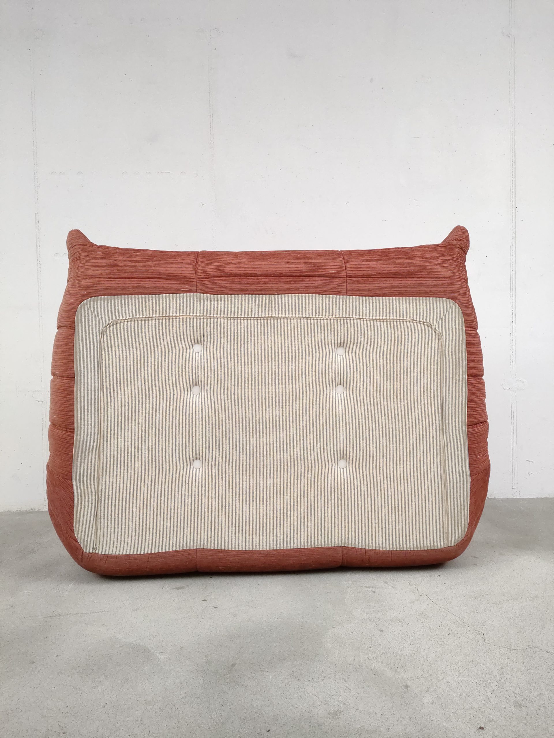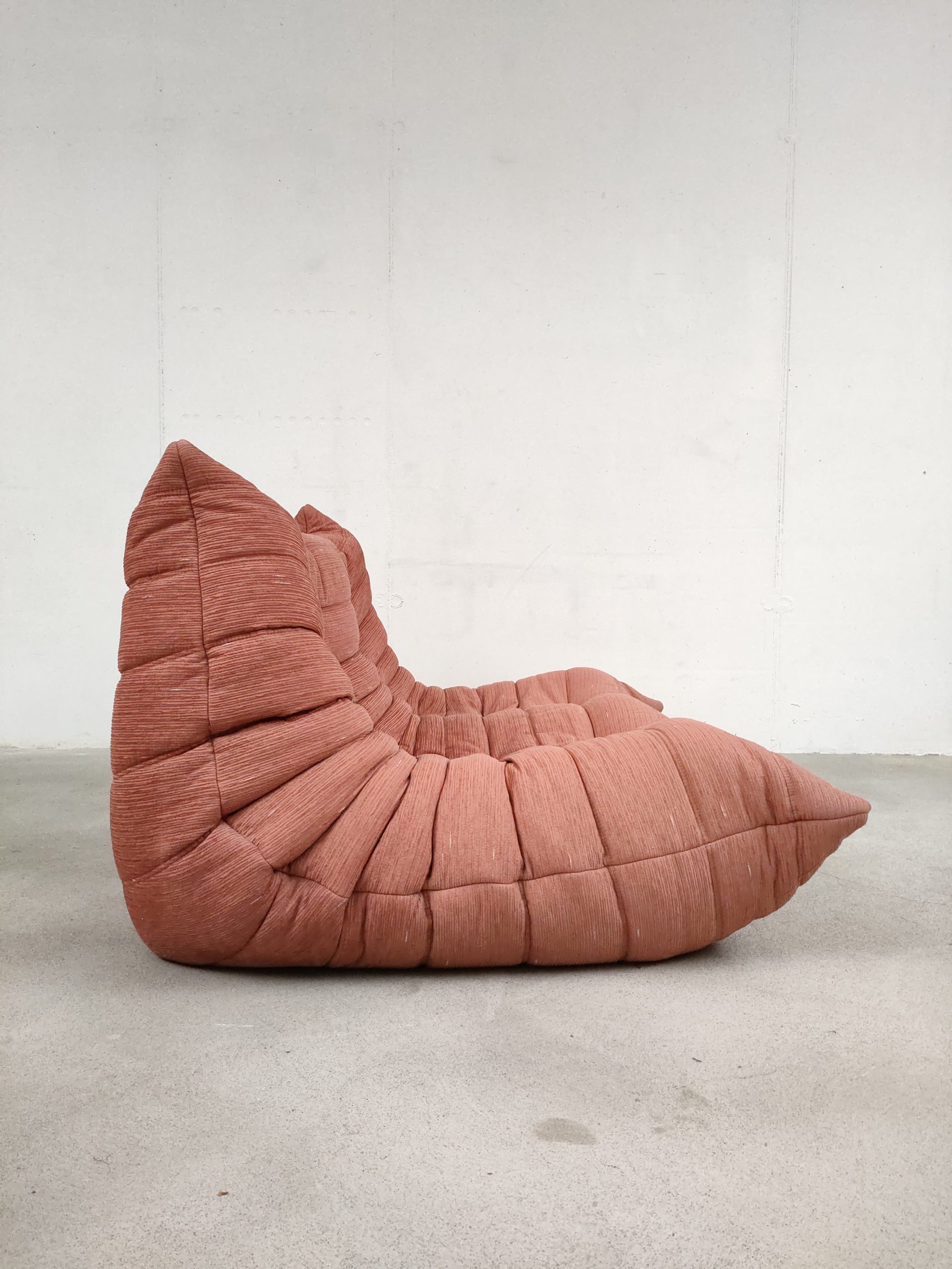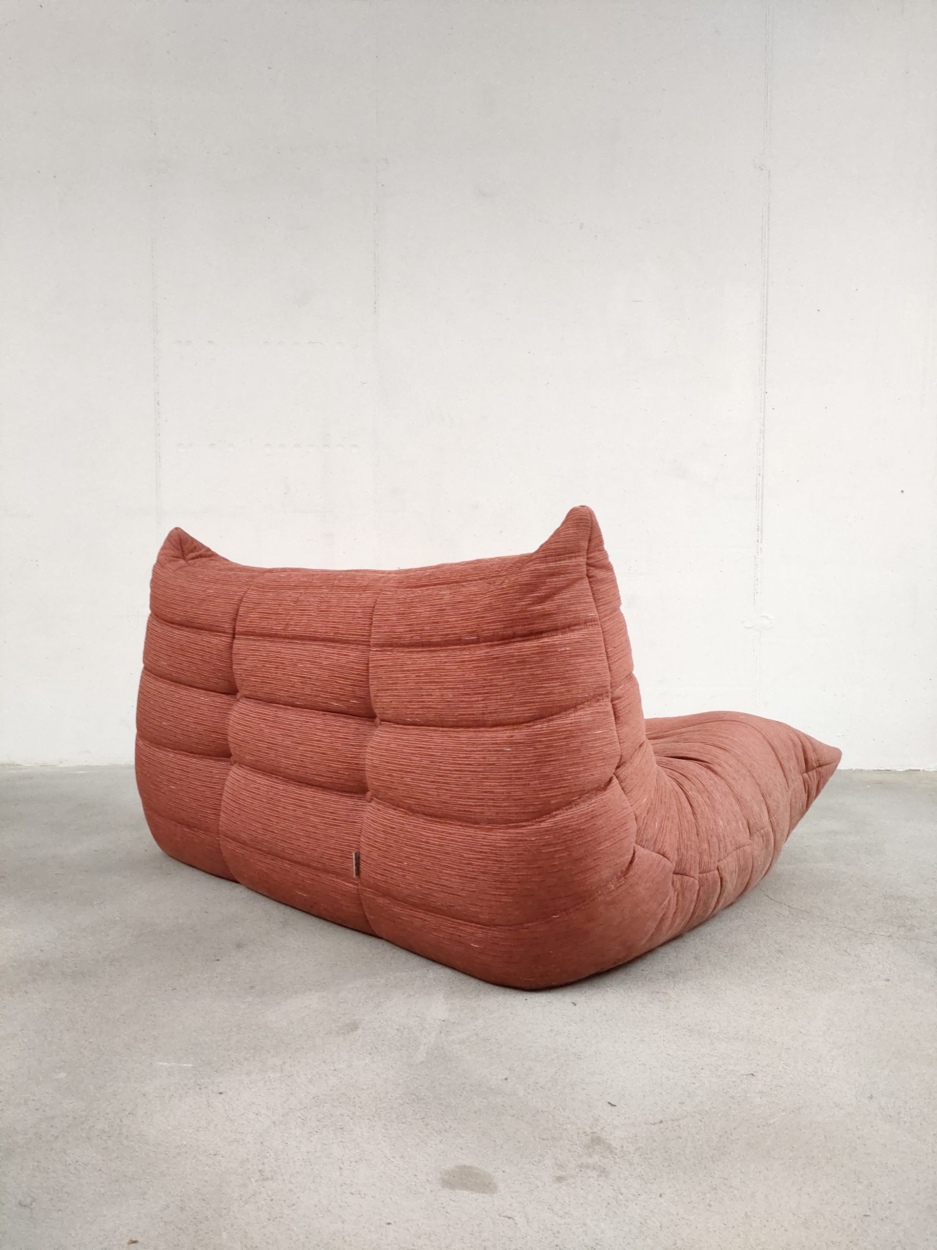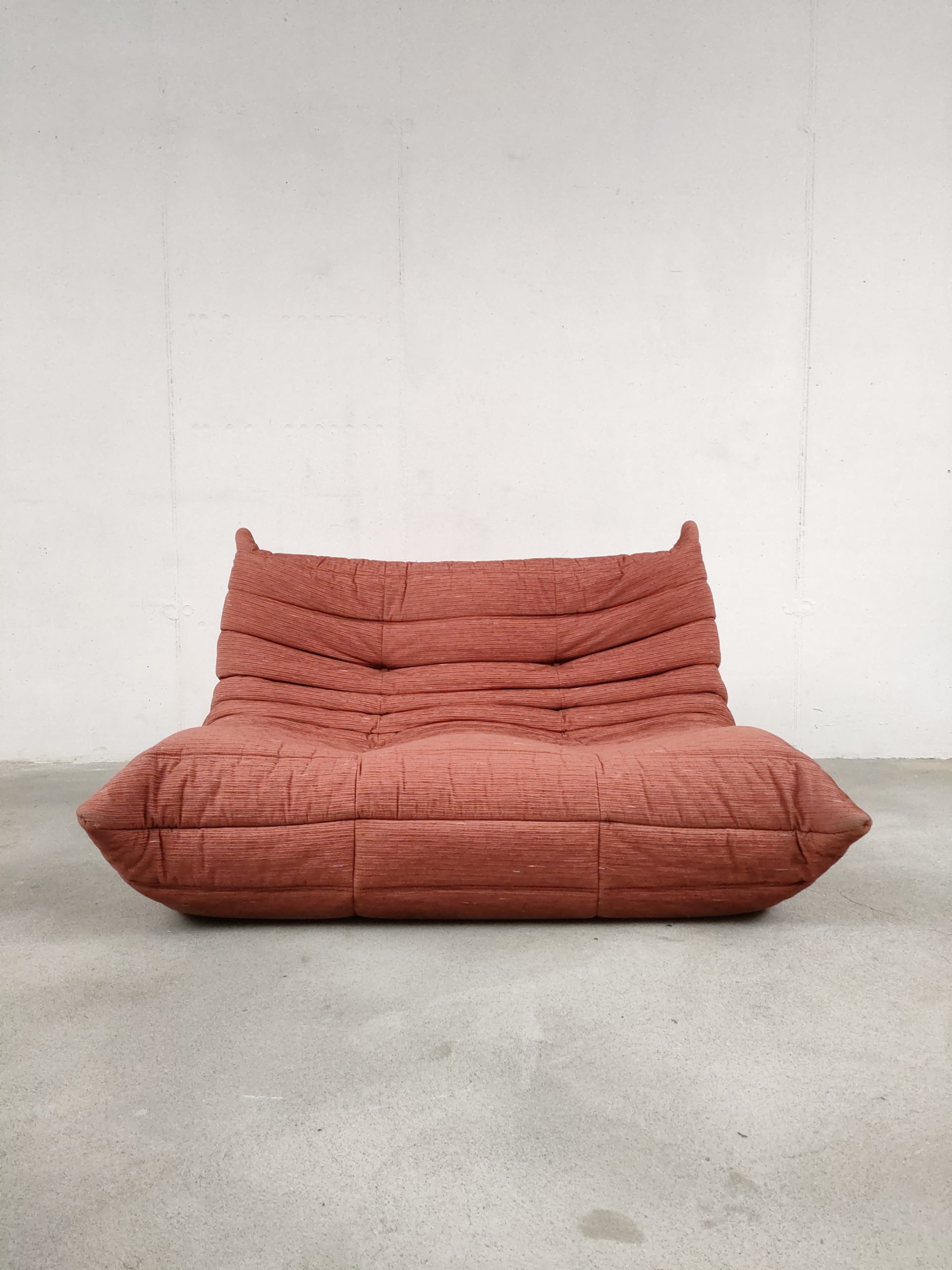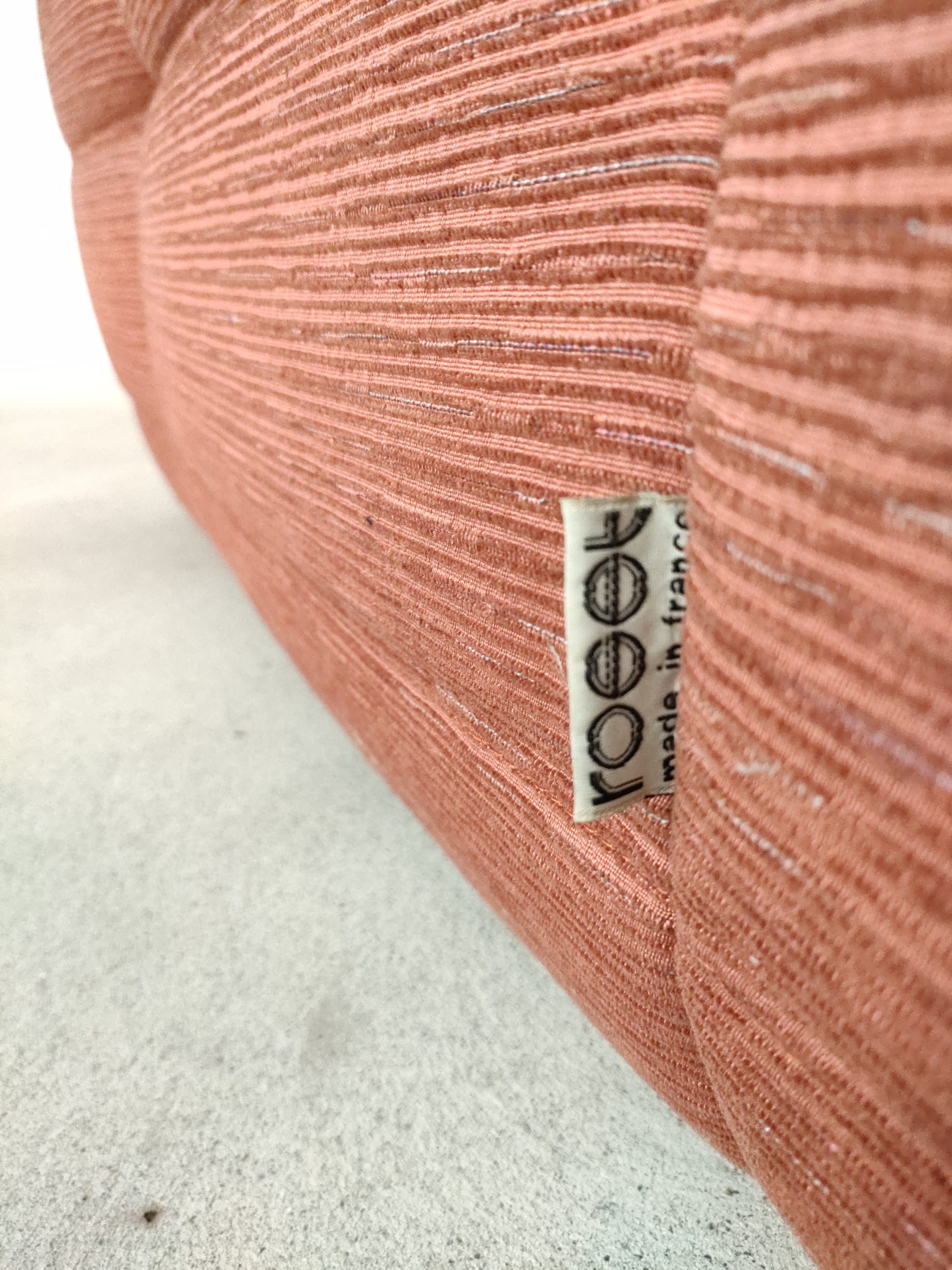Produit venduCanapé 2 places Togo de Michel Ducaroy pour Ligne Roset en tissu de couleur rose. La mousse et le tissu sont en très bon état. Hauteur de l’assise: 32 cm.