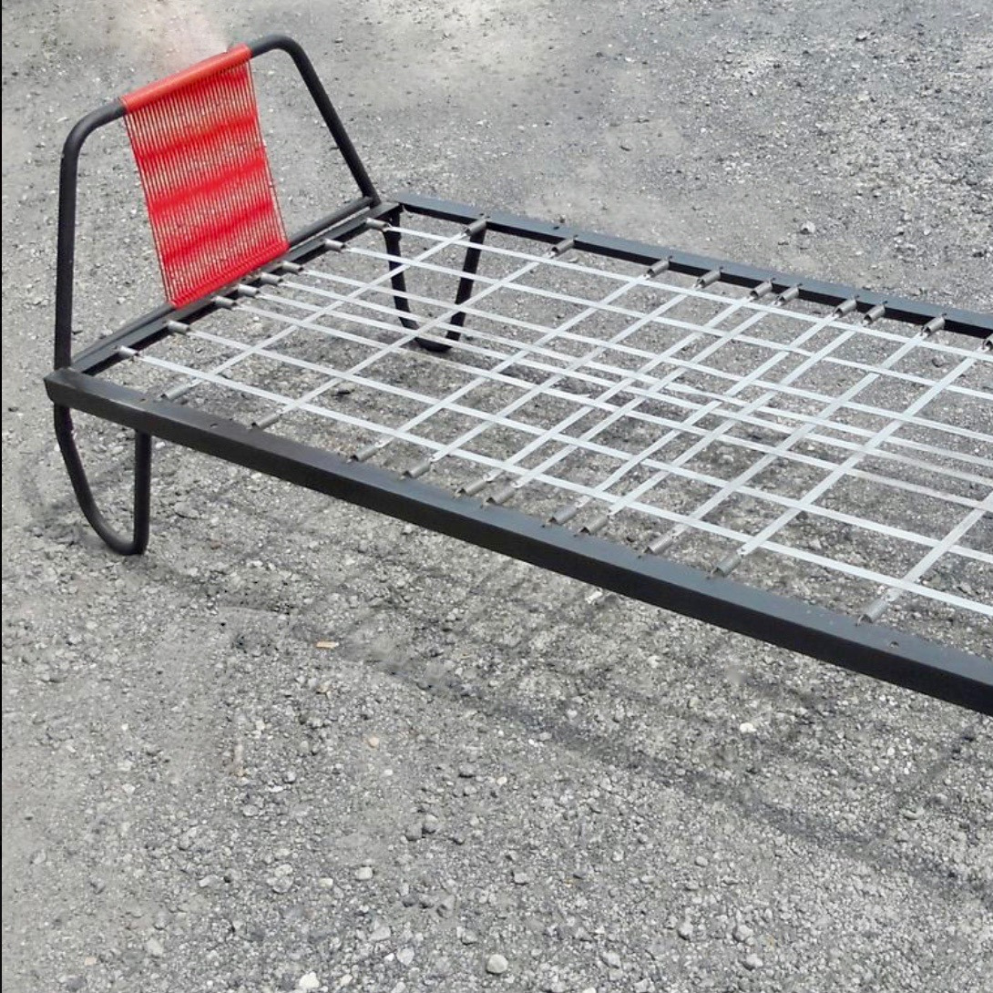 Daybed en acier attribué à Jacques Hitier édité par Mobilor en 1950. Utilisé comme lit ou comme daybed (lit de jour) de par sa forme étroite et allongée.