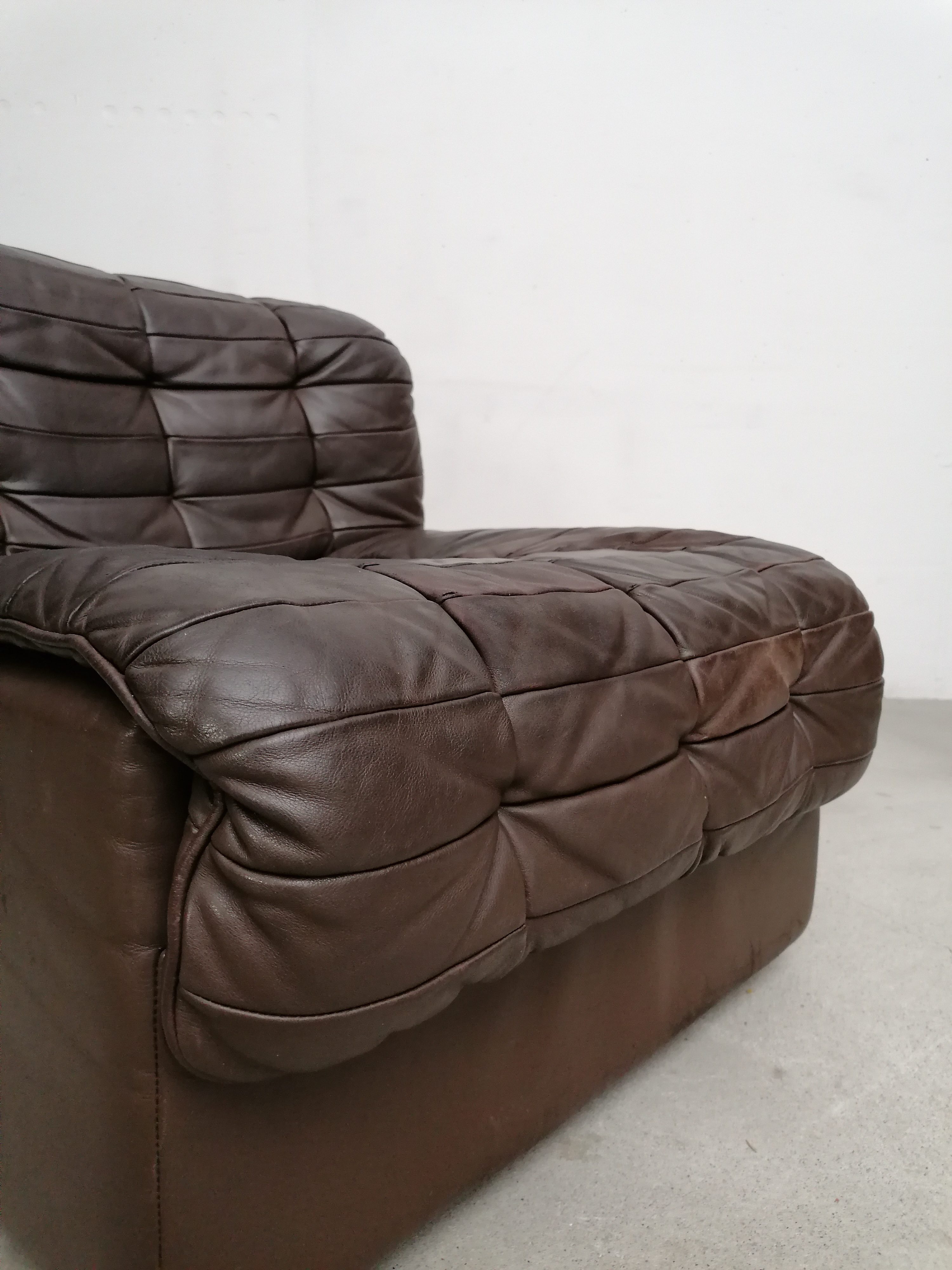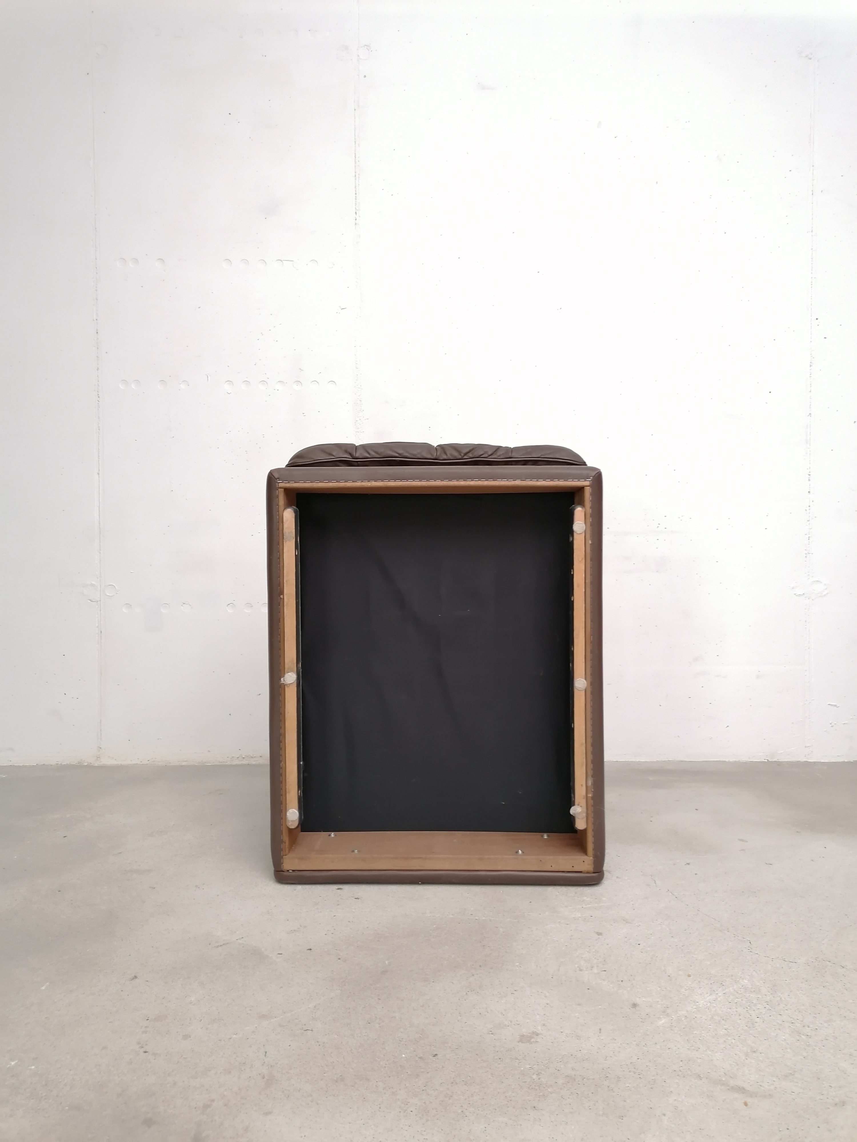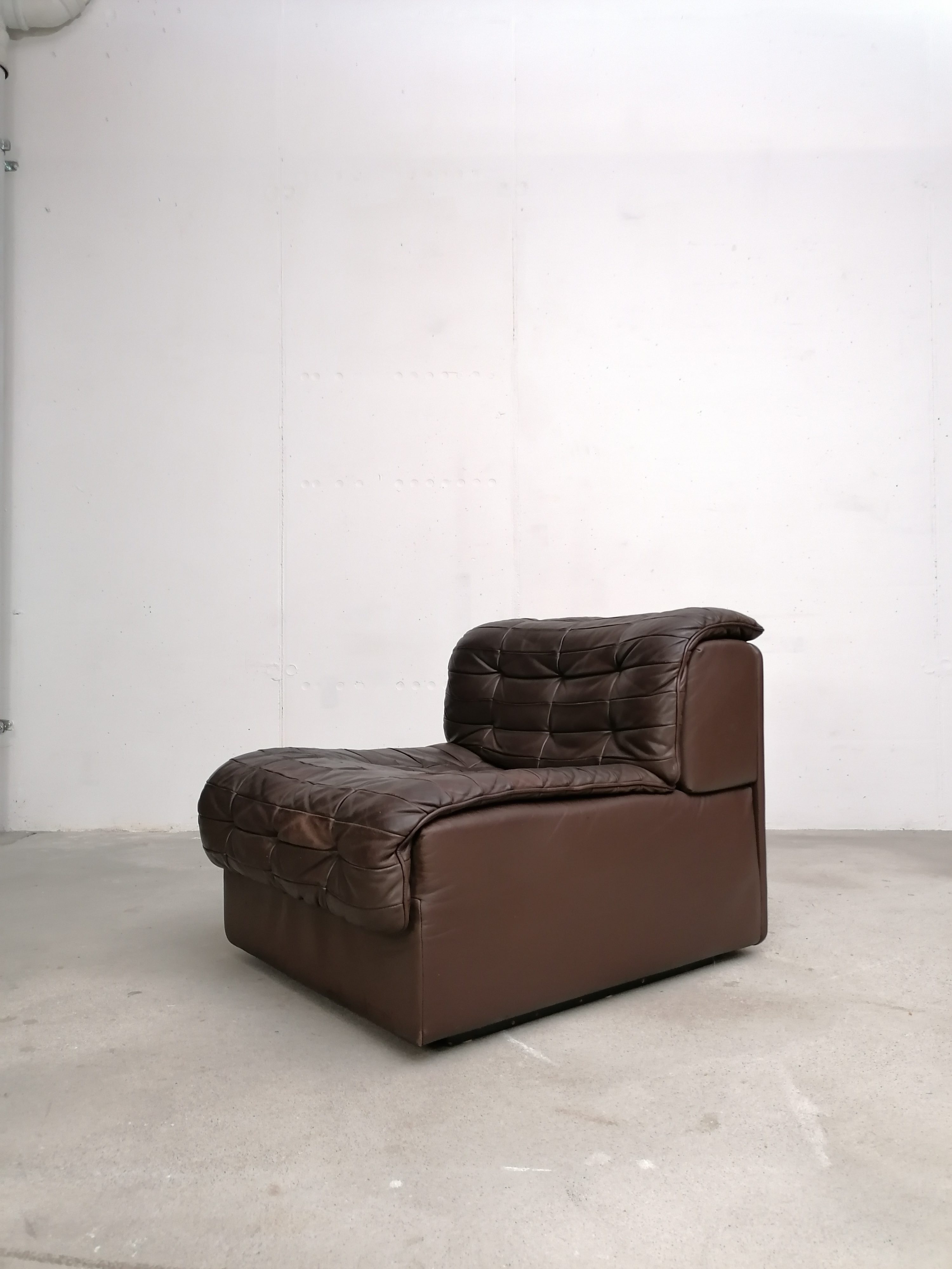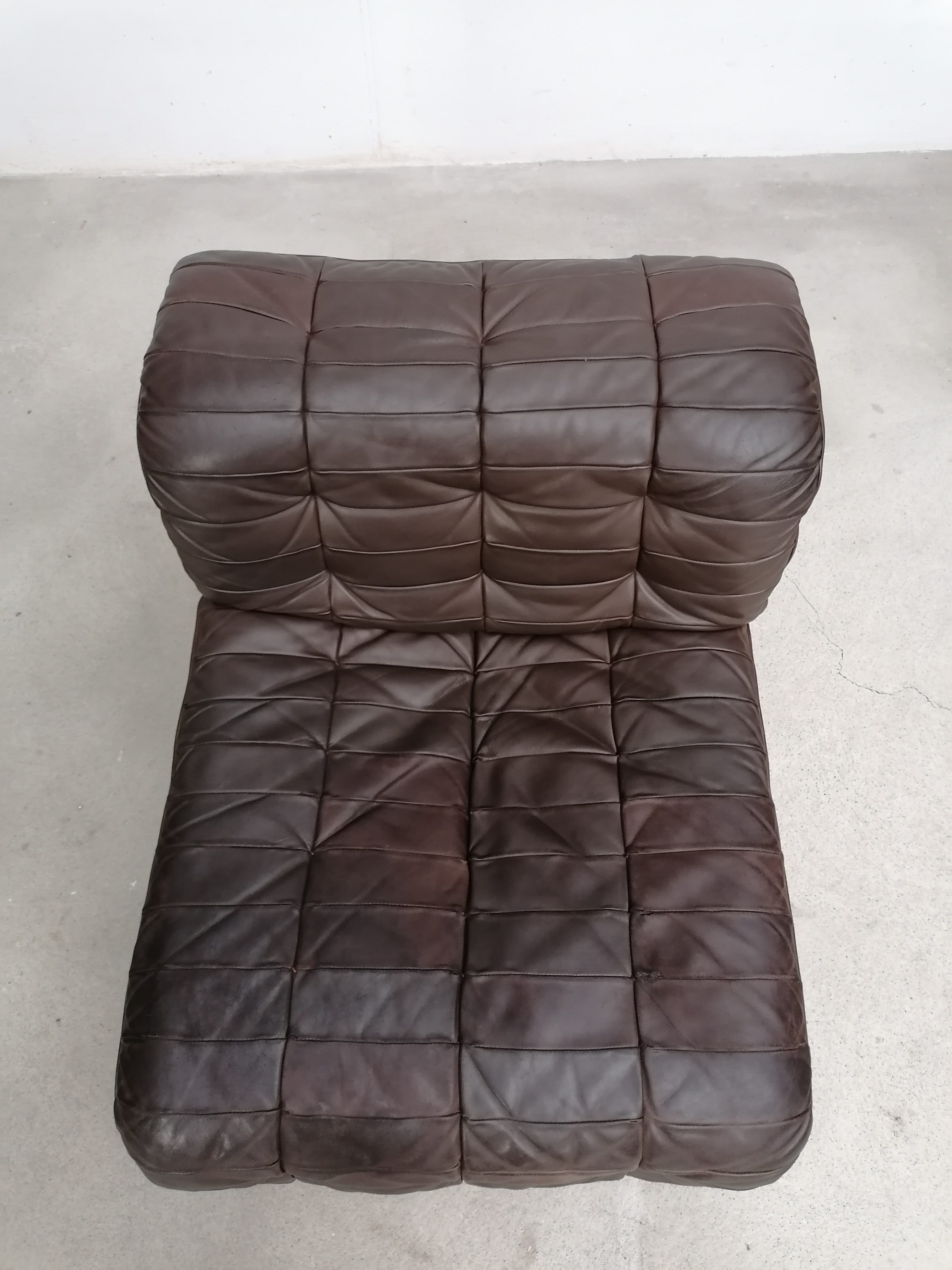 Produit venduFauteuil vintage De Sede, modèle DS11 en cuir marron. Quelques traces d’usure et des très petites déchirures visibles sur les photos. Le cuir a une très belle patine vintage, l’assise toujours confortable. Hauteur de l’assise: 36 cm.